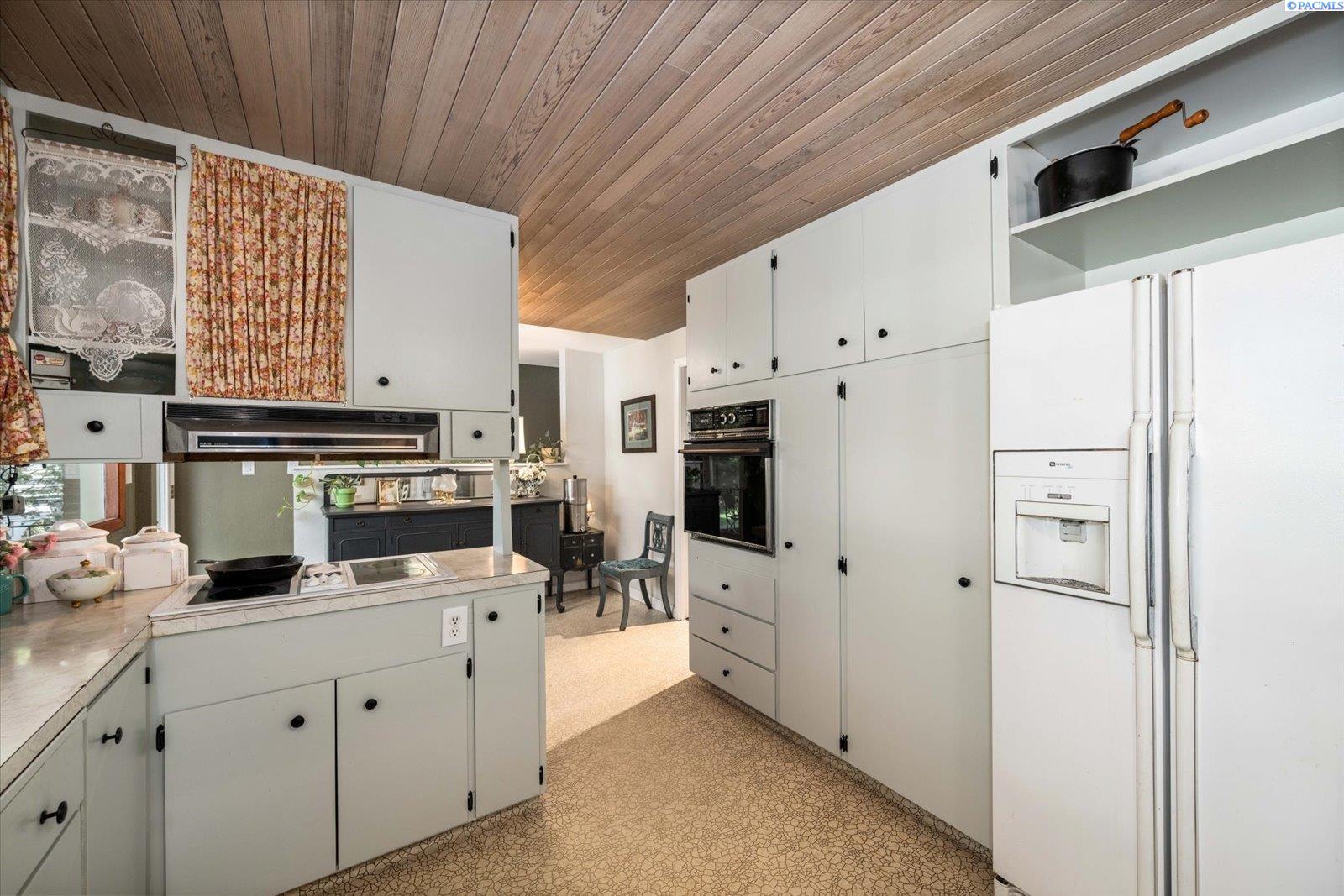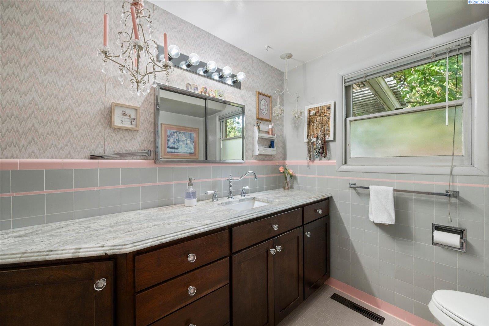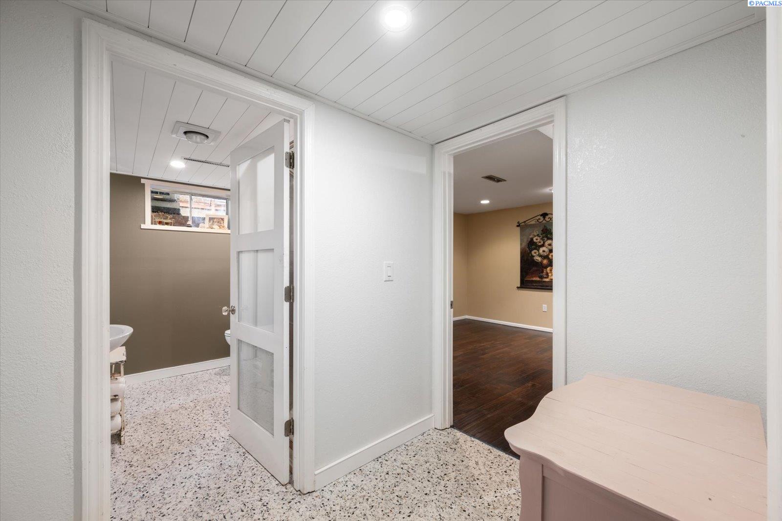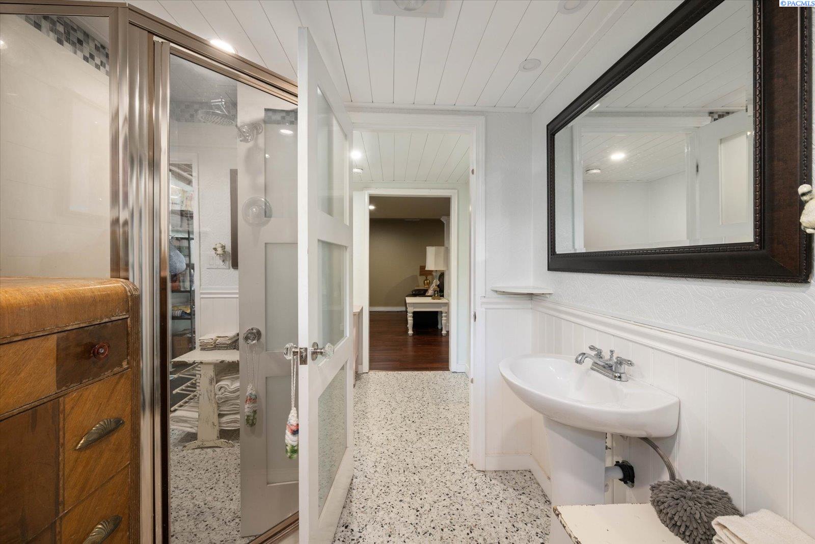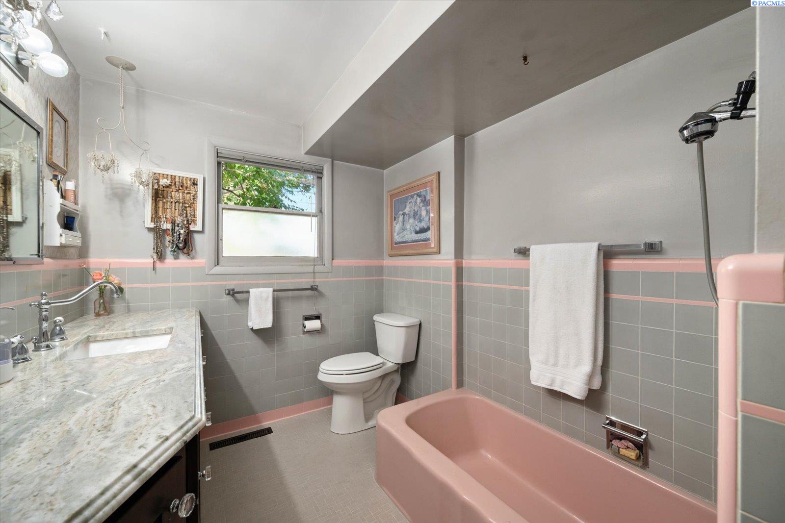 MLS# 288099 Lovingly maintained, this charming mid-century gem seamlessly blends nostalgic character with thoughtful modern updates. Step inside to discover the home's signature wood-planked ceilings and beautifully refinished original hardwood floors that set the stage for comfortable living. The heart of this home celebrates its era with preserved original tile work that remains as attractive today as when first installed, while the master suite now features a brand-new custom cultured marble shower.Major systems have been comprehensively updated for peace of mind, including a new gas furnace with central air, updated plumbing throughout, a newer TPO roof, and a complete sewer line replacement from home to street.The outdoor spaces are truly exceptionalâbegin your relaxation in the secluded brick paver courtyard featuring a hot tub, perfect for unwinding after a long day while surrounded by mature landscaping that ensures complete privacy. Beyond the courtyard, the backyard oasis boasts a stunning in-ground pool installed just two years ago, offering the perfect retreat for creating new memories while enjoying serene NE Kennewick views.This isn't just a house with great bones and smart upgradesâit's a home where vintage charm meets modern comfort, ready to welcome its next chapter of love and laughter.