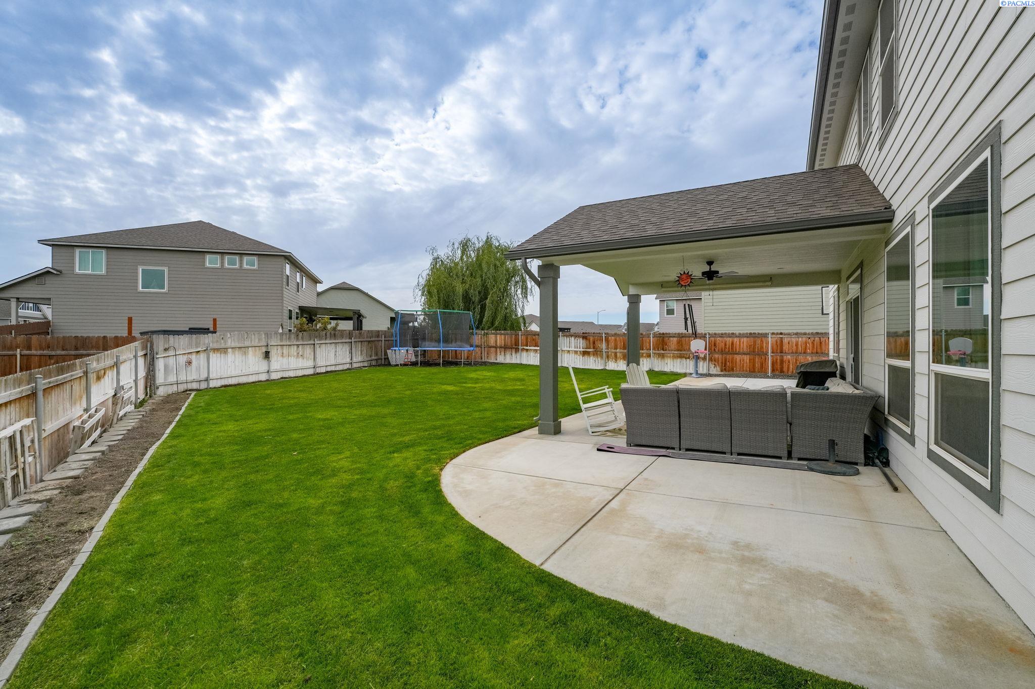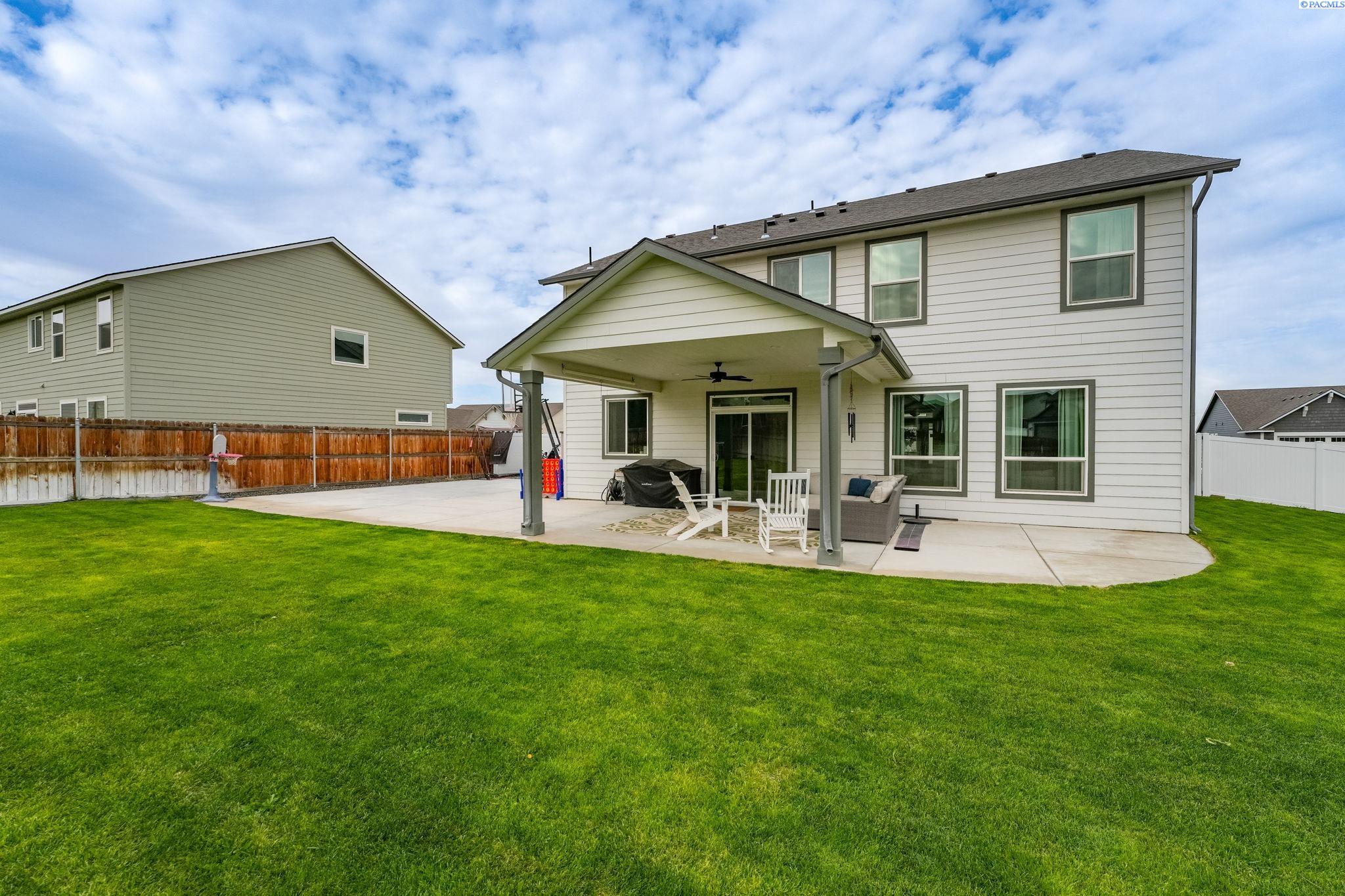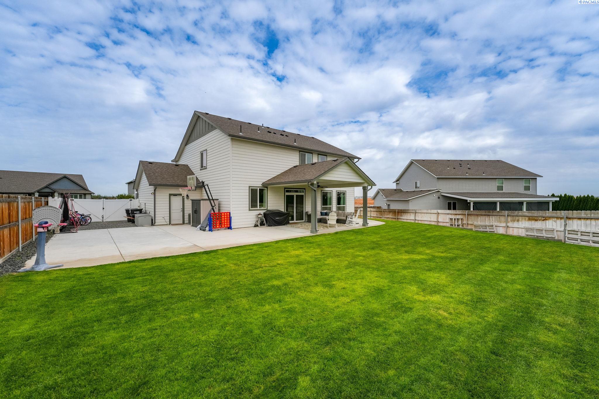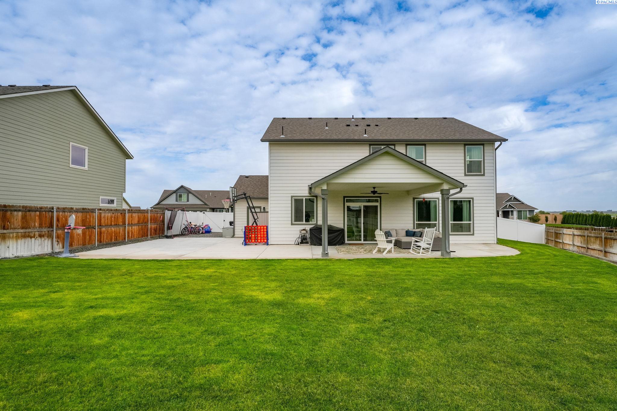 MLS# 288169 MLS# 282305 Welcome to this like-new home in the desirable Madison Park area of West Pasco! Built in 2021, this beautifully maintained home sits on a spacious almost 1/4-acre lot. The inviting front entry features a charming covered porch. Step inside to find a spacious layout that includes a large office and an open-concept family room, kitchen and dining area. The kitchen is a true highlight with an island, a full pantry, full backsplash, and quartz countertops while LVP flooring flows seamlessly throughout the main living areas. Upstairs, you'll find four generously-sized bedrooms, each offering ample closet space and plenty of natural light. A loft area provides extra living space, ideal for a playroom, office, or lounge area. The upper level also includes a conveniently located laundry room and full bathroom. The backyard is truly the gem of this home, featuring a large covered patio and an extensive concrete pad that is perfect for outdoor activities like riding bikes or playing basketball. A double gate provides extra space for parking your toys, making this the ideal home for those who need extra storage or have recreational vehicles.