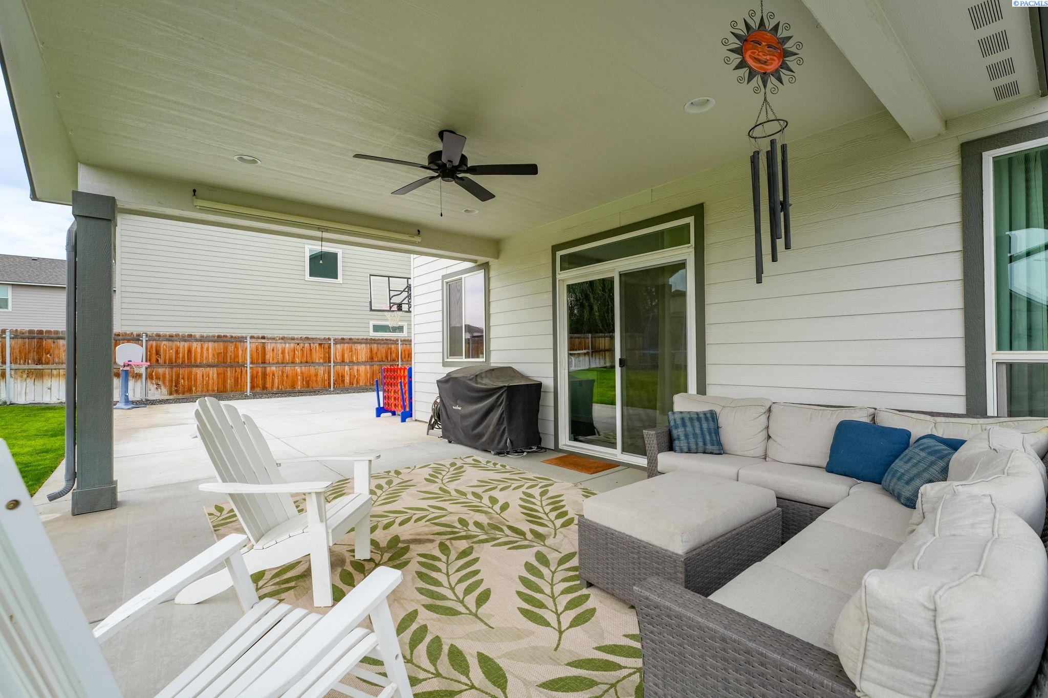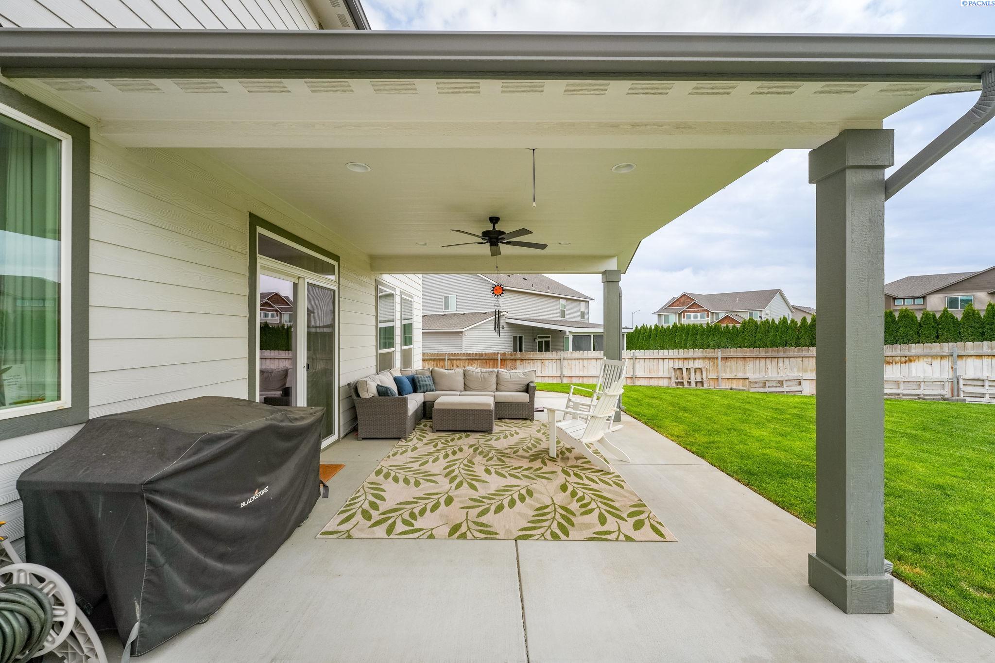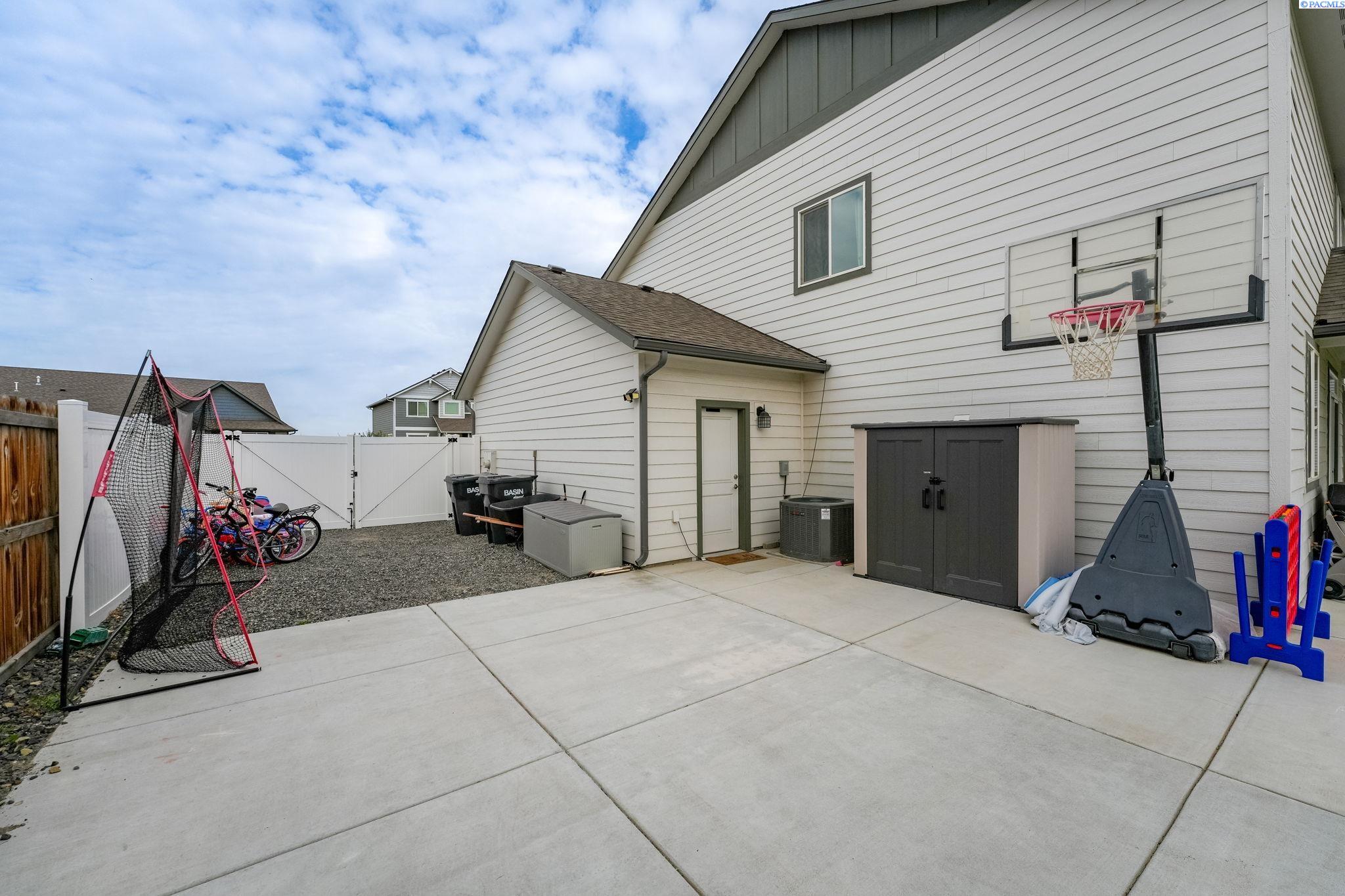 MLS# 288169 MLS# 282305 Welcome to this like-new home in the desirable Madison Park area of West Pasco! Built in 2021, this beautifully maintained home sits on a spacious almost 1/4-acre lot. The inviting front entry features a charming covered porch. Step inside to find a spacious layout that includes a large office and an open-concept family room, kitchen and dining area. The kitchen is a true highlight with an island, a full pantry, full backsplash, and quartz countertops while LVP flooring flows seamlessly throughout the main living areas. Upstairs, you'll find four generously-sized bedrooms, each offering ample closet space and plenty of natural light. A loft area provides extra living space, ideal for a playroom, office, or lounge area. The upper level also includes a conveniently located laundry room and full bathroom. The backyard is truly the gem of this home, featuring a large covered patio and an extensive concrete pad that is perfect for outdoor activities like riding bikes or playing basketball. A double gate provides extra space for parking your toys, making this the ideal home for those who need extra storage or have recreational vehicles.