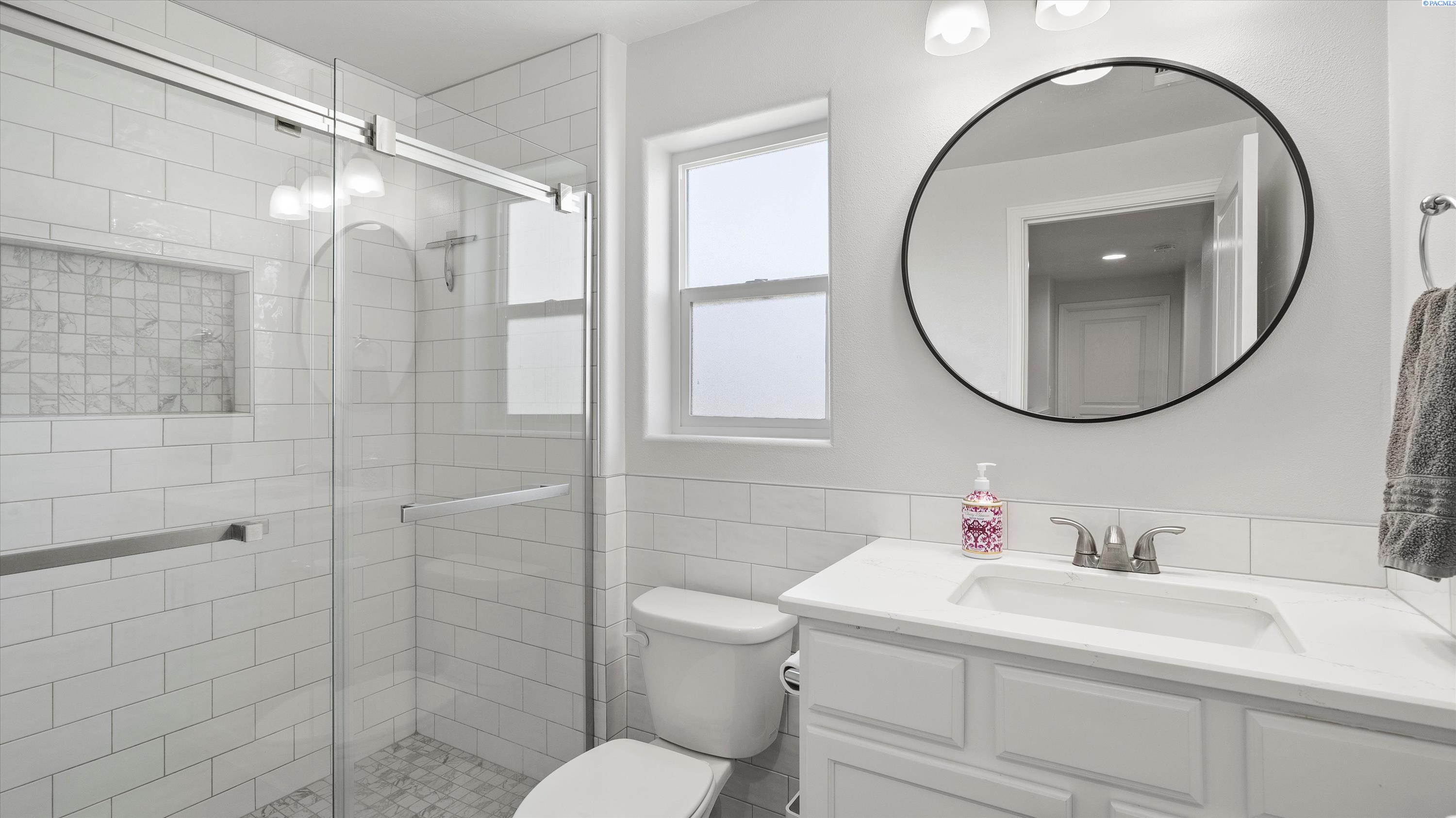 MLS# 288203 Priced to move! Beautifully updated 3-bedroom + Bonus room, 2.5-bath home tucked in a quiet South Kennewick cul-de-sac. Inside, youâll love the brand-new luxury vinyl plank flooring throughout the main level. The kitchen has been tastefully remodeled with white cabinetry, updated quartz countertops, and stainless steel appliances. Upstairs, youâll find all three bedrooms plus a spacious bonus roomâperfect for a second living area, home office, playroom, large bedroom or guest space. The primary suite includes a walk-in closet, an updated en-suite bath with a walk in shower, large tub, and dual vanities. All bathrooms have been updated with clean, modern finishes. Out back, enjoy the privacy of no backyard neighborsâthis home backs up to Chinook middle school field, offering peace and open views. The fully fenced yard has a shed and plenty of space for a swing set, trampoline and more. To make things even easier for the next owner, this home has already been pre-inspected, helping streamline the purchase process and give buyers added peace of mind. Conveniently located near schools, shopping, and diningâthis home checks all the boxes! The home is wired for interior and exterior cameras.