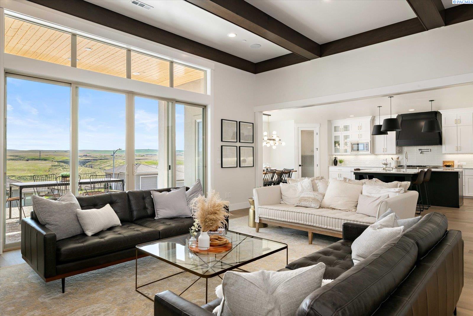 MLS# 288215 285291 Parade of Homes Rambler by JK Monarch | 4 Bed | 2.5 Bath | Office Alcove | RV Parking | .53 Acres | Stunning Views Step into luxury with this exquisite rambler by JK Monarch Homes, a former Parade of Homes showcase now available and ready to impress. Perfectly situated on a spacious .53-acre lot, this home offers unmatched views and room to relax or entertain! From the moment you enter, you're greeted by a soaring open floor plan with dramatic wood beam ceiling, a floor-to-ceiling tiled fireplace, and custom built-ins that add both charm and functionality. The heart of the home is the chef-inspired kitchen, featuring a massive island, abundant storage and elegant finished ideal for entertaining or everyday living. The primary suite is a true retreat, with panoramic views, directs access to a covered patio, and a spa-like ensuite complete with a luxurious soaker tub and premium finished. With 4 spacious bedrooms, 2.5 designer bathrooms, and a versatile office alcove with build-ins, this home balances comfort and elegance. The oversized 2-car garage plus Boat/RV bay ensures you have space for all your toys and hobbies. Built with JK Monarch's signature craftsmanship, attention to detail, and forward-thinking design, this home is the definition of modern luxury.