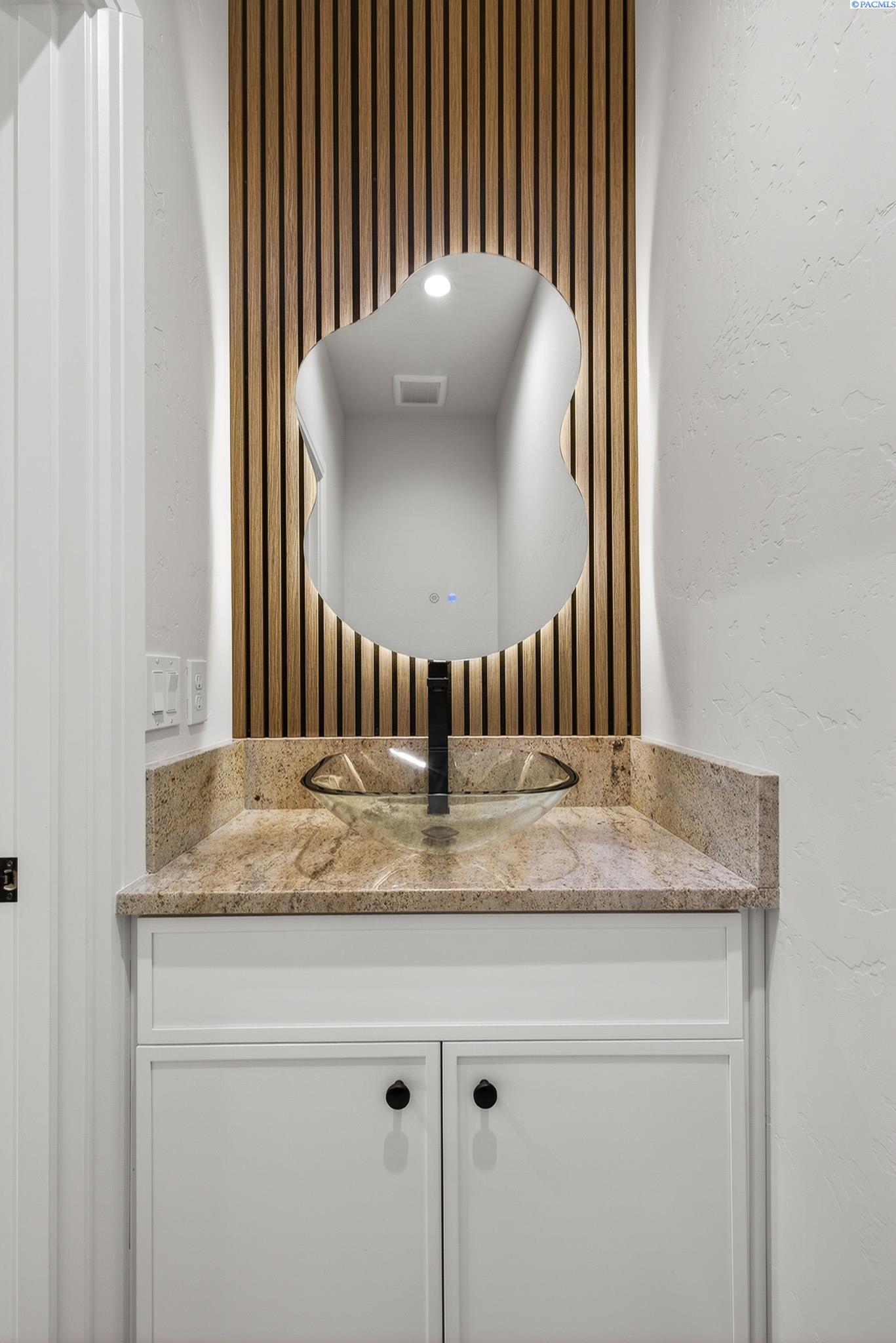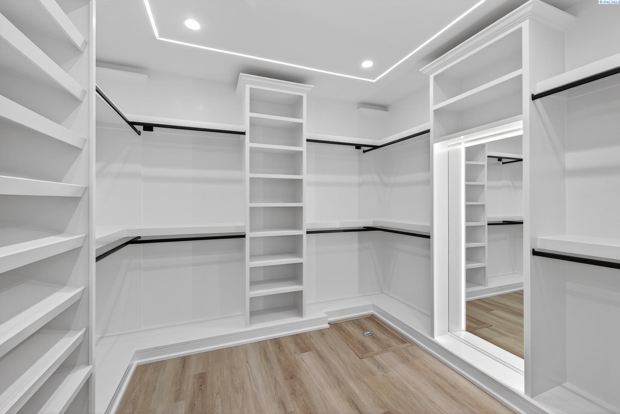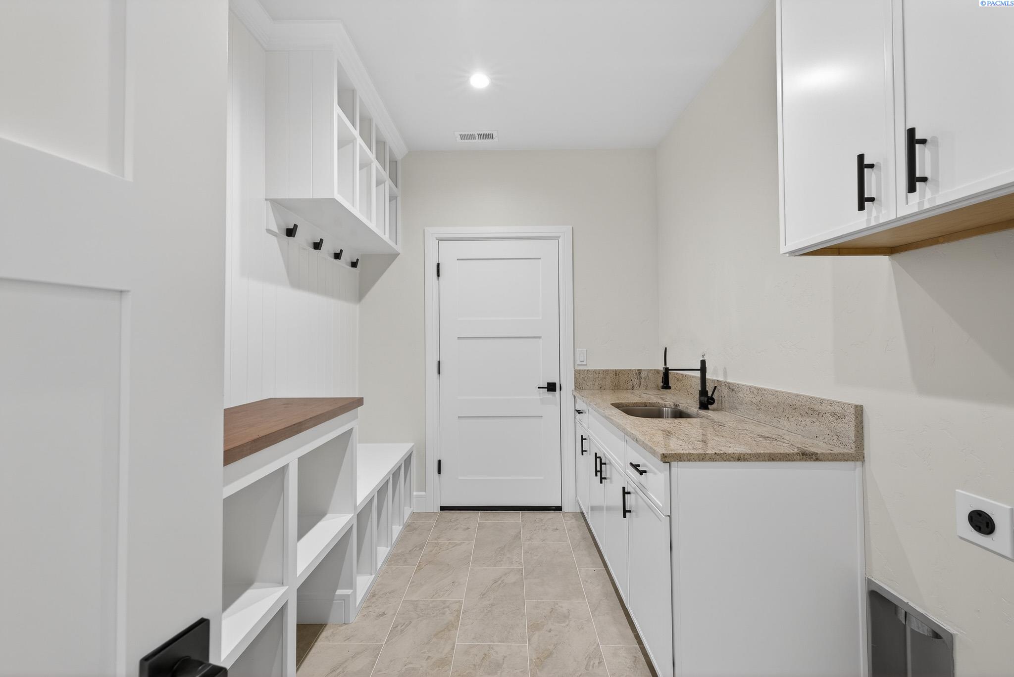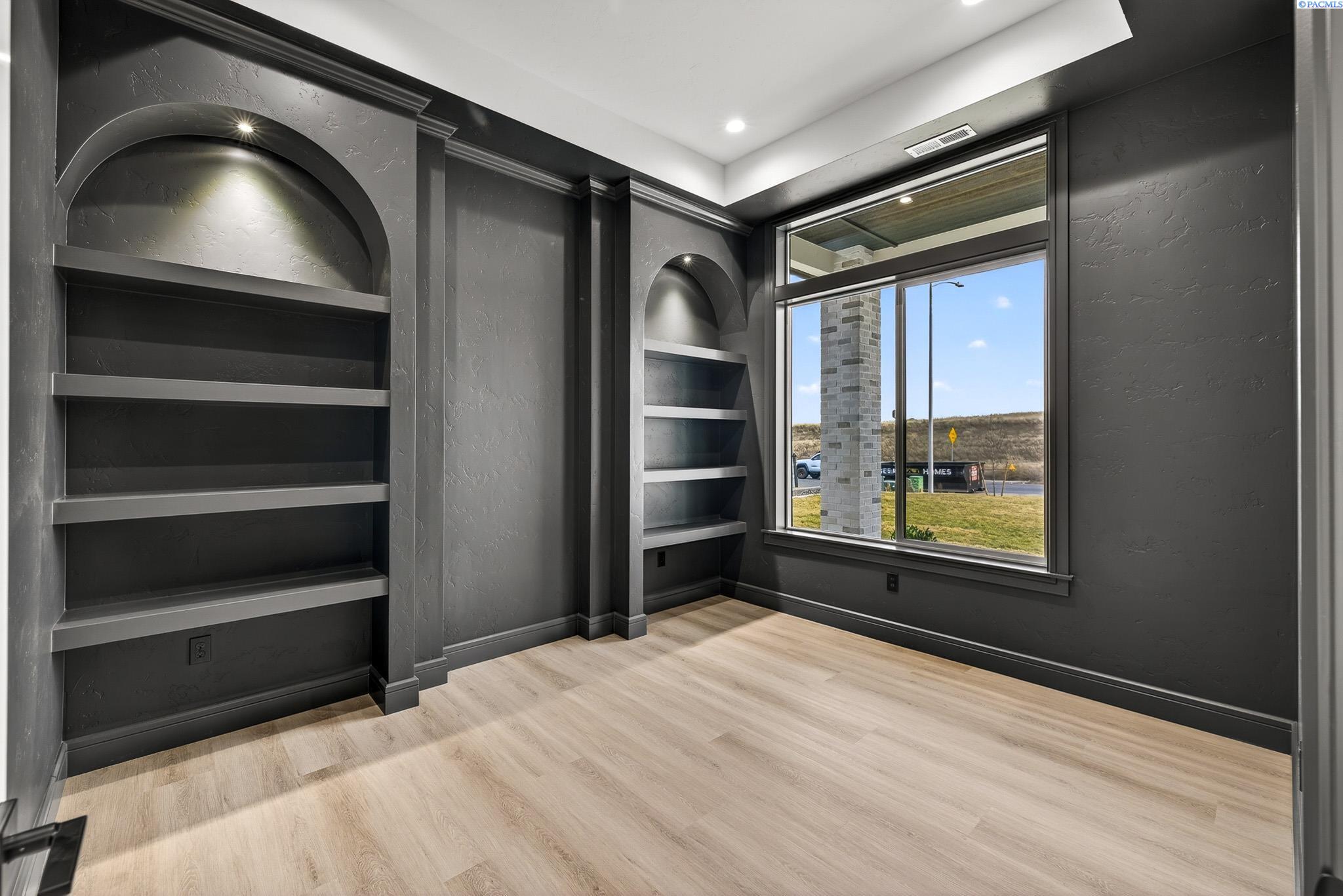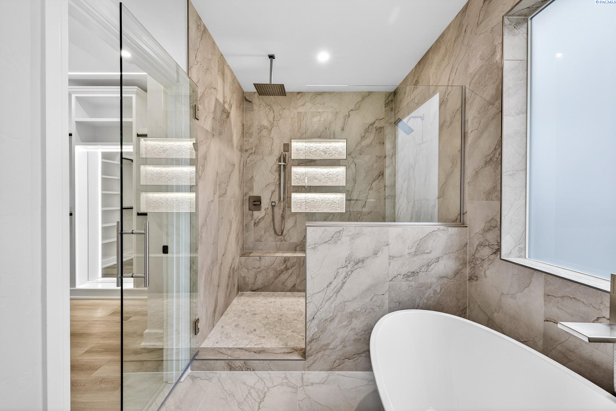 MLS# 288216 This single-story home in the South Orchard community of Richland blends modern architecture, intentional design, and high-end craftsmanship. Set on over a third of an acre, it offers three bedrooms, 3 bathrooms, a dedicated office, a spacious recreation room, and a three-car garage. Step into the foyer and youâre welcomed by eleven-foot ceilings that carry throughout the home. Oversized windows flood the space with natural light, while coffered ceilings with LED lighting in the living room and primary bedroom add a modern, elevated touch. A cozy fireplace anchors the great room, and a large sliding glass door opens to the covered back patio. The chef-inspired kitchen features a striking fourteen-foot waterfall island, a large double-sided sink, stainless steel appliances, a double oven, under-cabinet lighting, and a walk-in pantry. A built-in arched beverage center with display shelving, cabinetry, and accent lighting adds a custom touch. The primary suite includes a walk-in closet designed to impress, featuring built-in shelving on every wall, integrated LED lighting, and a built-in mirror. The spa-like en-suite offers a beautifully tiled walk-in shower with a full-length bench and recessed shelves, a soaking tub, double sinks, and a linen closet. The two additional bedrooms each include their own walk-in closet. The laundry room is thoughtfully designed with a built-in bench and folding table. Step out to the covered back patio, complete with a ceiling fan and built-in lighting, and take in the fully landscaped backyard surrounded by a block wall. Built for entertaining, the outdoor space includes a custom outdoor kitchen with a fridge, sink, and gas grill. Every detail has been thoughtfully selected to blend quality, comfort, and beauty, creating a home that feels both luxurious and welcoming.