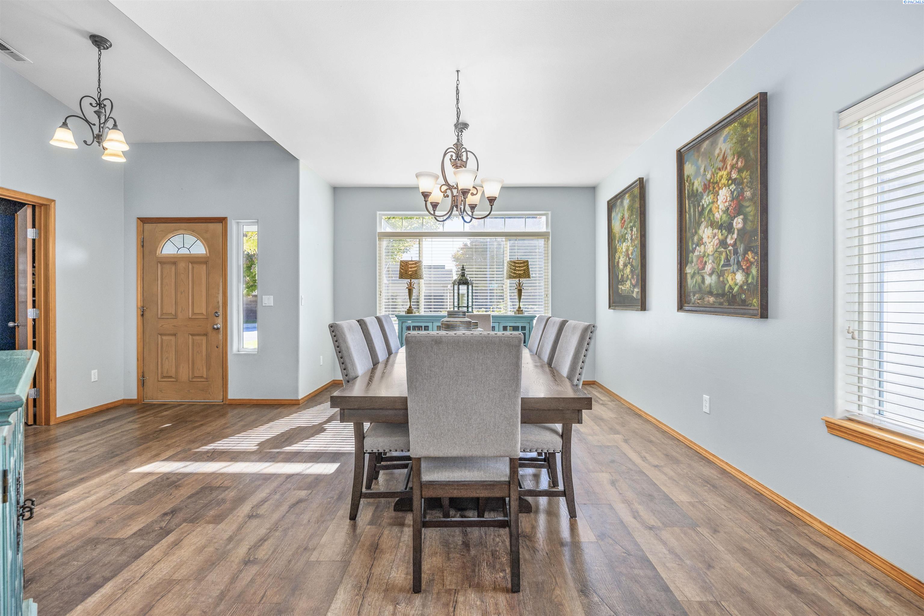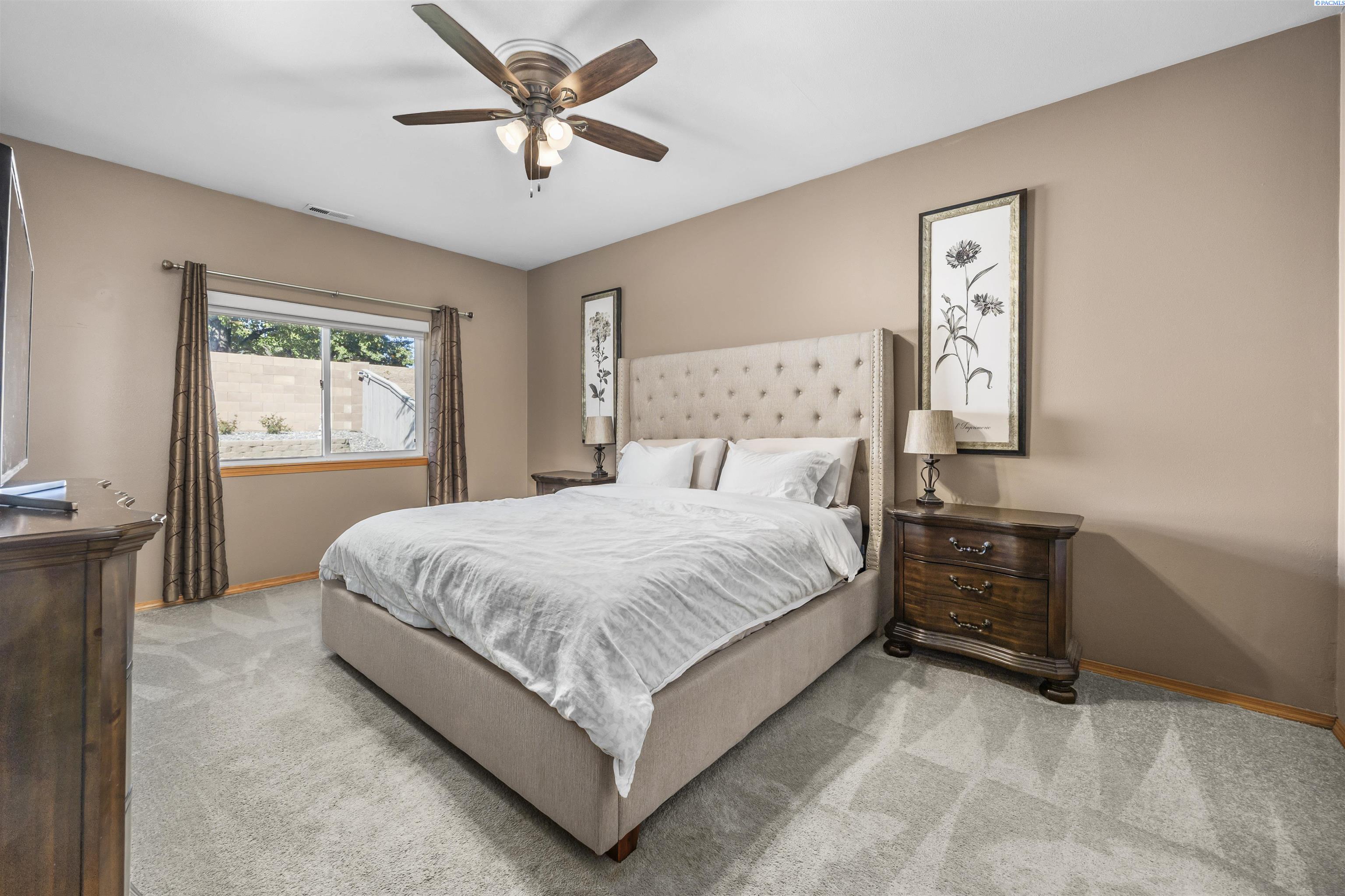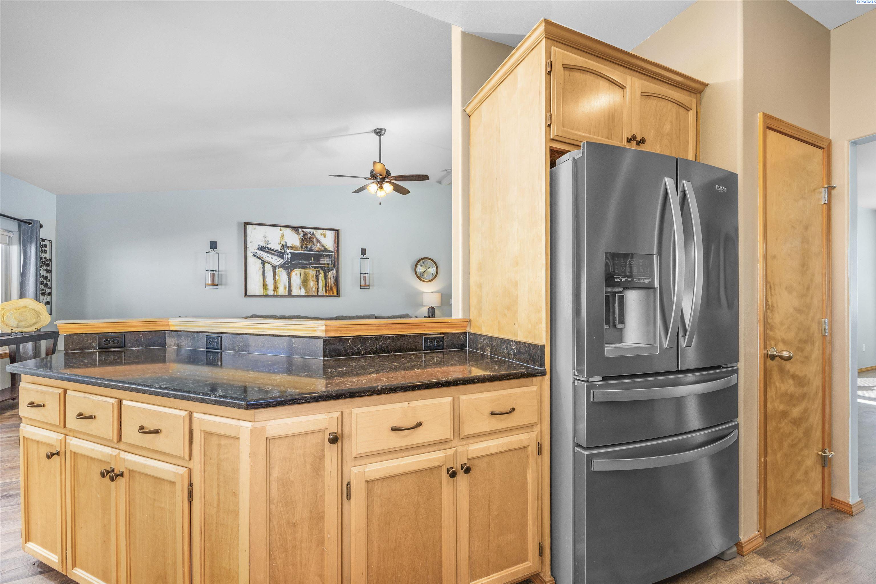 MLS# 288262 Your Next Chapter Begins in Creekstone, West Kennewick! This beautiful single-story home is nestled in the highly sought-after Creekstone community, offering 2,121 sq. ft. of well-designed living space all on one level. With 4 bedrooms and 2 bathrooms, this home combines comfort, style, and functionality. Step inside to discover an open-concept layout featuring vaulted ceilings, a cozy gas fireplace, and large windows that fill the home with natural light. Beautiful laminate wood flooring flows through the main living areas, creating a warm and inviting atmosphere. The kitchen boasts quartz countertops, abundant cabinet and counter space, and a welcoming dining areaâperfect for everyday meals and entertaining alike. Retreat to the spacious primary suite, complete with a generous closet and a private bath featuring a dual-sink vanity, soaking tub, and separate shower. Enjoy outdoor living in the fully fenced backyard with a covered patio, ideal for relaxing or hosting gatherings. The attached 3-car garage offers plenty of room for vehicles, storage, and hobbies. Residents of Creekstone appreciate a vibrant lifestyle with beautifully maintained walking paths, multiple parks, gated RV storage area, nearby schools, and convenient access to shopping, dining, and entertainment. This home truly offers the perfect blend of comfort, elegance, and locationâ Come experience the charm and convenience that make Creekstone the perfect place to call home!