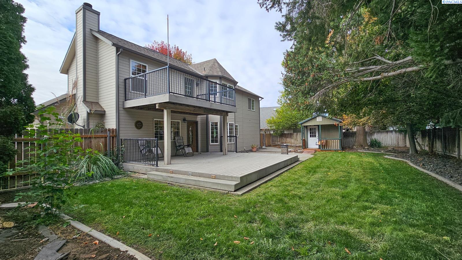 MLS# 288273 Welcome to 9014 W Grand Ronde Aveâproof that you really can have space, style, and location all in one! Tucked into one of Kennewickâs favorite established neighborhoods, this 4 BR 3 BA home hits that sweet spot between peaceful and perfectly convenient. Costco runs, mall errands, dinner out with friends. All just around the corner. Inside, the layout flows like it was made for easy living. Two living areas mean plenty of room for movie nights, homework, or hosting a crowd. A cozy wood-burning fireplace (with blower) brings the charm, while the grand staircase adds just enough drama to make a great first impression (and a great holiday photo backdrop). The kitchen is right in the middle of it all, featuring stainless steel appliances, tile back splash, a dining bar for quick breakfasts, and a large built-in pantry cabinet with pull-out shelves. Youâll also find a formal dining room that can go fancy or casual depending on the nightâfamily dinners, game nights, or both. Upstairs, the roomy landing makes a perfect office, reading corner, or hangout space. When itâs time to unwind, double French doors lead to the spacious primary suite, complete with a private Trex deck balcony for your morning coffee and a jetted tub for added relaxation. All bedrooms are generously sized, and the home is loaded with storage. Even the garage gets in on the funâfinished, oversized, and ready for projects, toys, or keeping things neatly tucked away thanks to the large overhead loft. Out back, the good vibes continue with a covered Trex deck, open patio, hot tub hookup, and a Tuff shed (complete with power)âperfect for a workshop, studio, or your next creative escape. A full sprinkler system keeps the yard green and easy, so weekends can stay fun, not full of chores. Big on warmth, full of personality, and perfectly placedâthis home is that hard-to-find mix of comfort and convenience with a little extra spark. Schedule your private showing today!
