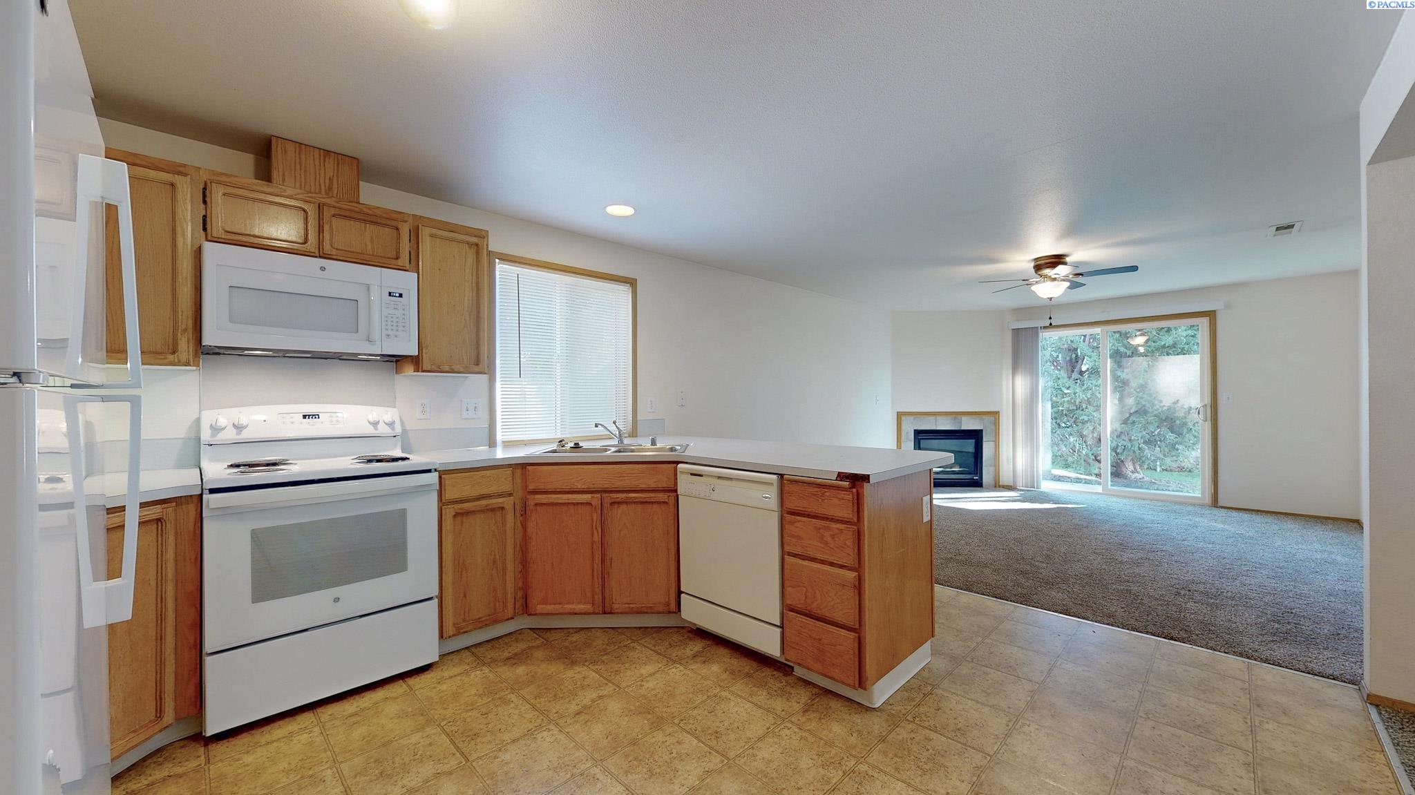 Welcome to this charming 3 BD 2 BA rambler in West Pascoâs desirable Sunny Meadows neighborhood. The front entry opens to a comfortable formal living and dining areaâideal for hosting guests or enjoying quiet evenings at home. Wood-wrapped windows add character and warmth throughout the space. The open family room features a corner gas fireplace with a stylish tile surround and sliding door access to the back patio, creating a seamless indoor-outdoor connection. The kitchen is bright and functional, complete with a breakfast bar, abundant cabinetry, generous counter space, and a window over the sink that fills the room with natural light. The primary suite includes a private ensuite bath, while multiple hall and linen closets offer thoughtful storage options. Outside, the fully fenced backyard with mature landscaping provides a private and relaxing setting. An attached, finished two-car garage adds convenience and additional storage. Move-in ready, this home blends comfort, style, and practicalityâperfect for everyday living.