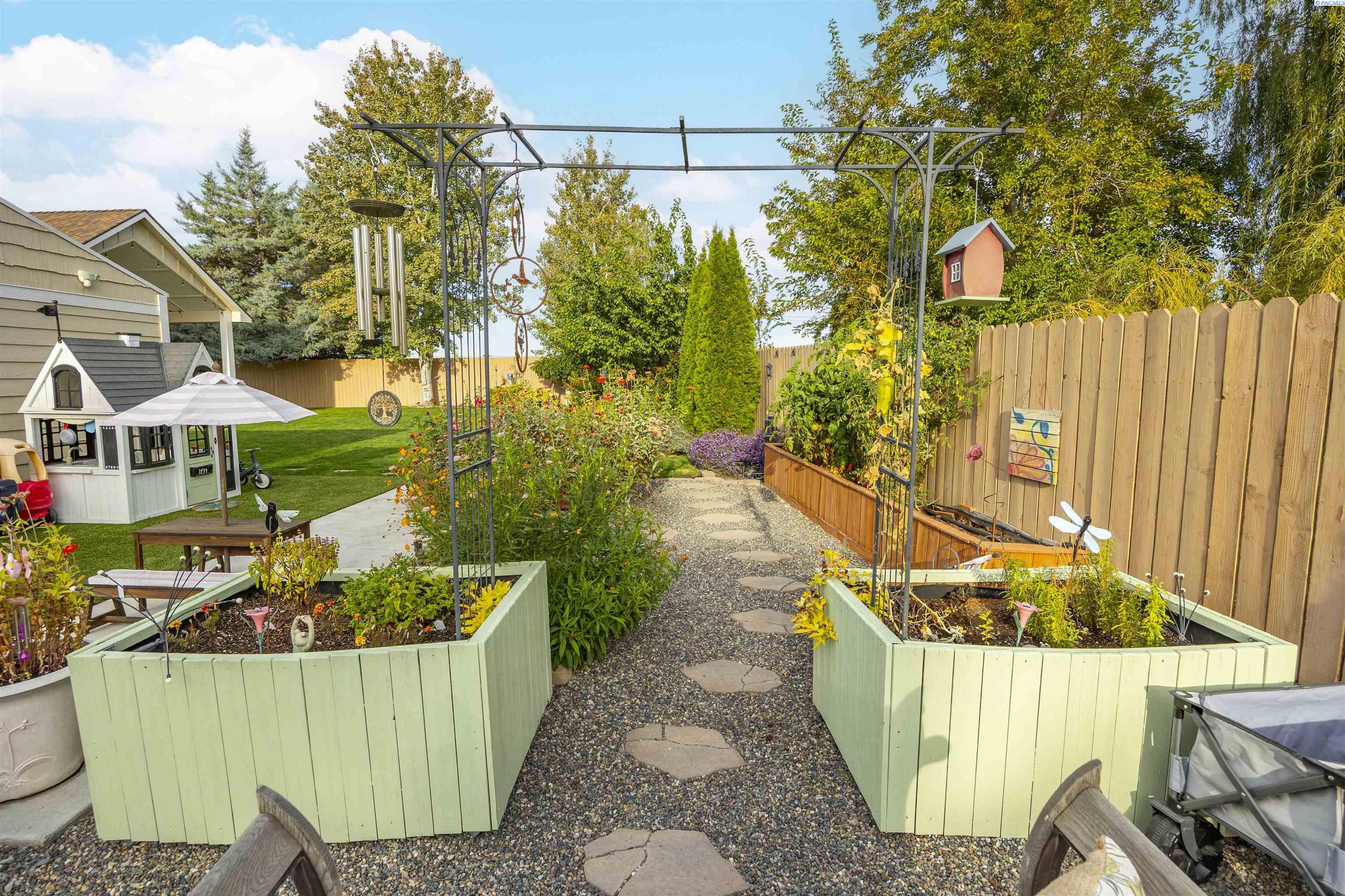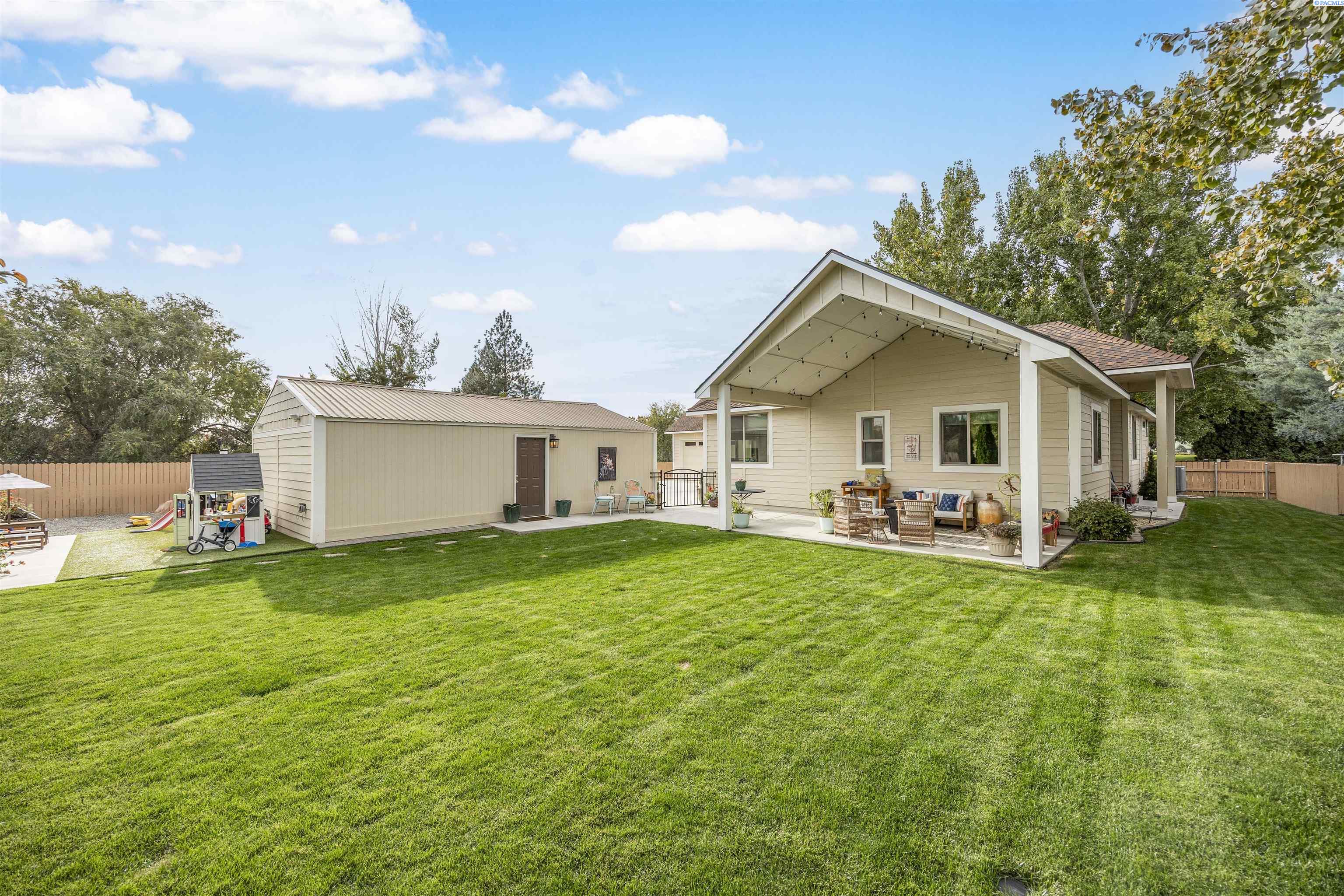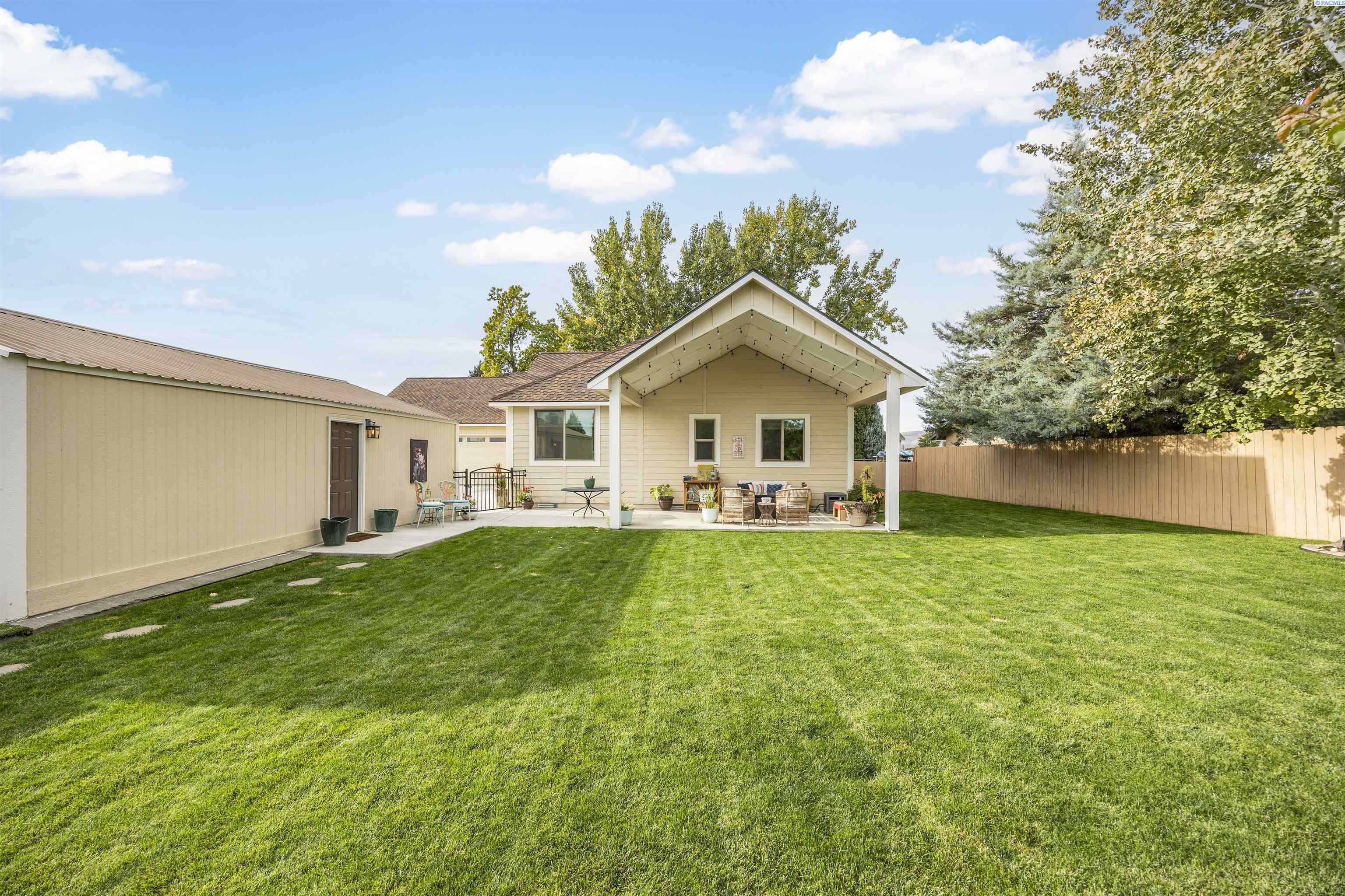 MLS# 288298 Better than new! Built in 2018 and beautifully upgraded inside and out, this 3-bedroom, 2.5-bathroom home offers just under 2,000 sq ft of comfortable living space with an exceptional shop and outdoor setup. The property includes an oversized finished 3-car garage plus a 24x40 stick-built shop, fully insulated, drywalled, powered with electrical service, and perfect for hobbies, storage, or a home business. Step outside to enjoy the fresh new exterior paint, fully painted fencing, ample parking for RVs/toys/trailers, and a permitted vaulted covered patio professionally built by a licensed contractor, ideal for year-round outdoor living. The property also features a garden area with raised beds and drip irrigation. Originally equipped with mini-splits, the owners recently upgraded to a brand-new central heating and air system installed by Jacob & Rhodes. Inside, youâll love the inviting open layout with custom upgrades throughout. The remodeled kitchen offers extended oak cabinetry, new interior paint, a granite composite farmhouse sink, full tile backsplash, and stainless-steel appliances. The living room showcases a custom tile fireplace with built-in cabinetry for added character and storage. All guest bathrooms have been fully updated with new vanities, countertops, flooring, and stylish tile shower walls. The primary suite is spacious with a coffered ceiling and fresh paint. The ensuite bath features dual sinks, a spacious tiled shower, bidet toilet, and a large custom sized closet. The laundry room is oversized and includes built-in cabinetry for organization. This turn-key property truly has it all, modern finishes, shop space, upgraded mechanicals, and outdoor lifestyle perks you wonât find in new construction.