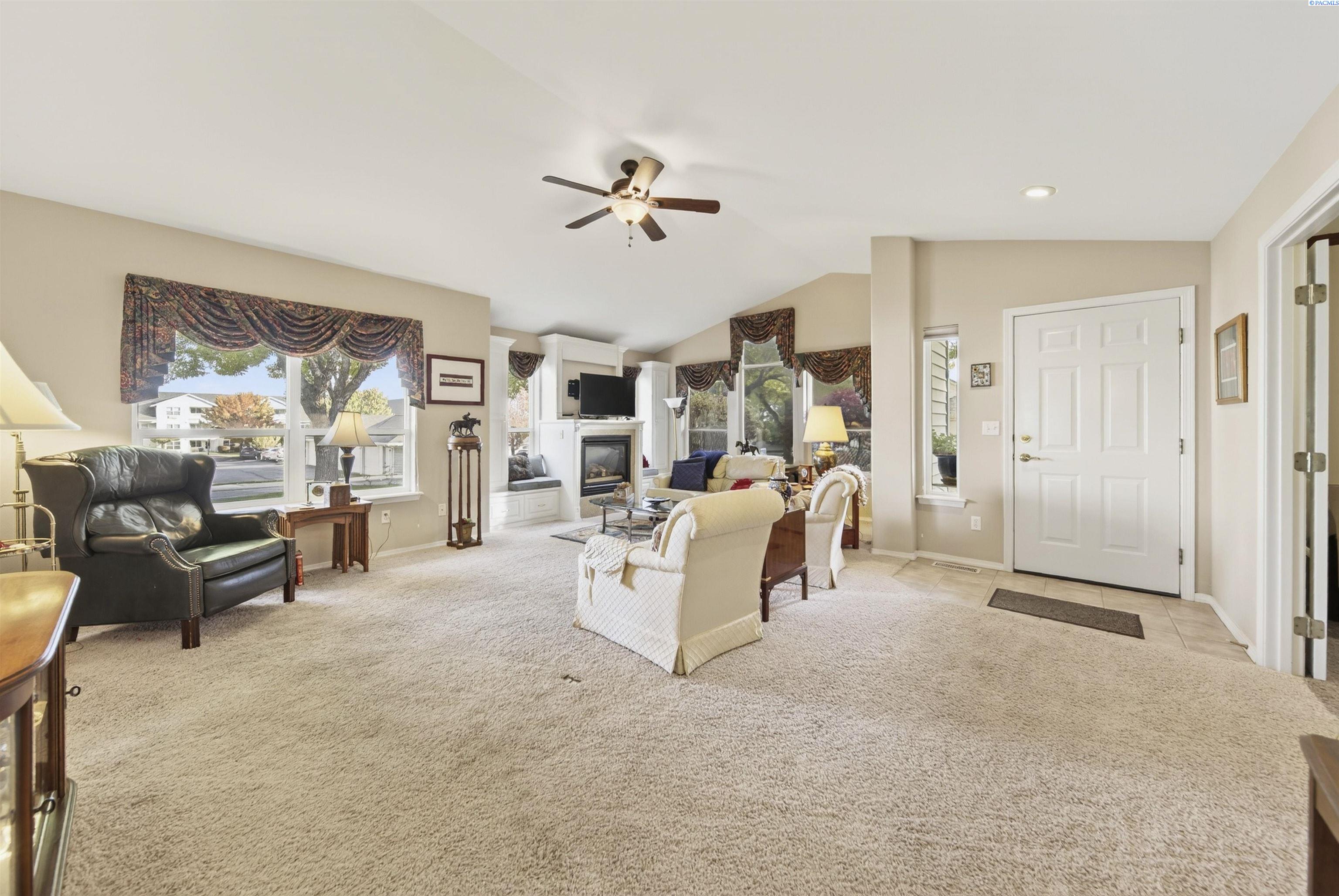 MLS# 288326 Welcome home to this inviting and well-maintained property that offers comfort, flexibility, and thoughtful updates throughout. The versatile den easily serves as a 3rd bedroom or home office. The tastefully updated kitchen features quartz countertops, double ovens, newer wood-effect tile floors, and modern finishes, flowing into a formal dining area with a beautiful custom built-in buffet and cabinetryâperfect for gatherings or extra storage. The spacious primary suite boasts vaulted ceilings, a large en suite bath, and generous walk-in closet, while the second bedroomâs skylight fills the space with natural light. Added closets and extra storage located throughout the home. The ceiling fans and gas fireplace add year-round comfort. Enjoy morning coffee or evening sunsets on both front and back patios overlooking peaceful walking paths and a nearby park, with a 4.5-star Golf Digest-rated course just moments away. Recent updates include a newer roof, water heater, new insulation (2024), and freshly cleaned carpets. Set on a large corner lot with three-sided views, this home includes a two-car garage and additional off street parking. Residents appreciate low-maintenance living with HOA-covered lawn care, snow removal, and window cleaning, plus optional access to a community center with indoor pool, spa, and assisted living services right next door. If youâre looking for a low maintenance home and community, youâve found it! Call your favorite agent for a showing today!