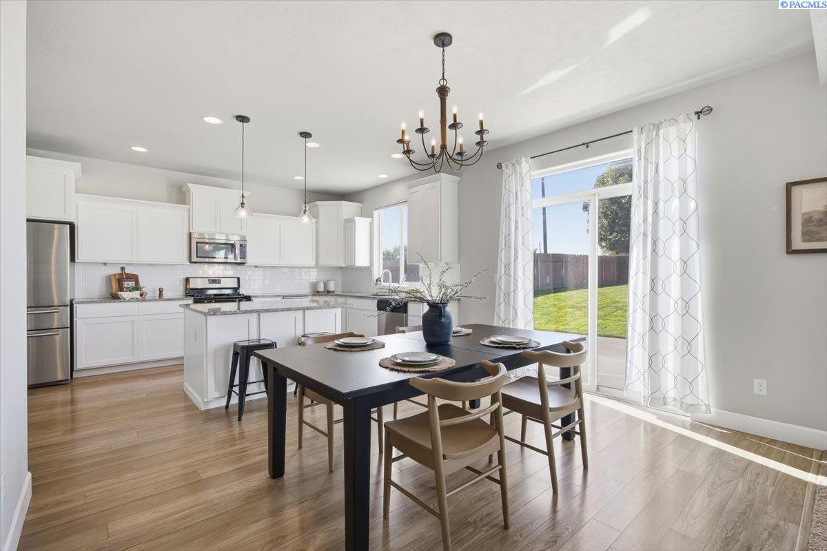 MLS #288342 In Madison Park, life feels a little easier and a lot more beautiful. This 2-story home offers over 2,500 sq ft of space designed for the way you live today, with 4 bedrooms, 2.5 baths, a main-level den, and a bonus loft upstairs. The kitchen shines with white cabinetry, granite counters, subway tile backsplash, walk-in pantry and upgraded laminate floors throughout the main level. Enjoy a fully fenced backyard complete with a fire pit, custom raised garden beds with irrigation, and a storage shed made for effortless entertaining and peaceful evenings. Just a short walk to Rosalind Franklin STEM Elementary, this home delivers style, function, and location all in one. Just minutes from everything off Road 68 including freeway access, Walmart, Lowes, the HAPO Center, coffee shops, and a wide selection of local eateries and restaurants. This home checks all the boxes for comfort, style, and convenience in one of West Pasco's most connected neighborhoods.