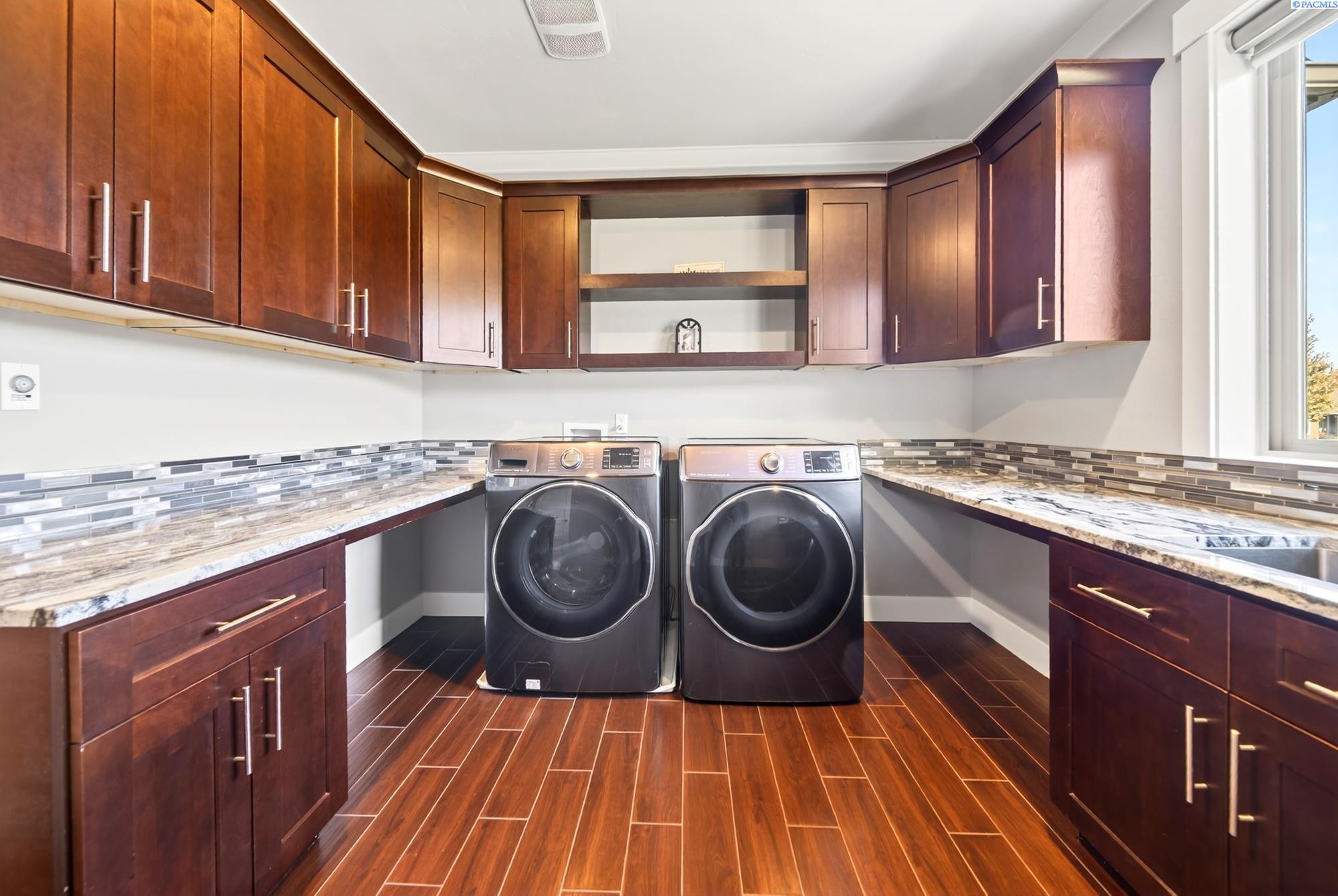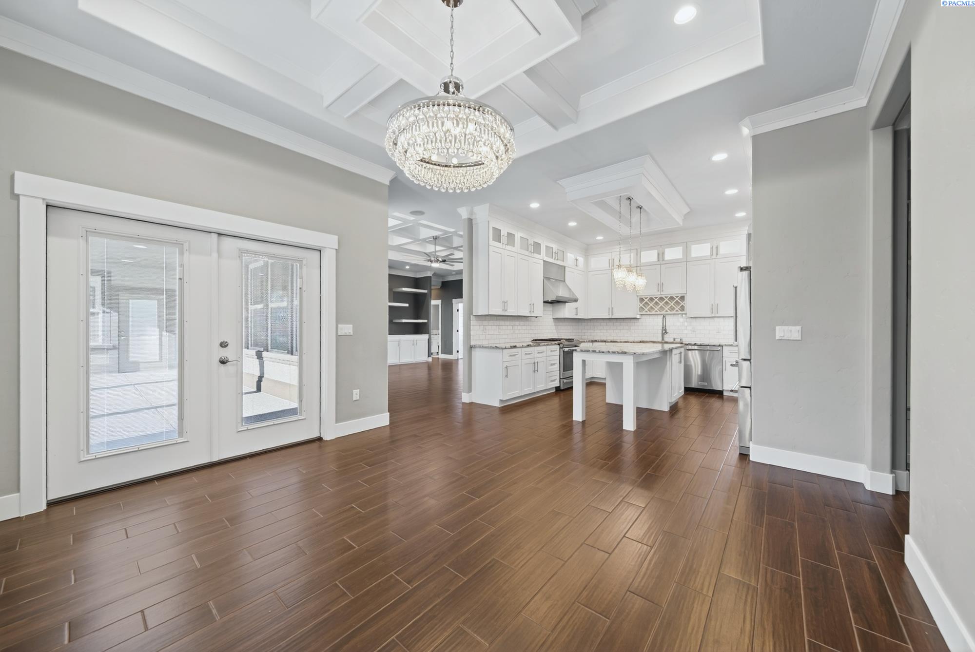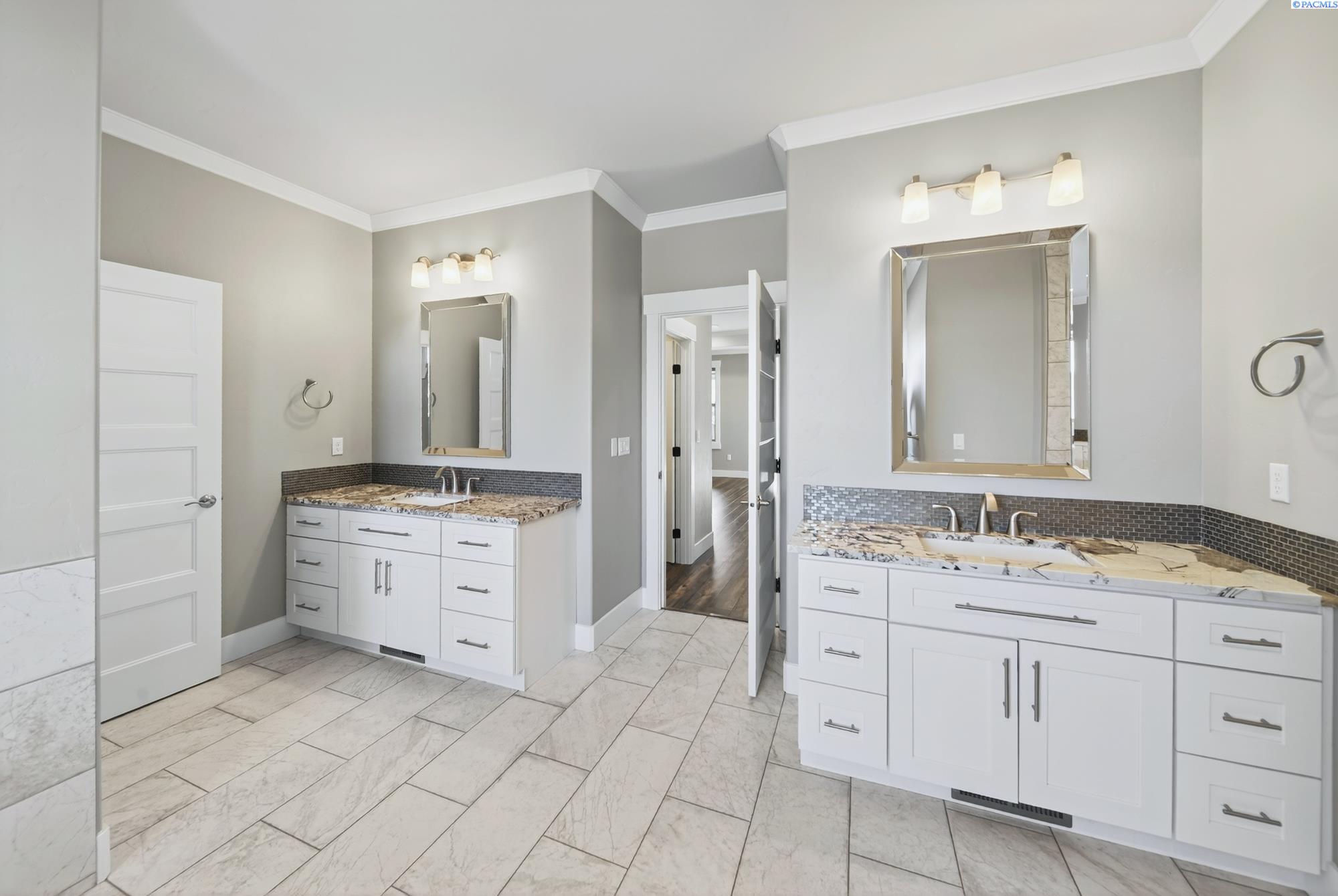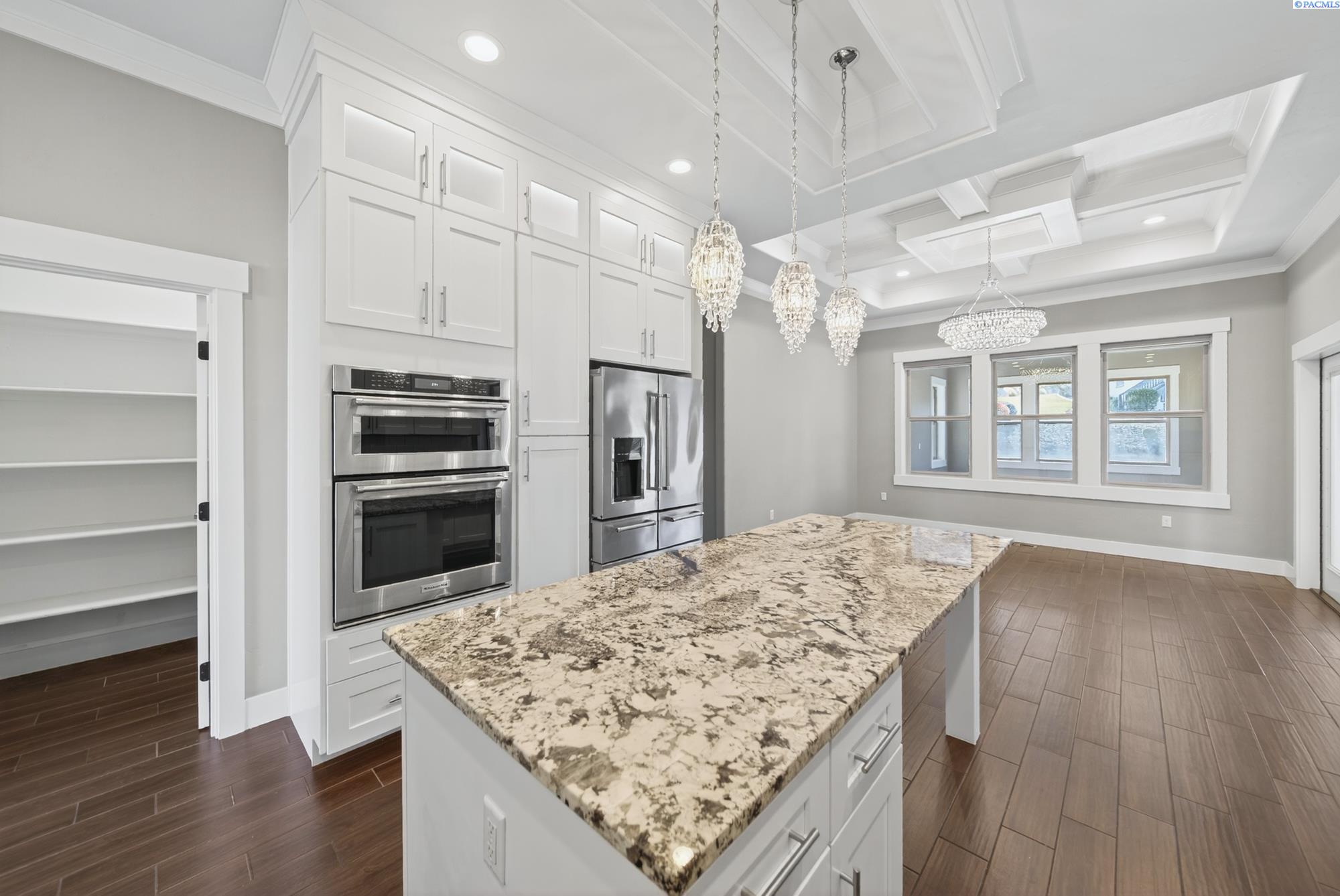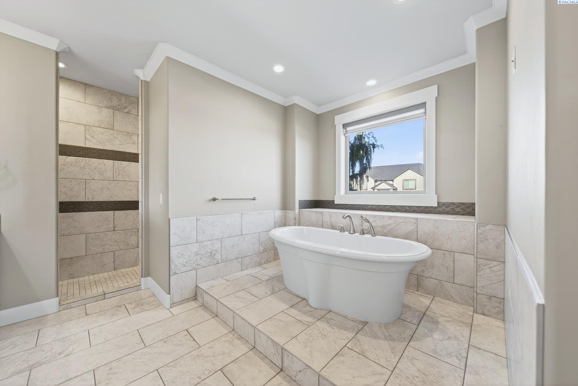 Luxury Living at Its Finest â Welcome to this stunning custom-built home offering 4,232 sq ft of elegant single-level living with a versatile upstairs bonus room, located on a premium corner lot in one of Kennewickâs most desirable neighborhoods. This 5-bedroom, 5-bathroom residence combines sophistication, comfort, and functionalityâideal for both entertaining and everyday living. Step inside to soaring 10â ceilings with crown molding, oversized hallways with storage, and wood-look tile throughout the main areas. The chefâs kitchen is a dream with high-end KitchenAid & GE stainless steel appliances, dual ovens, a 4-burner GE gas range with griddle, granite countertops, a farmhouse sink, custom cabinetry, and a walk-in pantry. The open-concept design features expansive windows that flood the home with natural light. Each of the four main-level bedrooms includes its own ensuite bath and walk-in closet. The luxurious primary suite features a sitting area, spa-like ensuite, and spacious walk-in closet. Upstairs, a large bonus room with a private balcony, separate HVAC, ensuite bath, and closet offers flexibility as a 5th bedroom, media room, or guest suite. Enjoy the beautifully landscaped backyard with a huge, covered patio, natural gas stub for year-round grilling, and a custom fire pit. A 16x15 flex room off the patio is pre-stubbed for water and gasâperfect for a future outdoor kitchen or wet bar. The oversized 4-car garage with epoxy floors adds function and curb appeal. With coffered ceilings, custom millwork, wood-framed windows, built-ins, and wainscoting throughout, every detail has been thoughtfully designed for upscale living. Donât miss your chance to own this exceptional home that blends luxury, comfort, and smart design.