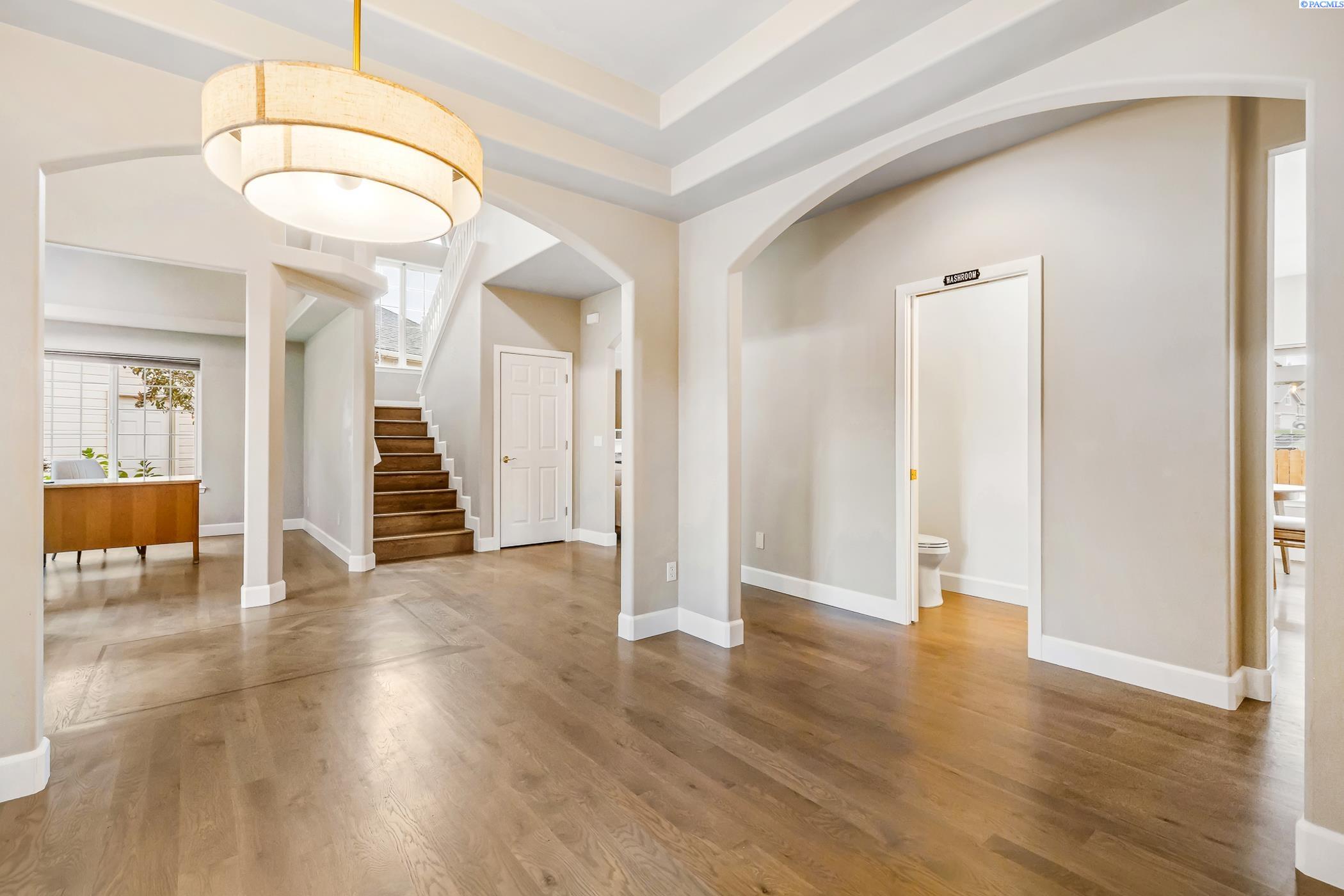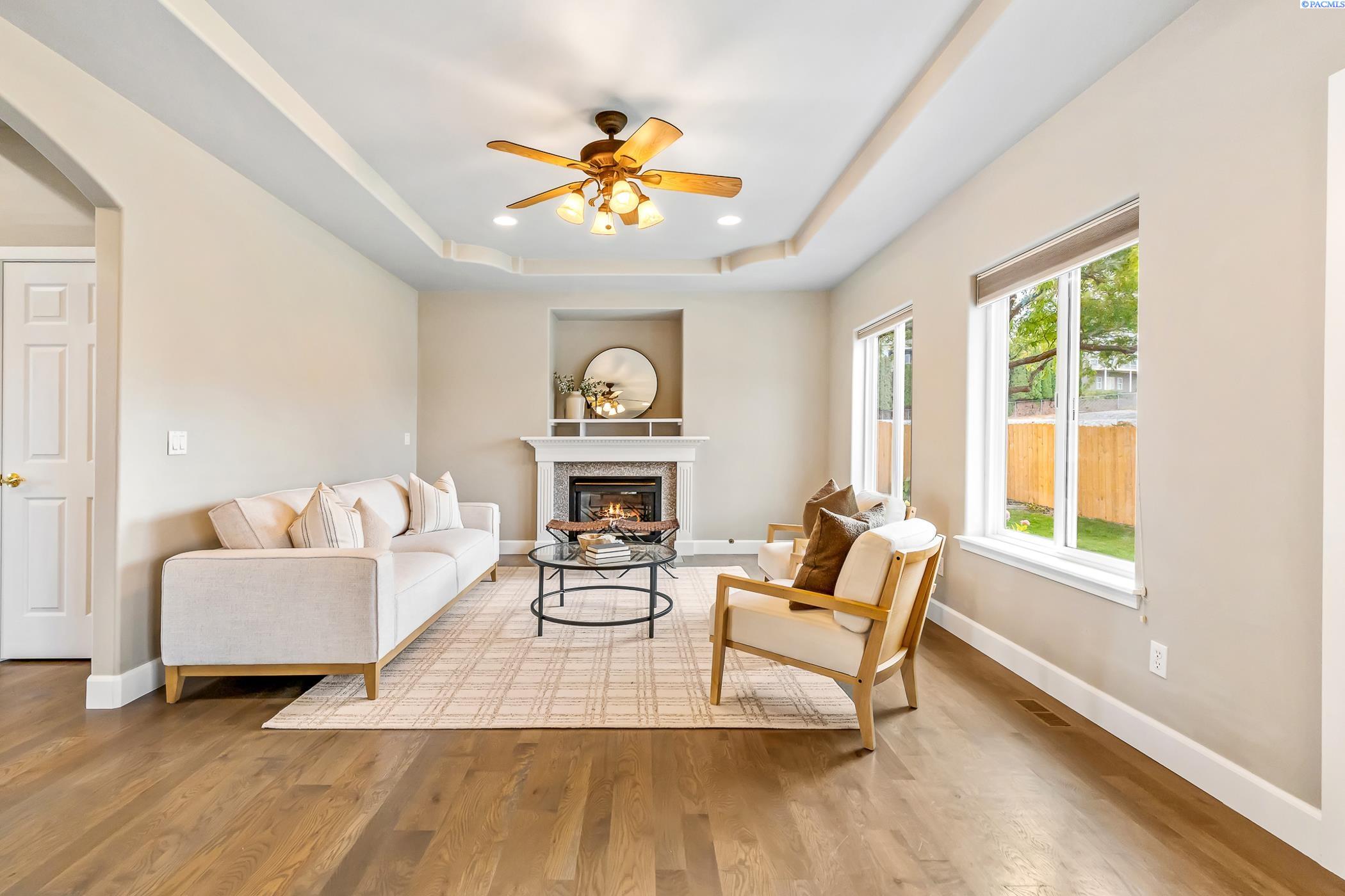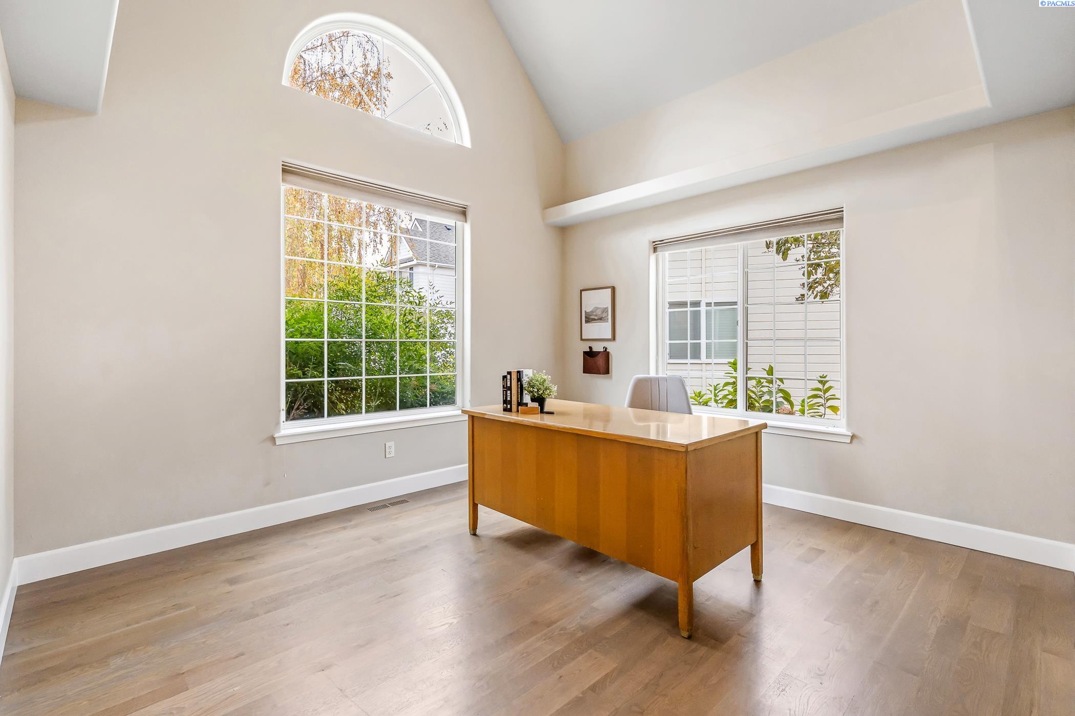 MLS #288472. This large home nestled in quiet south Richland's Birchfield Meadows neighborhood that features a community park, and is close to shopping, dining and schools. With over 3,100 square feet, 4 bedrooms and 4 bathrooms, there is plenty of space for everyone! The main level offers an abundance of natural light with high ceilings in the entry and plenty of windows. The main level also features a formal dining room, a separate office or flex space, cozy living room and open eat-in kitchen with a convenient half-bath and laundry room. Upstairs you will find the first 2 generously sized bedrooms that share a full jack-and-jill bathroom. Across the hall is a junior suite with an attached full bathroom. Down the hall is a massive primary suite featuring a cozy fireplace, vaulted ceilings a large en-suite with a soaking tub, dual vanities and walk-in shower. An oversized walk-in closet completes the space and offers endless storage options. Outside offers a private backyard complete with new fencing, new patio, a large pergola for shade, raised garden beds, a tranquil water feature and a nice sized shed. The garage is a 3-car tandem with built-in shelving and cabinets, ready for your storage needs and hobbies. This home is move-in ready and welcomes new owners with fresh interior paint and new carpet. Don't miss your chance to view this lovely home in a great neighborhood. Ask about the 1% preferred lender credit being offered!