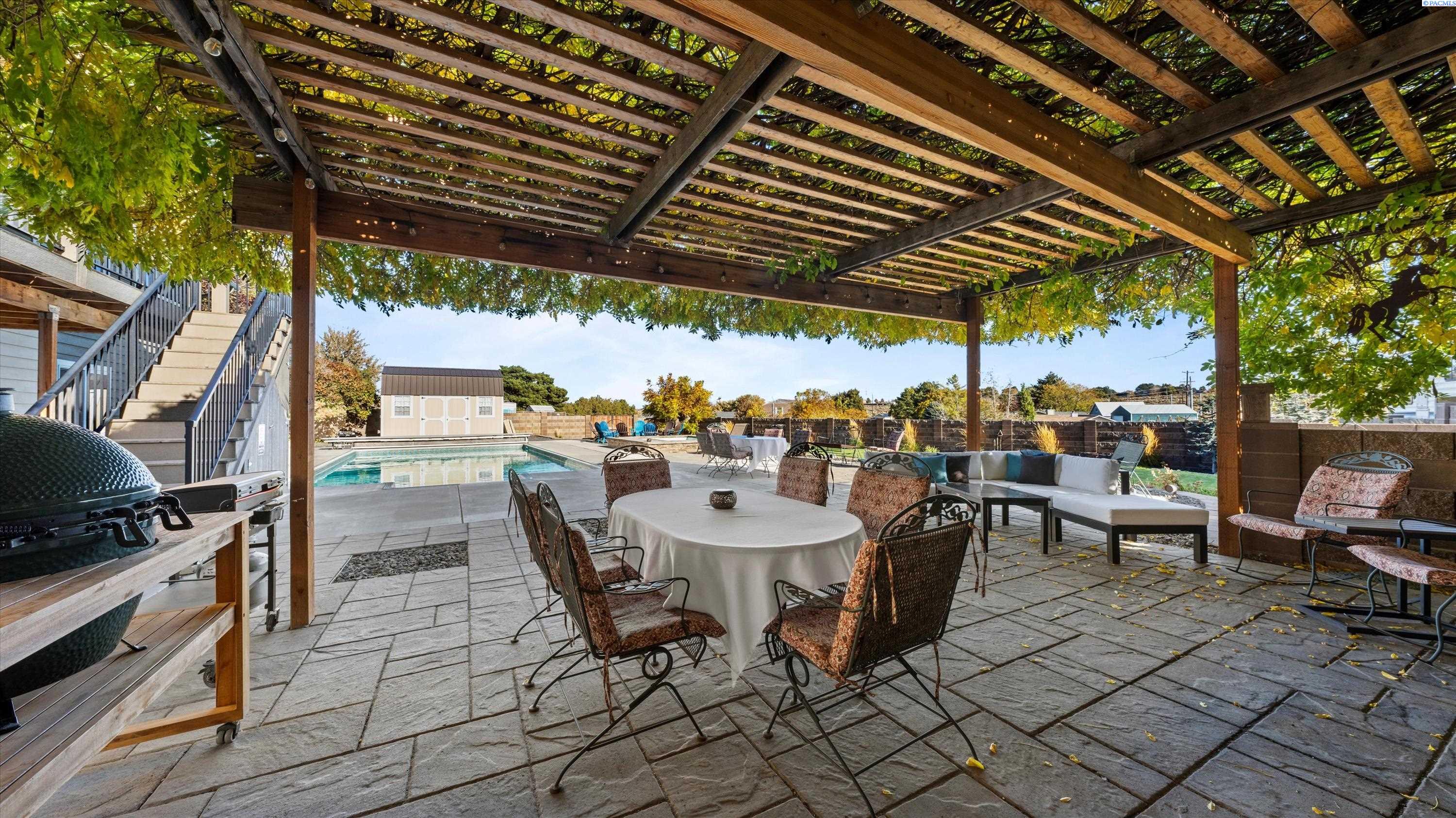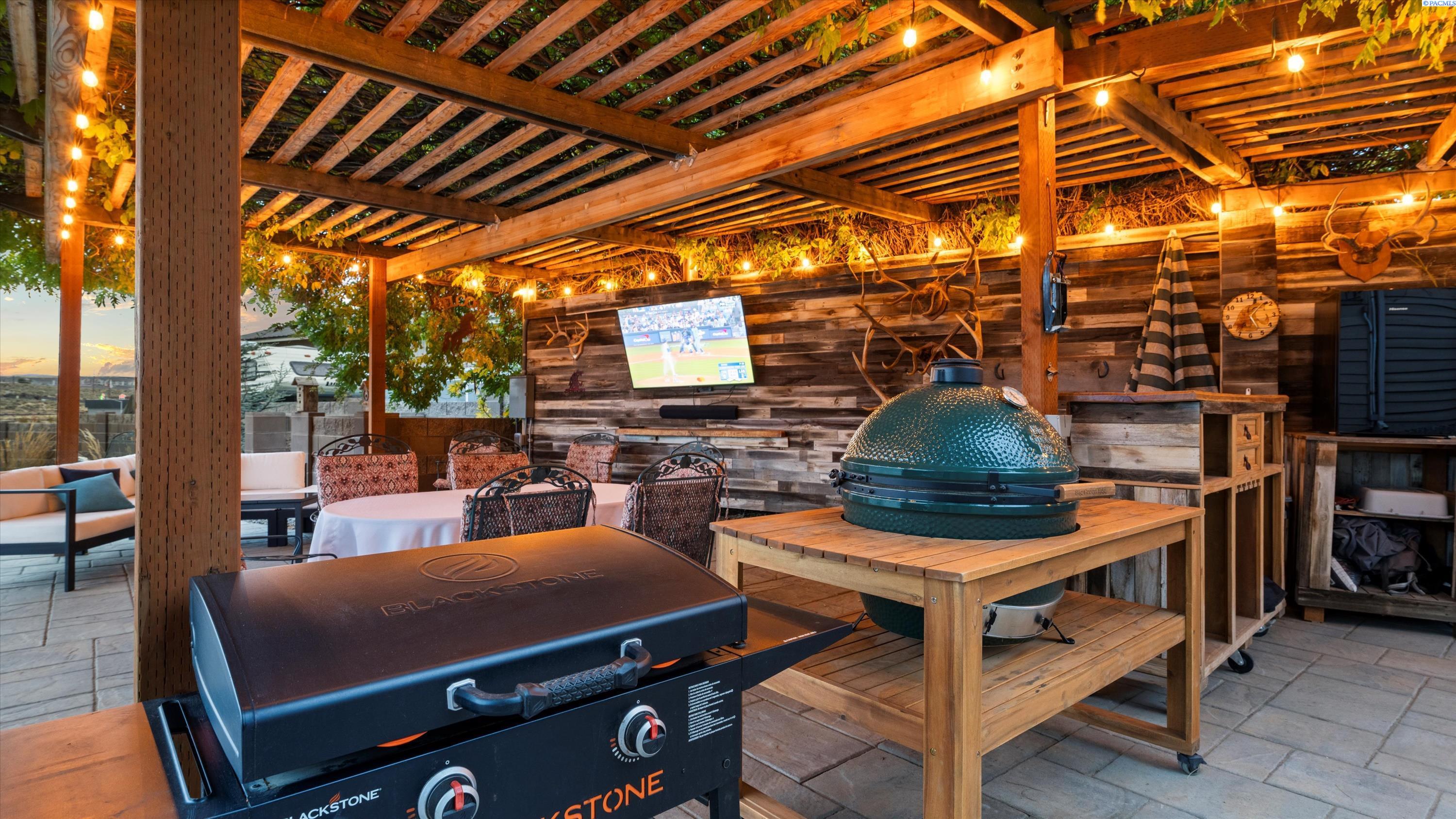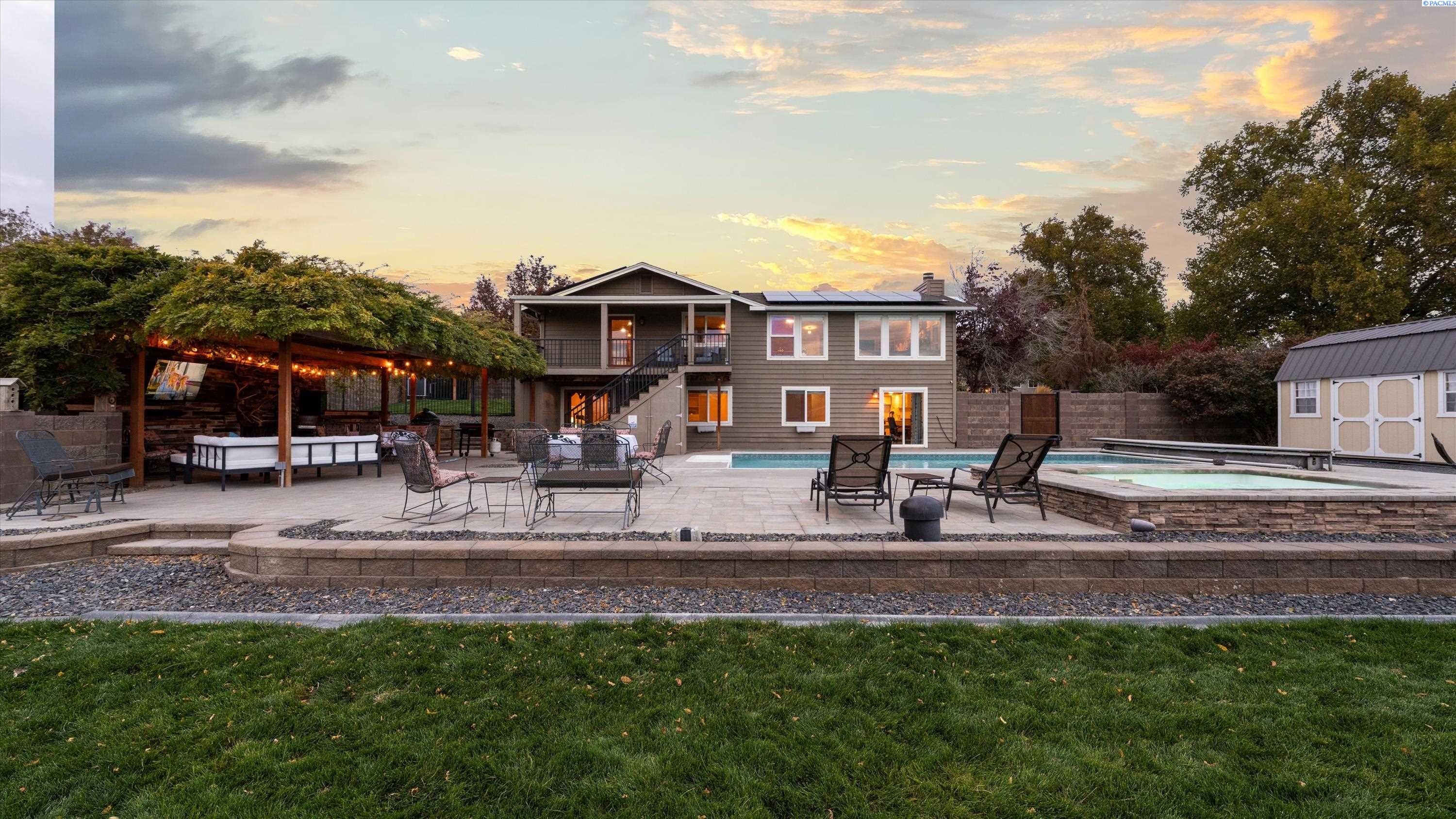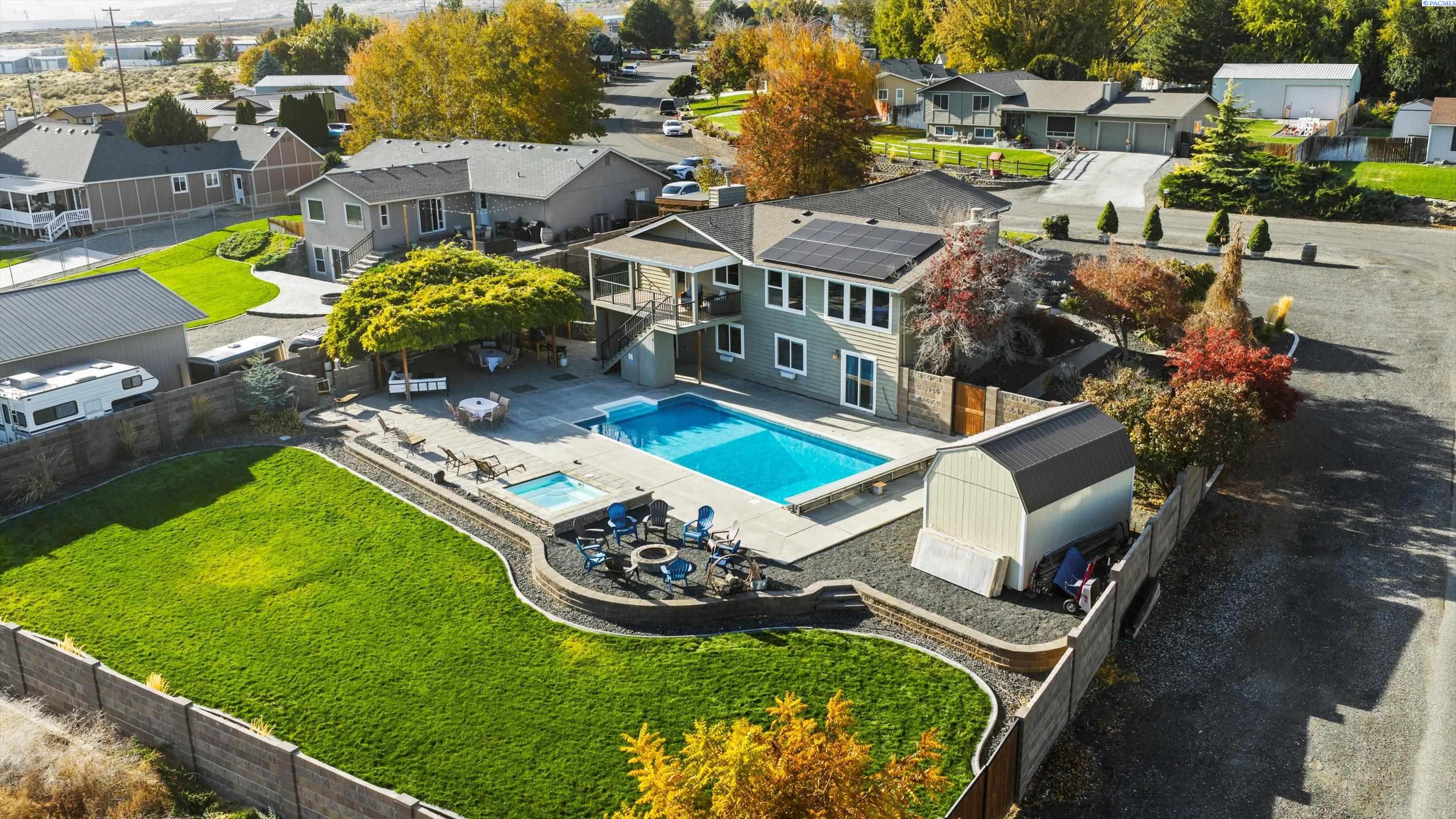 MLS# 288556 Welcome to 145 Travis Lane, where youâll instantly feel at home â whether itâs slow mornings with coffee by the fireplace or gathering the crew for game night, this space was made to live in and love!Step inside and youâre greeted by a spacious living area that flows seamlessly into one of multiple dining spaces. The chefâs kitchen is truly the heart of the home, featuring a 6-burner Dacor range with pot filler, beautiful tile backsplash, custom cabinets with pantry storage with pull-outs, and a huge granite island with space for ALL the things. Gather at the bar seating or step out to the patio and rock overlooking your backyard oasis. Upstairs, you find a 3/4 bath and a spacious bedroom with walk-in closet makes the perfect guest room or flex space. Downstairs, the oversized ownerâs retreat offers a peaceful escape with a tiled shower, soaking tub, large closet, and ample storage. Youâll also find two additional bedrooms, a full bath with tile shower, and a bright laundry room with folding area and extra workspace/flex space. Outside, the upgrades continue with extended concrete to host multiple seating areas that invite you to relax by the pool and hot tub, unwind under the dreamy pergola for movie nights, or gather around the firepit with friends. Thereâs still plenty of room to play â from kicking the ball on the manicured lawn to letting little ones (or pups) run free in the fully fenced yard. Practical updates bring everyday ease â updated HVAC system, updated water heater, solar panels that offset utilities, new carpet in multiple rooms, exterior surround sound, dog run with fencing and kennels, and a storage shed. Plus, RV and off-street parking and no HOA make this home the perfect blend of comfort and freedom. Your poolside retreat is ready!