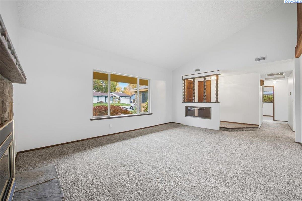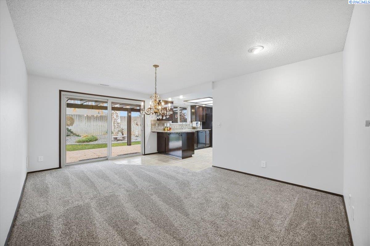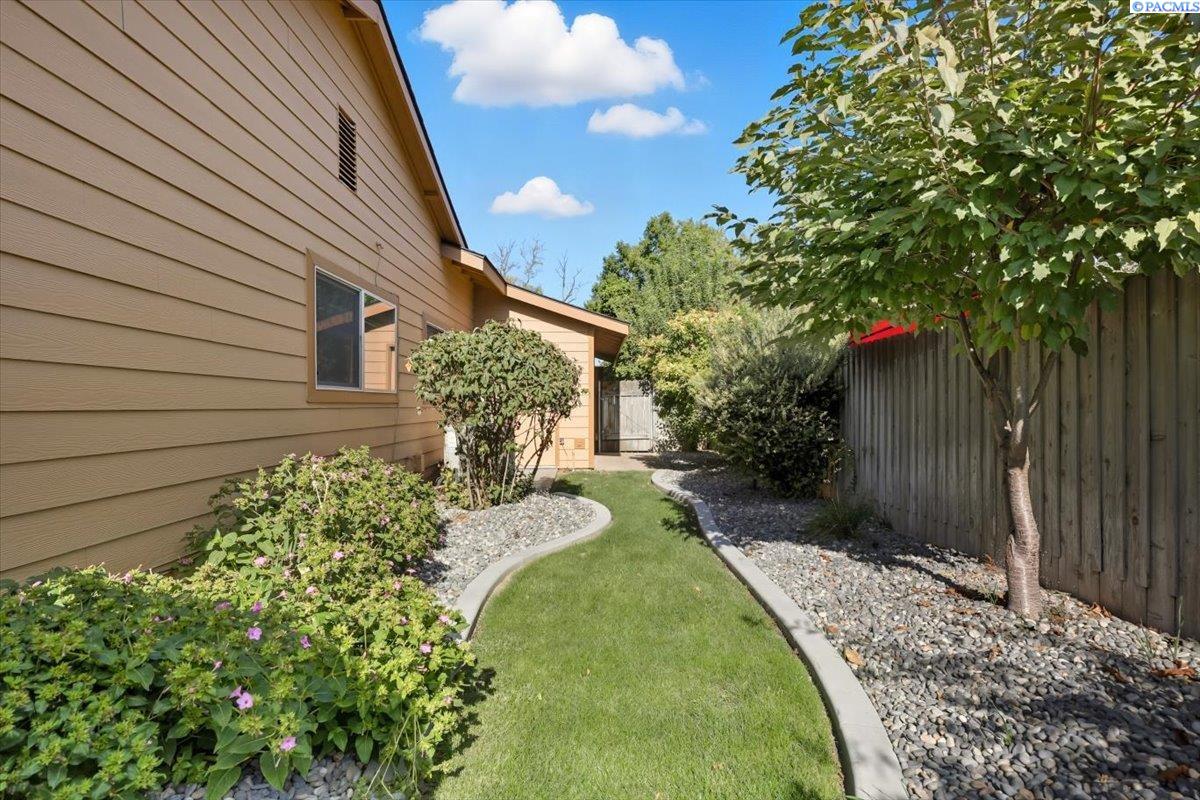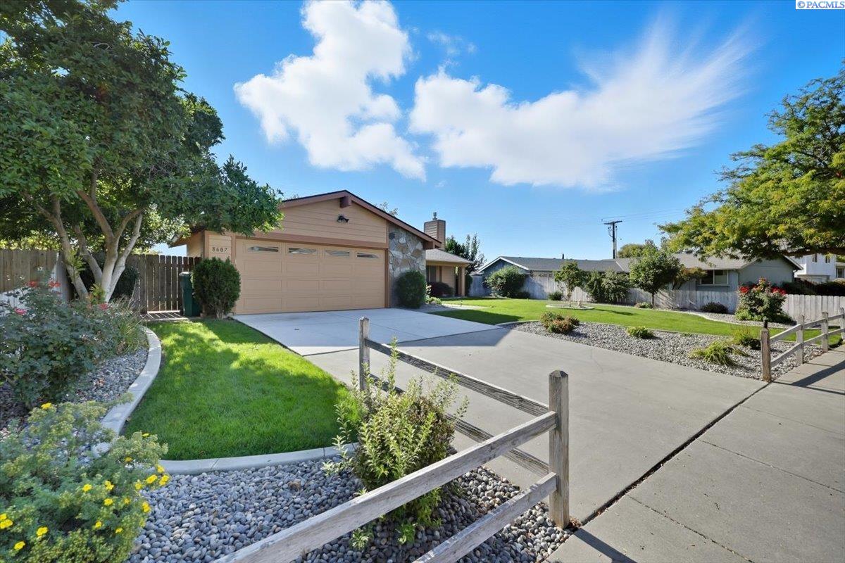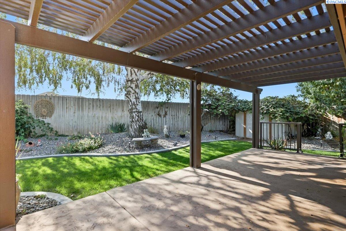 Nestled in desirable West Kennewick, this charming home offers three bedrooms and two bathrooms, featuring brand new carpeting and fresh interior paint throughout. Newer concrete board siding and paint on entire exterior of home. The kitchen boasts refinished cabinets, elegant quartz countertops, tile backsplash and is completed with all appliances. Enjoy meals in the formal dining room or unwind in the open living room with vaulted ceilings. The family room provides additional space for gatherings, and the backyard is a true Better Homes and Garden view, including pergola, and a patio the full length of the back home. There is amply garden space. The yards have been professionally landscaped. Fully fenced with 2 gates for easy access. Bedrooms are spacious with so much natural light. Primary suite includes access to the private back patio. Walk in closet, granite counters, sink and tile backsplash. Primary bath features jacuzzi bath and shower including new flooring. Two additional spacious bedrooms and a main bath that showcases a newer solid surface shower, tile flooring and sink/vanity. Laundry room is conveniently located near the bedrooms including upper storage cabinets. Additional newer amenities include HVAC, windows, water heater, dishwasher, and roof. Two car garage has been freshly painted. This home is ready to become your new home!