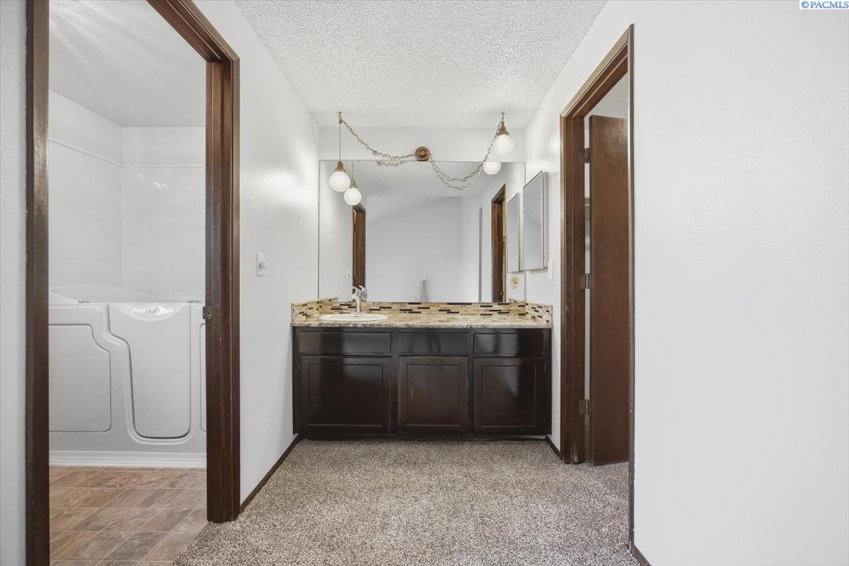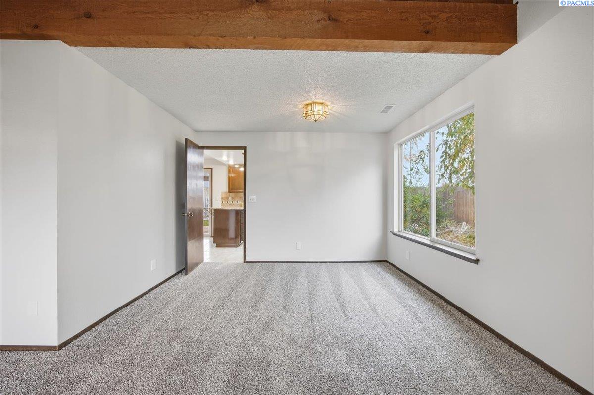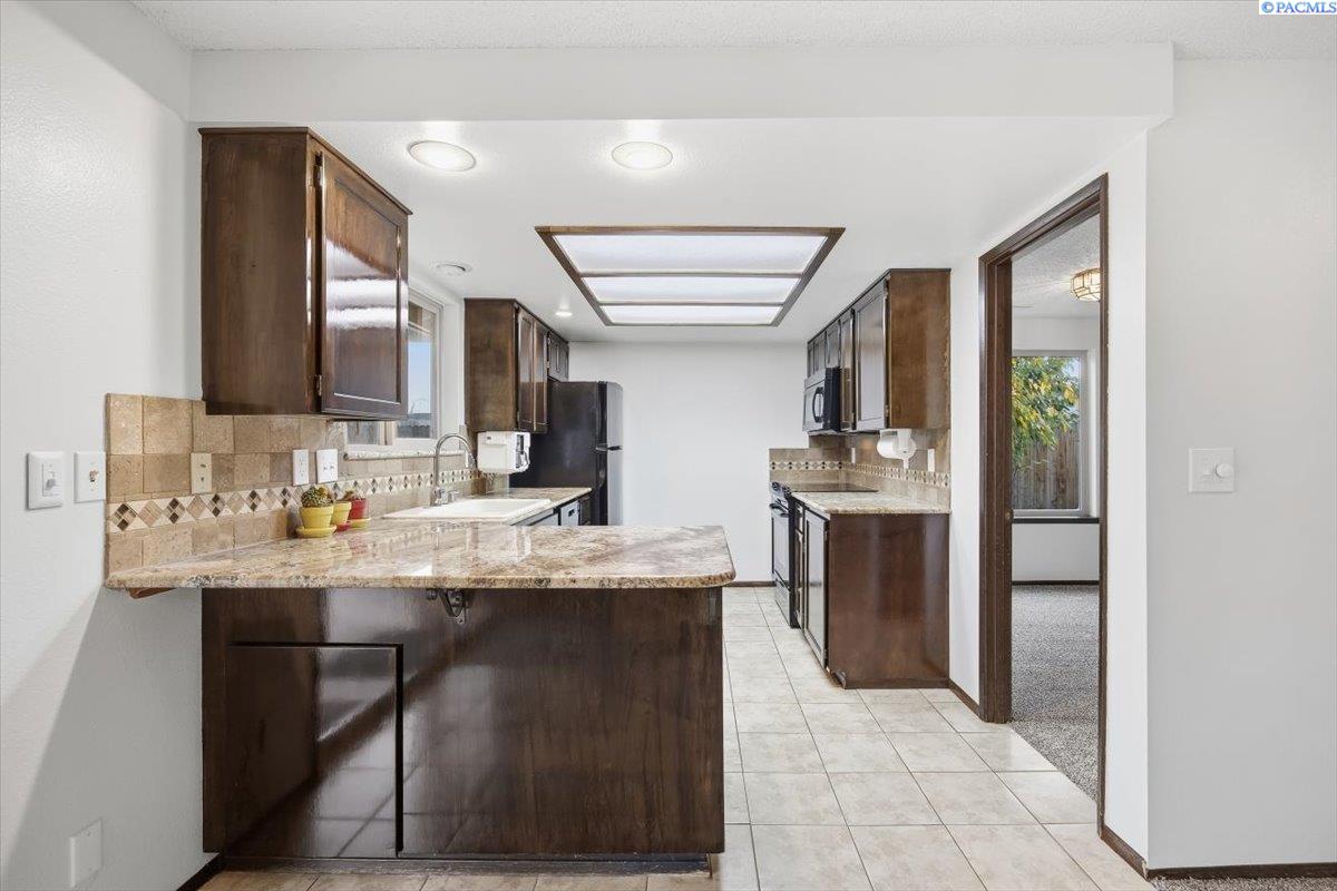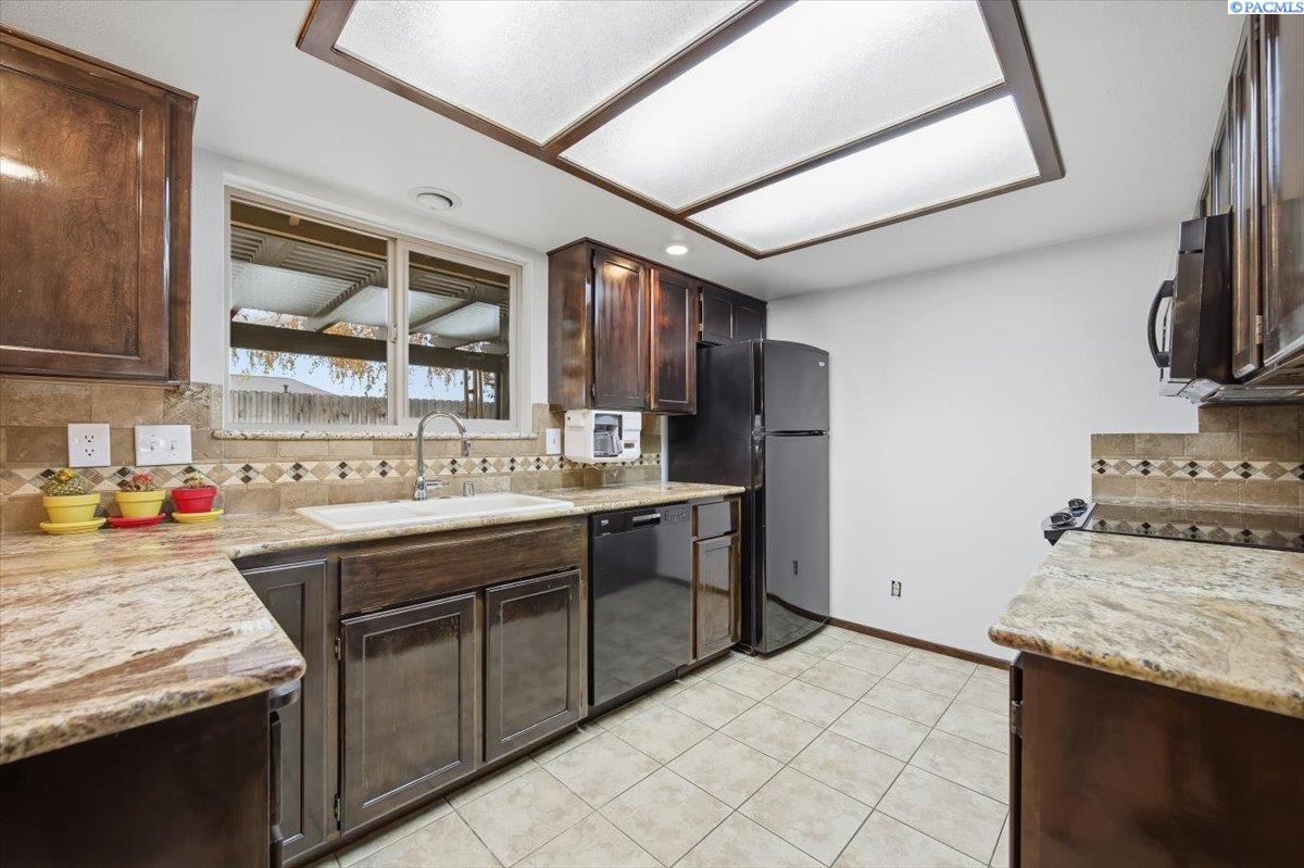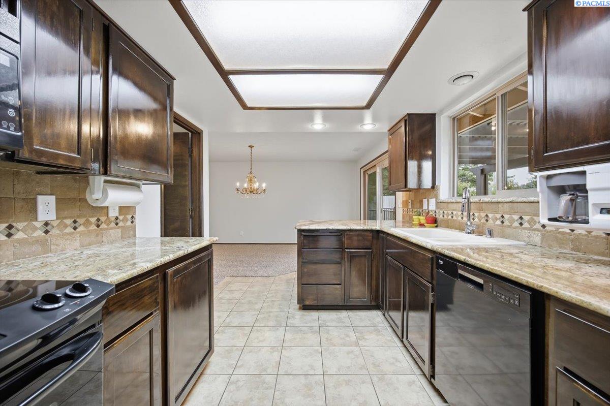 Nestled in desirable West Kennewick, this charming home offers three bedrooms and two bathrooms, featuring brand new carpeting and fresh interior paint throughout. Newer concrete board siding and paint on entire exterior of home. The kitchen boasts refinished cabinets, elegant quartz countertops, tile backsplash and is completed with all appliances. Enjoy meals in the formal dining room or unwind in the open living room with vaulted ceilings. The family room provides additional space for gatherings, and the backyard is a true Better Homes and Garden view, including pergola, and a patio the full length of the back home. There is amply garden space. The yards have been professionally landscaped. Fully fenced with 2 gates for easy access. Bedrooms are spacious with so much natural light. Primary suite includes access to the private back patio. Walk in closet, granite counters, sink and tile backsplash. Primary bath features jacuzzi bath and shower including new flooring. Two additional spacious bedrooms and a main bath that showcases a newer solid surface shower, tile flooring and sink/vanity. Laundry room is conveniently located near the bedrooms including upper storage cabinets. Additional newer amenities include HVAC, windows, water heater, dishwasher, and roof. Two car garage has been freshly painted. This home is ready to become your new home!