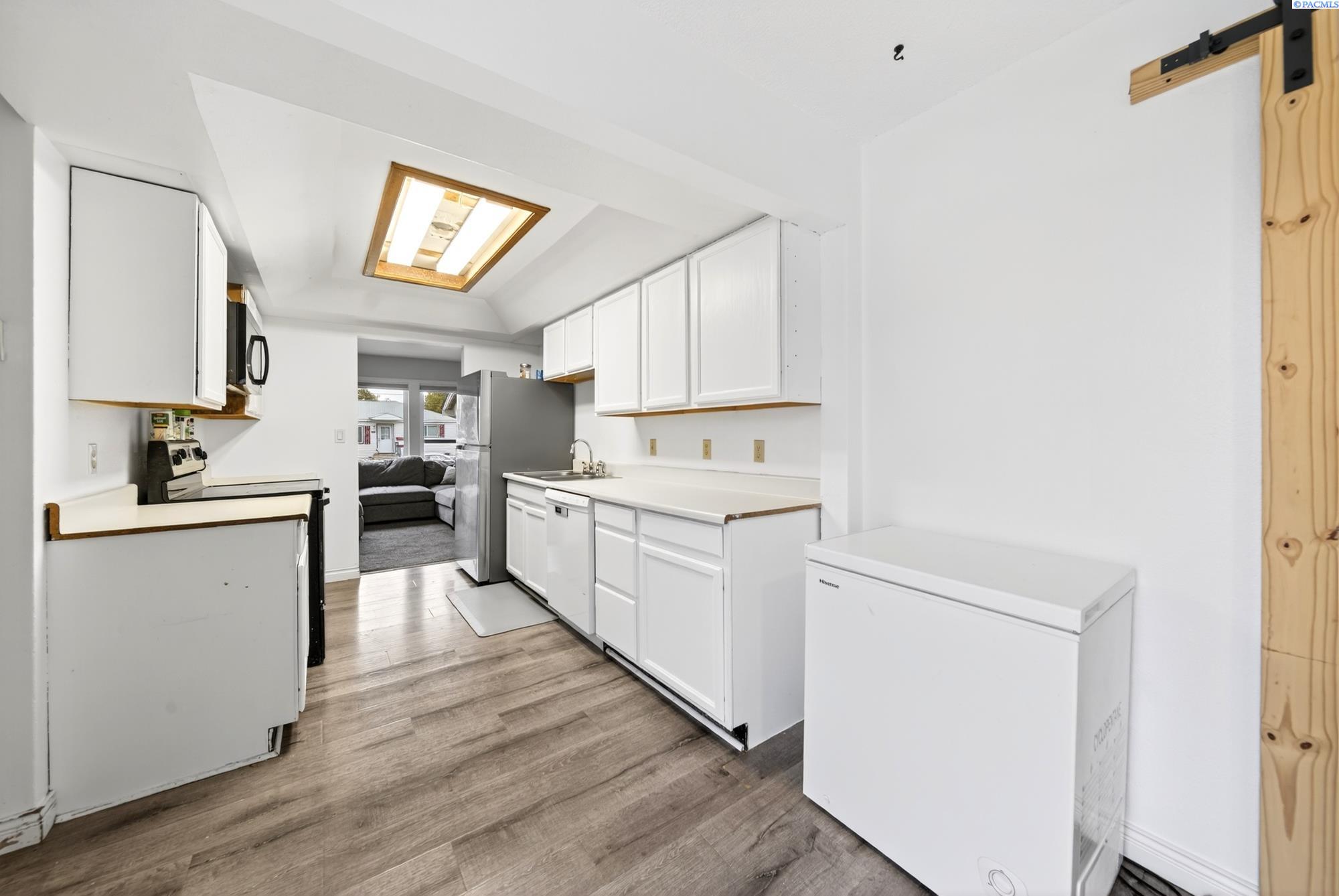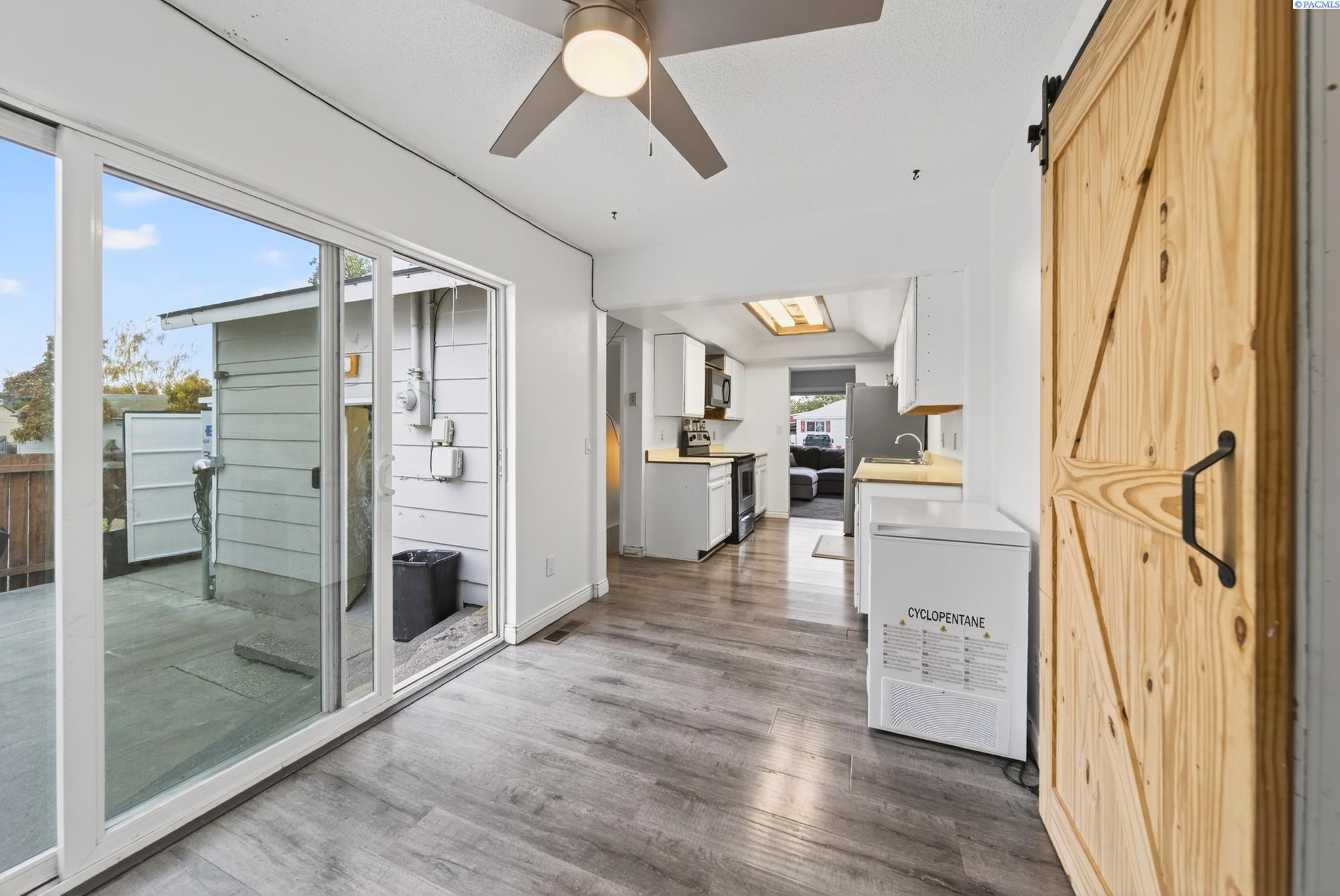MLS# 288636 North Richland home completely finished! Come in and enjoy 1,872 square feet of living space! Through the front door you will enter the living room with a fireplace. Make your way through the recently painted kitchen on your way to the dining area. Continue on through the barn door to your primary bedroom with a 3/4 bath. The door connecting the primary to the second bedroom certainly has its advantages. Down the hall is a full bath and a 3rd bedroom on the main floor. As you head downstairs enter your second living area. Downstairs you will find two more bedrooms with egress windows, a laundry area, and another 3/4 bath to fulfill your needs. Out back you will see ample space to enjoy as well as a great storage shed to house all your lawn needs. This home also has a one car garage and off-street parking as well. Come check this home out!