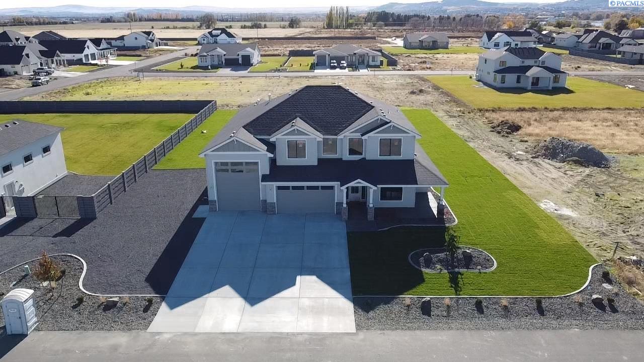 MLS# 288639 Welcome to this exceptional 2 story residence in Spencer Estates in West Pasco. Set on a 1/2 acre lot with no HOA's, this 5 bed 3 bath home offers 3,237 sq. ft. of meticulously designed living space. The impressive 5 car garage with RV bay, provides ample room for vehicles, toys and hobbies. Upstairs, a versatile bonus room anchors four spacious bedrooms, including a luxurious primary suite with a large walk in closet, tiled walk in shower, and stand alone soaking tub. The intentional design of this floor plan features a main level bedroom and full bath, ideal for guests or multigenerational living. In the heart of the home, the gourmet kitchen impresses with quartz surfaces, a butlerâs pantry, and elegant details and finishes, opening to a spacious living area centered around a cozy gas fireplace. Step outside to enjoy the wrap around front porch, covered back patio, and a fully landscaped, partially fenced yard. With room to roam, itâs the ideal space for entertaining or relaxing.Quietly located off Road 100, yet only minutes from the shopping, dining and everyday amenities along Road 68. An exceptional opportunity to live in one of the areaâs most desirable neighborhoods!