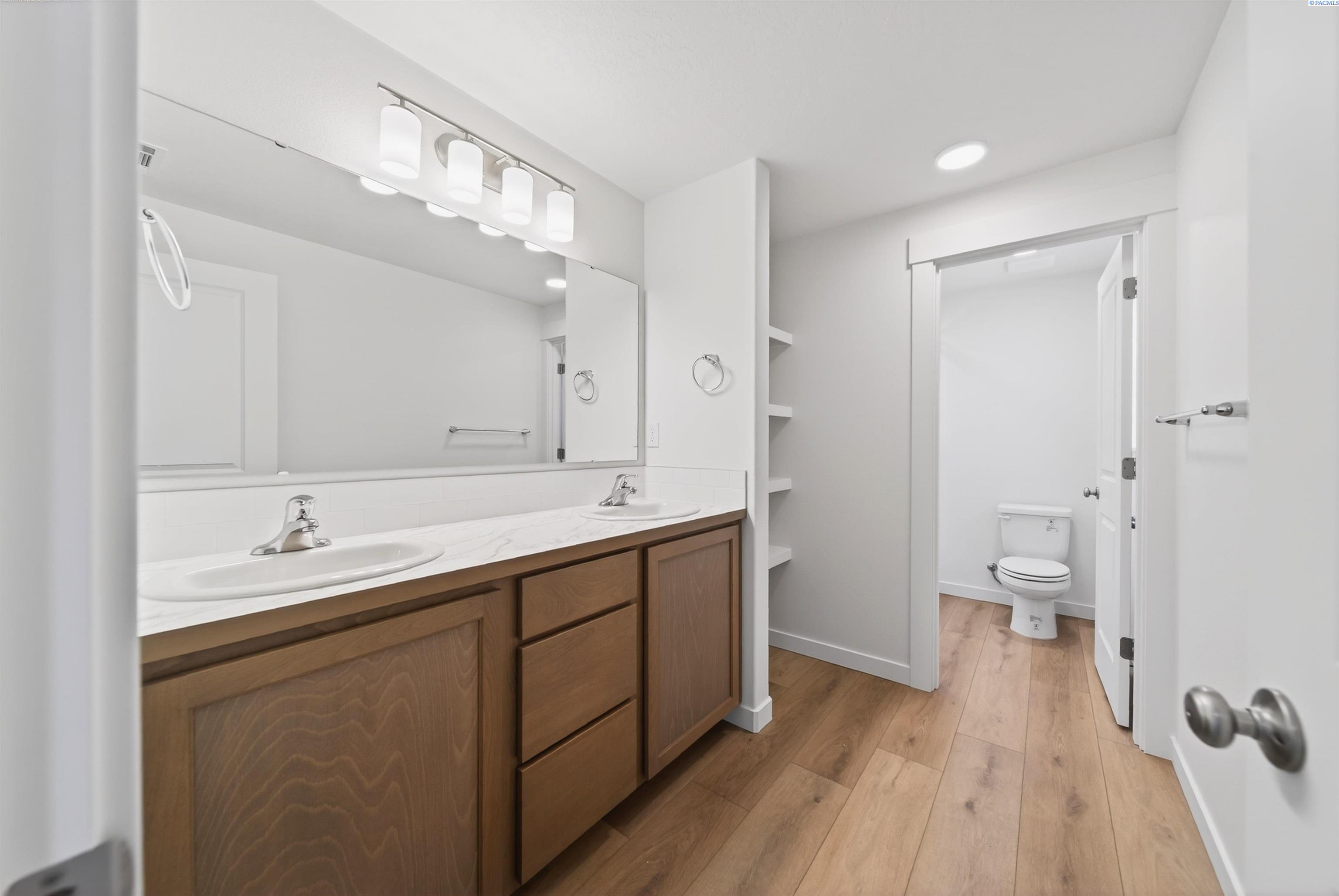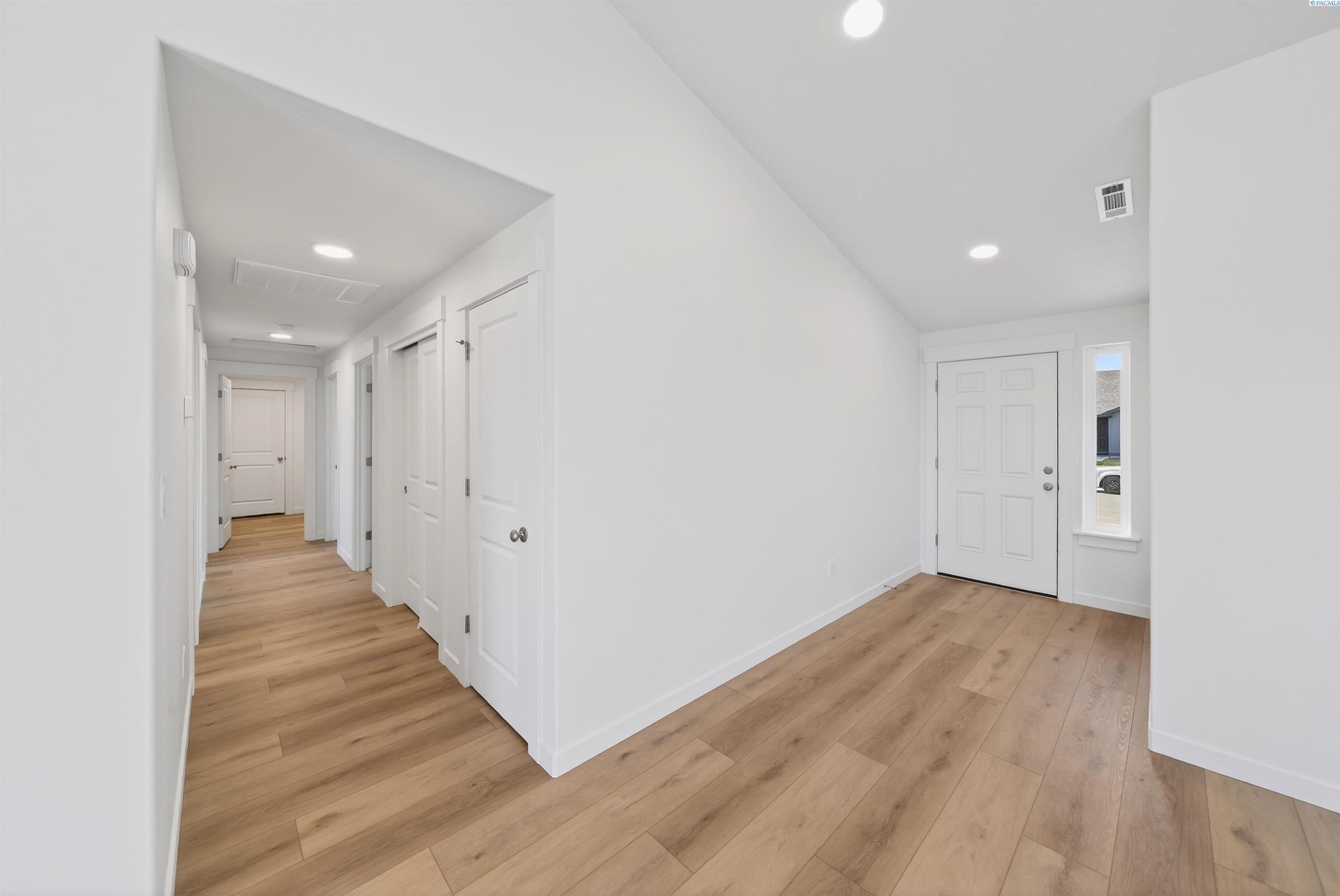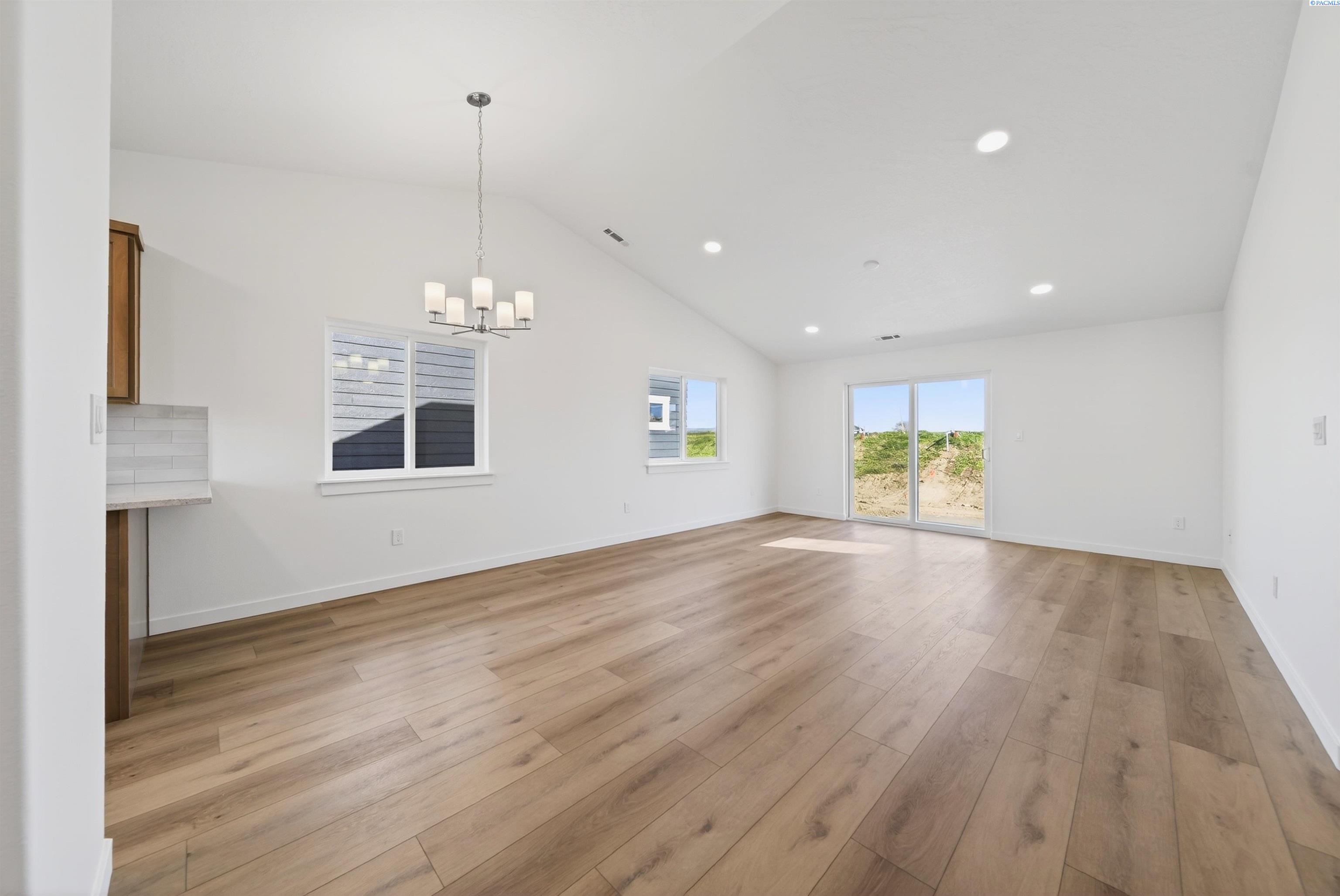 MLS# 288665 Get up to $15k* to use on extras like closing costs, interest rate buydown and options. The 1388 square foot Dover proves that a mid-size home can be more than it appears. The front entry opens to a vaulted living area, including the light and bright kitchen, dining room and living room. The kitchen provides ample counter space and cupboard storage. The main suite is expansive, featuring a spacious closet and a dual vanity bath. Sharing the second bathroom are the two other sizable bedrooms. A laundry room is conveniently situated near the bedrooms and leads out to the garage. This compact plan is smartly-designed with comfort and efficiency in mind.