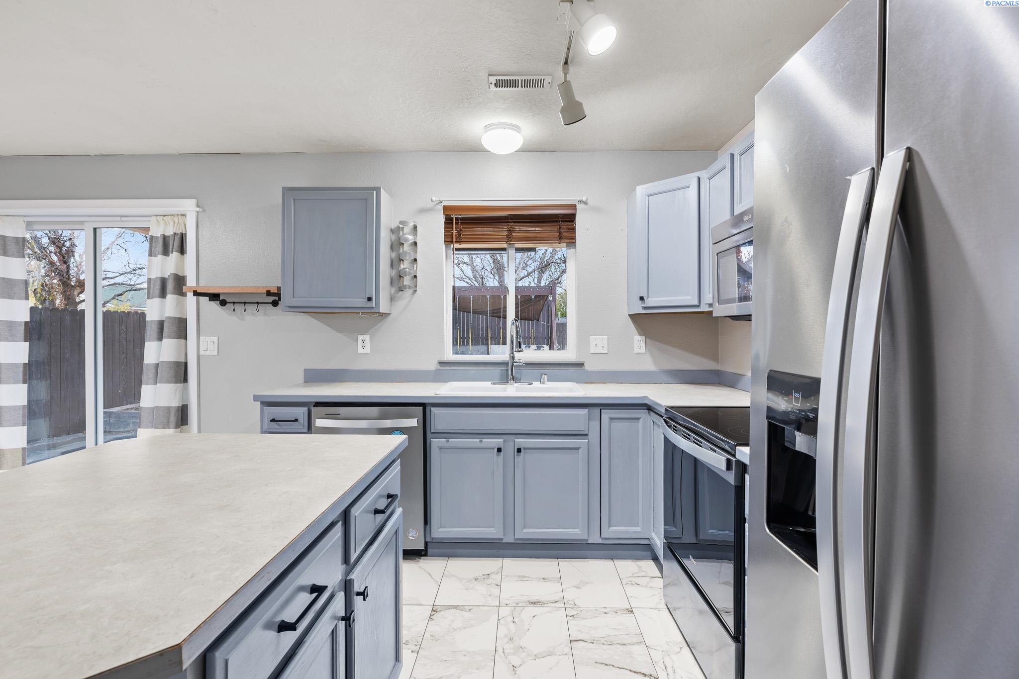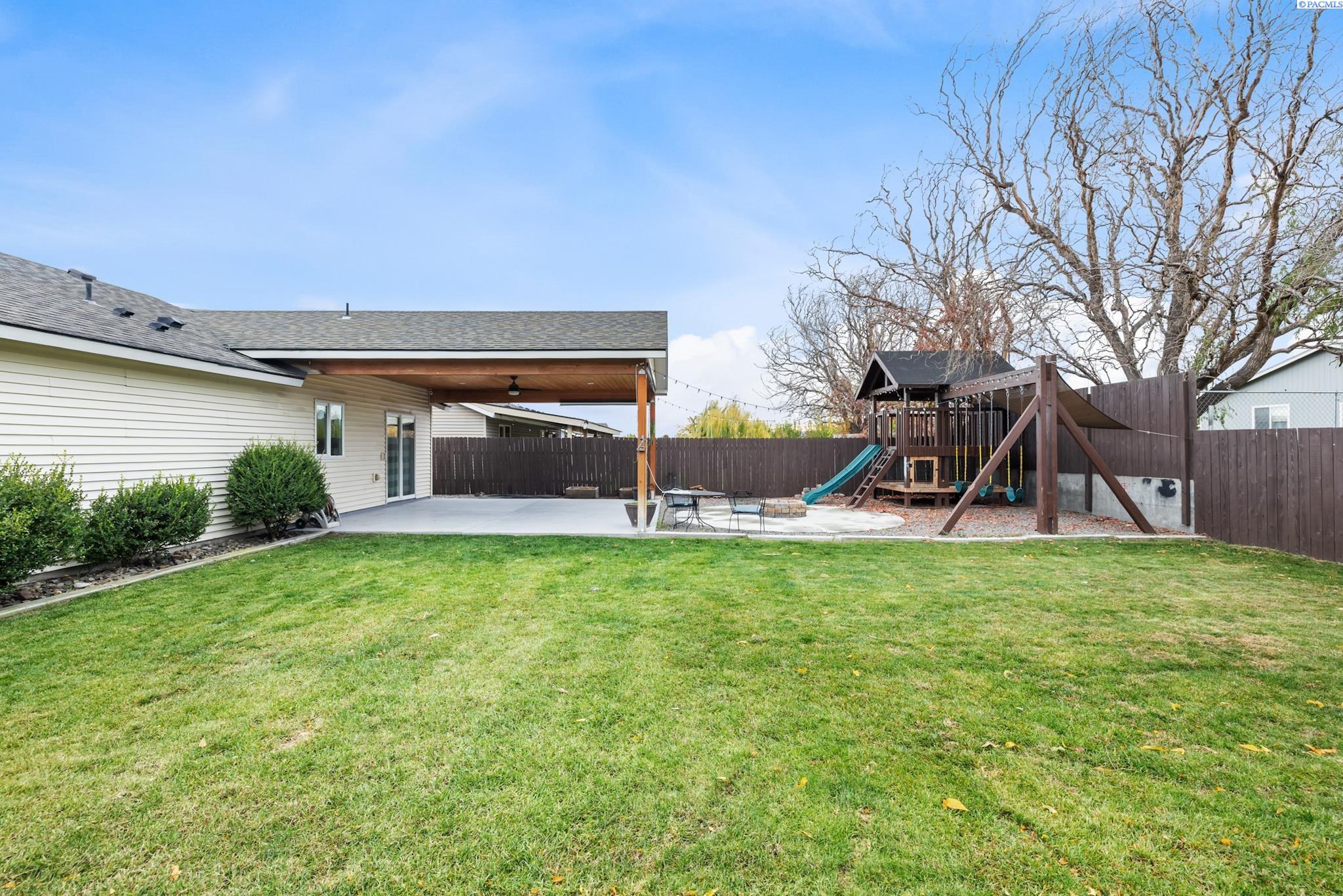 MLS# 288678 This well-kept home is what youâve been searching for⦠Step inside to a bright and inviting open-concept layout with a large front window that fills the living room with natural light. The living, dining, and kitchen areas flow together seamlessly. The kitchen features a well-placed island that adds extra counter space and functionality, and all kitchen appliances stay, making it truly move-in ready. Along with three comfortable bedrooms, youâll find a dedicated office with its own front door to the driveway and a window for natural light. The office also has direct access to both the main home and the garage for added convenience. The primary bedroom includes a beautifully remodeled bathroom with floor-to-ceiling marble-style tile, a walk-in shower with a frameless glass door, pebble stone flooring, and a contrasting accent wall with a built-in niche. Both bathrooms feature quartz countertops and have been thoughtfully updated, while two hallway linen closets offer great storage. A dedicated laundry room sits away from the main living areas, keeping things quiet and organized. Practical updates include a 2015 AC unit, a 5-year-old water heater, and Ring cameras for peace of mind. Step outside to an entertainerâs dream backyard â starting with a large covered patio featuring a beautiful wood ceiling, recessed lighting, a ceiling fan, and pull-down shades for year-round comfort. Thereâs plenty of space for outdoor dining, lounging, or hosting friends while you enjoy the fully fenced backyard, complete with raised garden beds, a fire pit, lush grass, and a well-maintained playset. Itâs a space designed for connection and relaxation, day or night. With its easy-care yard, thoughtful updates, and functional layout, this home stands out for its quality and value. Itâs move-in ready and waiting for its next owner to enjoy everything it has to offer.