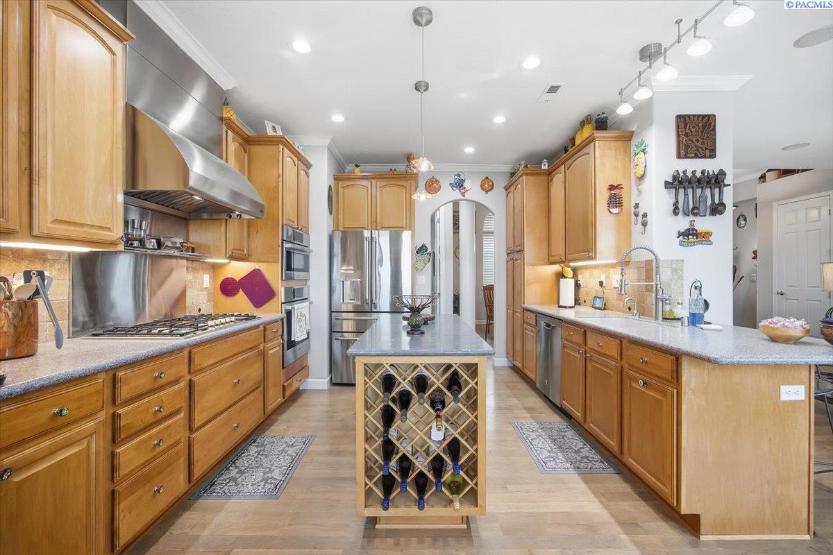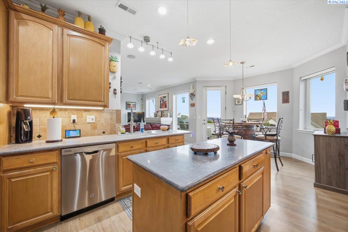 MLS# 288692 Welcome to 649 Clermont in South Richlandâs sought-after Crested Hills neighborhoodâan established community known for its monument entrance, quiet streets, mature landscaping, and nearby park. This stunning custom-built Pischel home offers single-level living at its finest, with thoughtful upgrades, quality ICF construction, and breathtaking views of the river and mountains.Step inside to find soaring ceilings, rich Laurel wood flooring throughout, and an inviting gas fireplace that anchors the open living space. The kitchen features a natural gas range, plenty of counter space, and updated LED lighting for a bright, modern feel. Windows are double paned and some windows have casement openings. The oversized extended garage with finished epoxy floors provides ample storage and space for hobbies, while extra side parking accommodates a boat or trailer.Relax on the back patio and take in the sweeping viewsâespecially spectacular when the skyline glows on the 4th of July. Enjoy peace of mind with a Trane HVAC system (2023), sealed and cleaned ducts, whole-house fan with air filter, and newer water heater (2020). With easy access to shopping, dining, and top-rated schools, this meticulously cared-for home combines comfort, privacy, and style in one beautiful package.