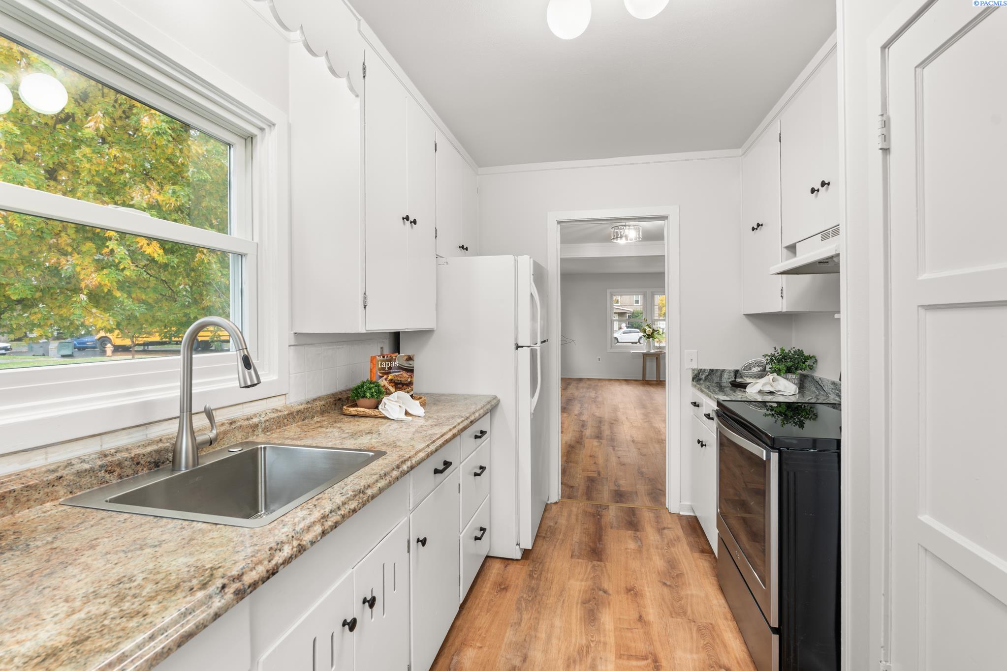 Freshly updated 1944 Richland Alphabet House in sought-after Central Richland, just steps from Goethals Park! This charming home offers versatile living space with 4 bedrooms total. The completely refreshed upper level features 3 bedrooms and 1 bath with brand new luxury vinyl flooring throughout, energy-efficient Anderson windows, and fresh paint including the kitchen. The updated bathroom showcases a new vanity. The lower level provides excellent flexibility with a 4th bedroom (with egress window), spacious family room, dedicated laundry area, and storage room - perfect for multi-generational living or potential rental income. Major systems are move-in ready with a 2-year-old roof and brand new heat pump for year-round comfort. Bonus storage building in the backyard provides extra space for tools and seasonal items. This historic home offers modern updates while maintaining its vintage character.