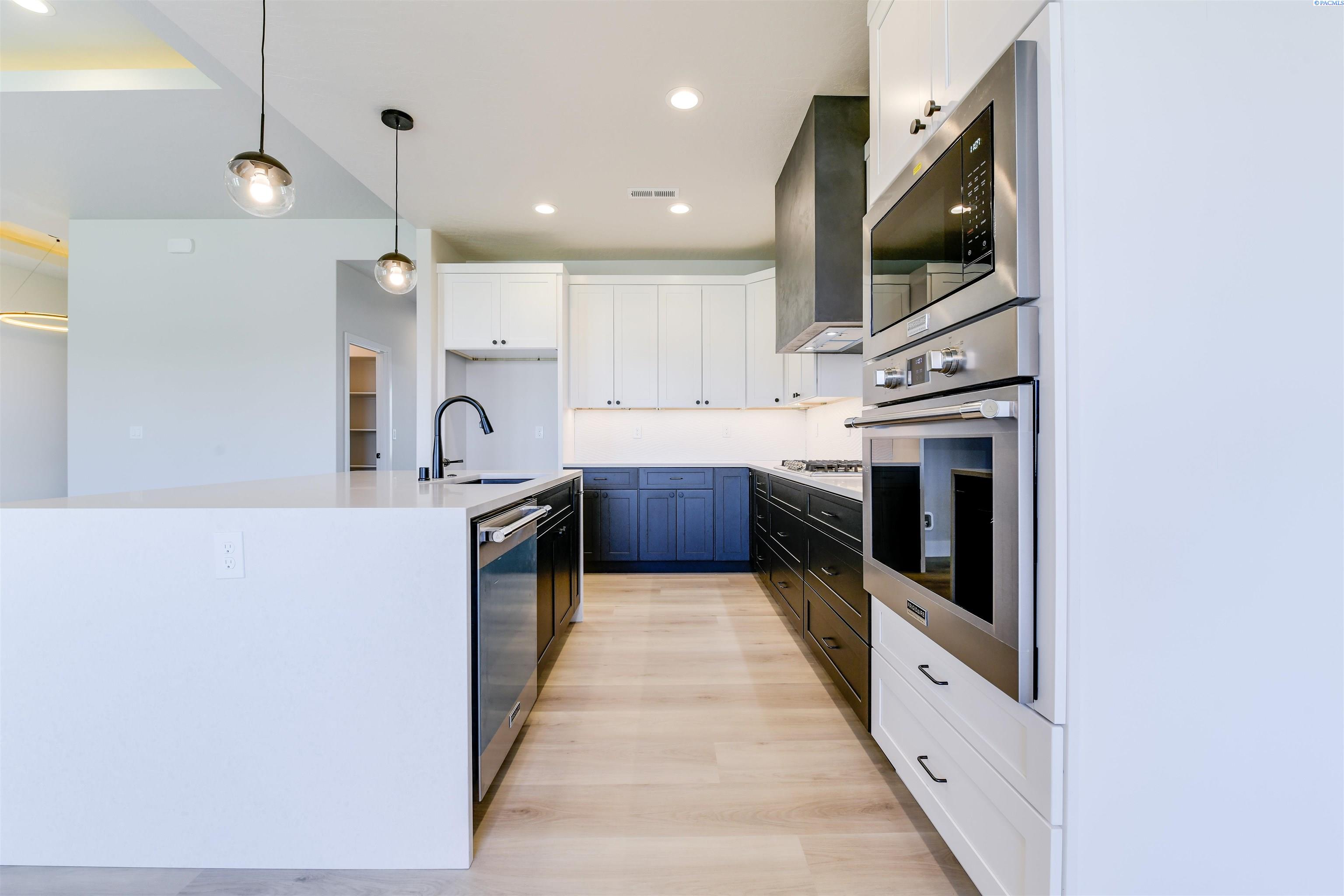 MLS# 288838 Welcome home to your newly complete and beautiful Pro Made Home. Located in Marcello Estates in South Richland. This Pro Made Elite home has been completed with so many additional features, upgrades and details including Hardy Plank siding with stone accents. The walkway leads you to the elegant 3 panel glass front door. Entry foyer features a coffered ceiling with accent rope lighting, raised ceiling, a contemporary electric fireplace in the spacious great room with another coffered ceiling and rope lighting. The great room is open to the kitchen and dining space with beautiful designer selected details and accents including a premium stainless steel appliance package, quality cabinets with soft close doors and drawers, quartz counters, full height tile backsplash, pantry, and a waterfall island. The covered patio with tongue and groove ceiling is great for entertaining and easy access to the yard with UGS and full yard landscape. The main bathroom features full file accent wall and a tub with tile surround. The master bedroom with access to en-suite with walk-in shower, vanity with full tile wall accent, a large soaking tub, and walk-in closet. Please visit our homes to see what we offer and what sets us apart from other builders in this price point. Exceptional Value; Uncompromised Quality.