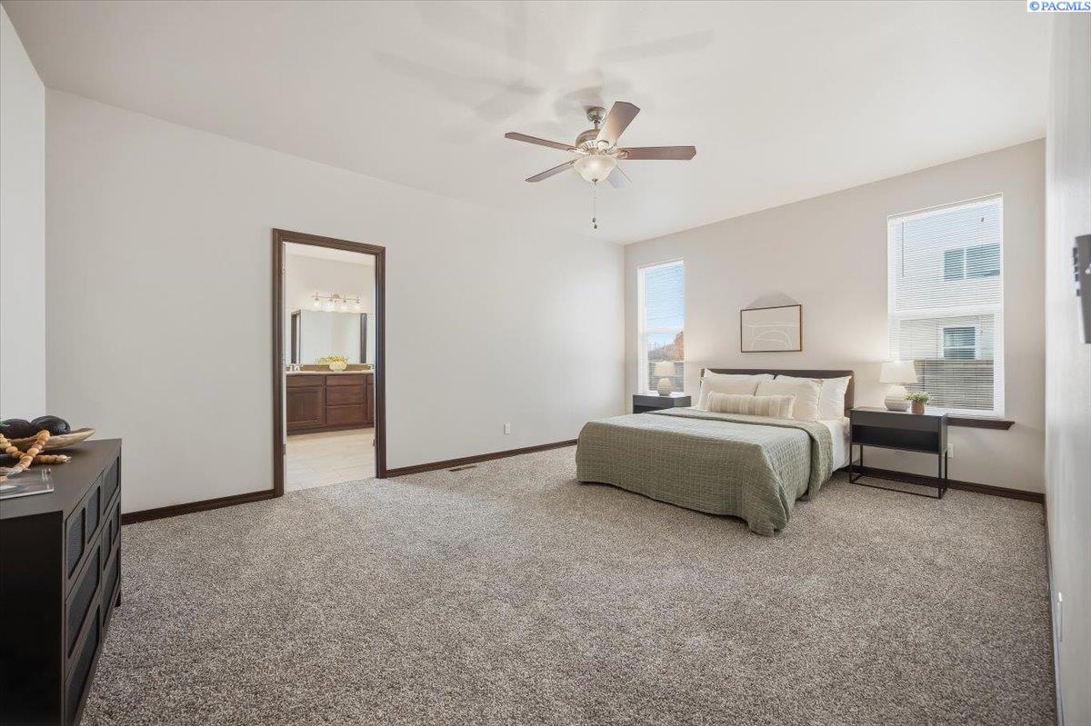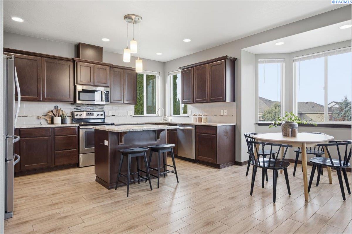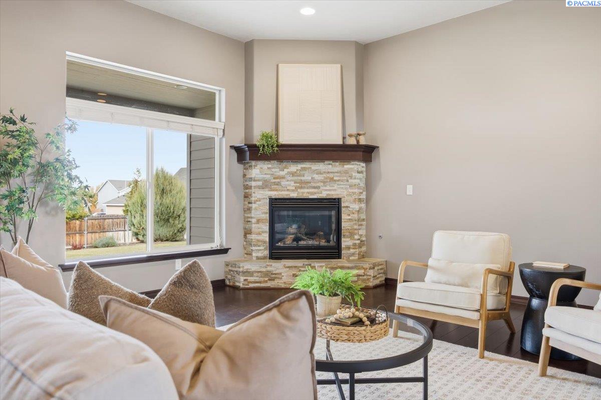 MLS# Welcome to 6370 Cobalt Dr! This charming 4-bedroom, 2-bath home plus a bonus room will not disappoint. It is truly move in ready. The kitchen features beautiful quartz counters, a workstation island, stainless steel appliances (including the fridge), and a sink perfectly placed beneath windows overlooking the backyard. The spacious primary suite boasts dual sinks, a walk-in closet, shower, and a corner soaking tub. Enjoy the roomy yet inviting living room with a cozy corner stone fireplace and brand-new carpet in the downstairs bedrooms. French glass doors open to the den/office or fourth bedroom. The laundry room conveniently has a utility sink, cabinetry, and folding space. Outside, youâll find a generous fully fenced backyard with RV parking, a cute firepit, and garden bedsâperfect for entertaining or relaxing. Located in a beautiful West Richland neighborhood around the corner from awesome amenities like Yokes, a yoga studio, coffee shop and sushi bar!