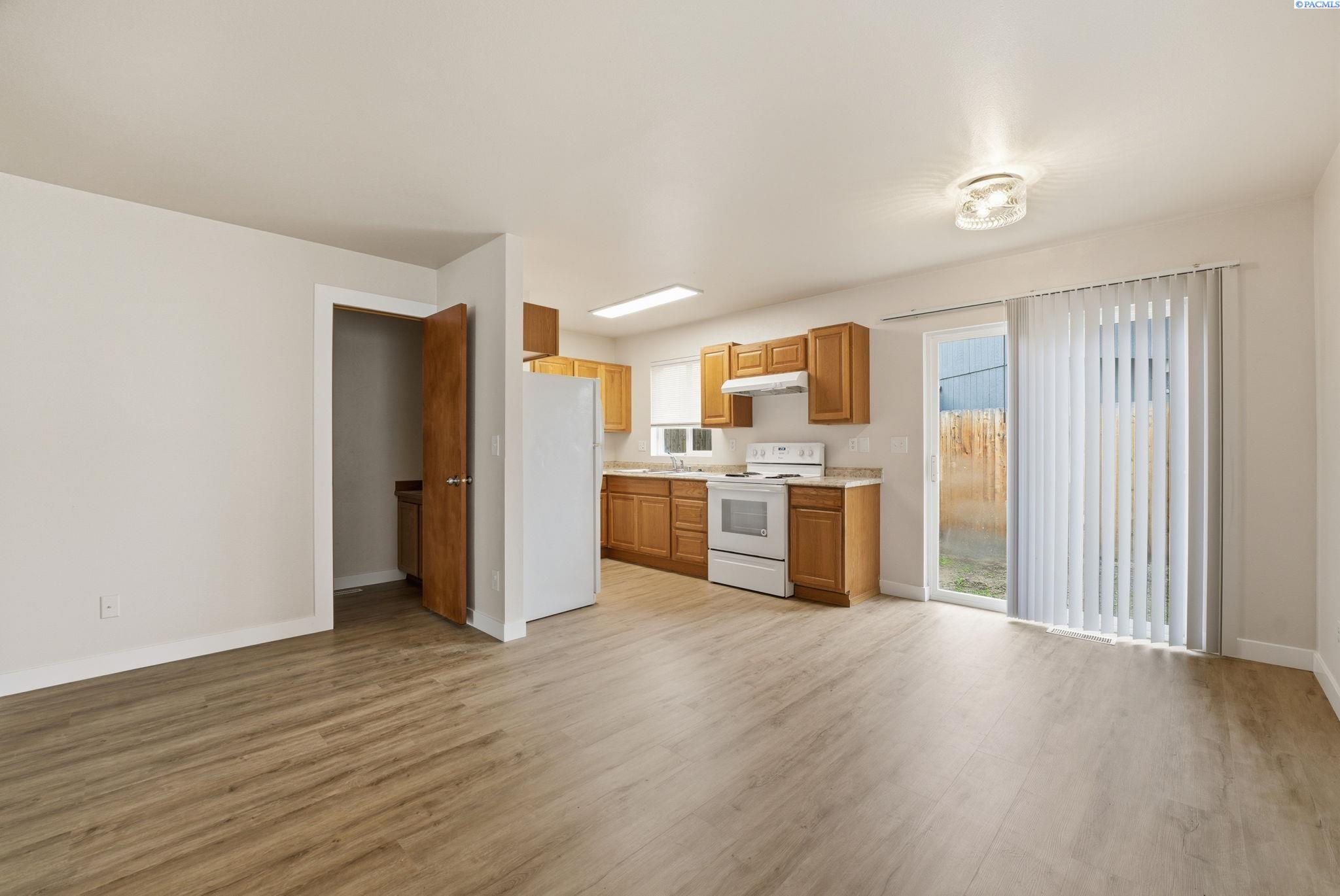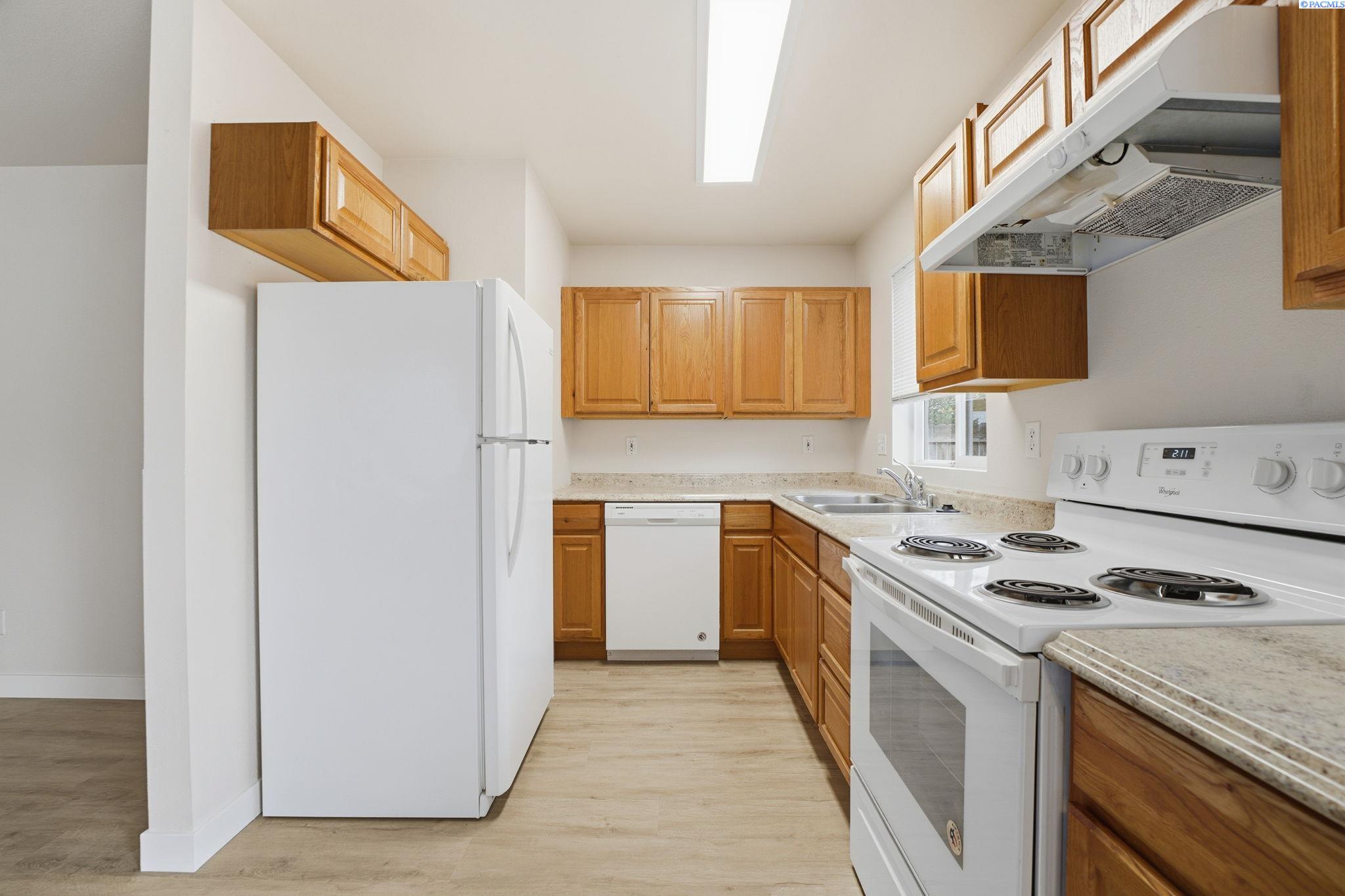 Welcome Home! 3 Bedrooms, 2.5 Bathrooms, 1250 Square Feet and a 1 Car Garage MOVE IN READY and packed with updates. Step into this freshly painted, charming two story Kennewick home featuring brand new luxury plank vinyl flooring, new exterior paint, and a newer roof installed in 2023. The warm and sunlit living room flows smoothly into the spacious kitchen and dining area with a convenient half bath and direct access to your private patio and fully fenced low maintenance yard. Upstairs you will find all three bedrooms, two full bathrooms, and the laundry area. The primary bedroom features a walk in closet and private full bathroom. All bedrooms are well sized with great natural light and large closets giving everyone their own comfortable space. Outside you will enjoy a fully fenced yard perfect for pets or play, plus an attached one car garage and additional side parking. One of the best features is the neighborhood park right across the street which you can see from your front door. The home is also just minutes from multiple schools and the vibrant Kennewick downtown area filled with shops, home cooked meals, and local events. All the big updates are done. Just move in and enjoy. This is the perfect start for a first time homebuyer and there is no HOA. This one will not last. Truly a Must See. Contact Your Favorite Realtor TODAY for a private showing.