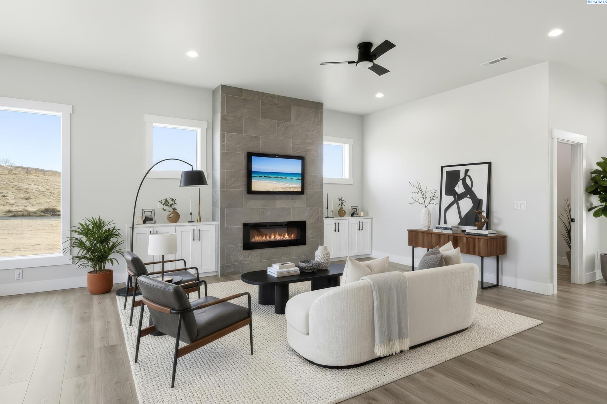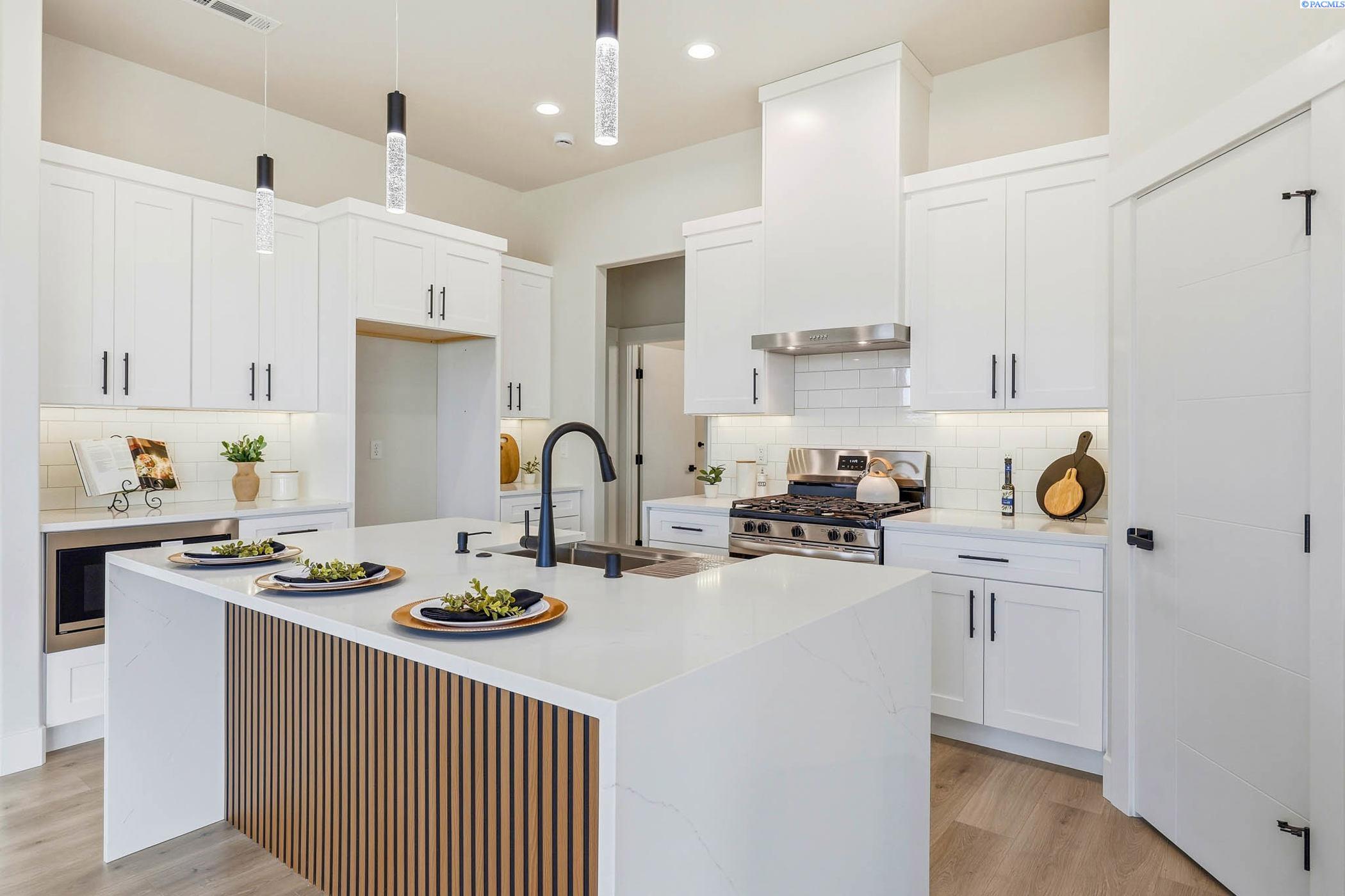 MLS# 288881 Welcome to Koval Homes! Building Homes That Build Communities. This is the builders latest project in South Orchards Phase 1. Very nice one level home with no detail overlooked and hands on craftsmanship. this home features 4 bedrooms including a guest suite with private bath. Ample bedrooms, office, separate laundry & mudroom. Great room living with adjoining dining area and living space with elegant electric fireplace. Nice covered patio and larger yard. Landscape will be complete with complete with timed underground sprinklers (Badger Mountain Irrigation) sod & curbing front & back yard. Garage is a three car garage 34x23 so this home will live large! LPV flooring and tile, Large kitchen waterfall island, cabinets with soft close and a large pantry. Call for your private showing or contact or your Realtor!
