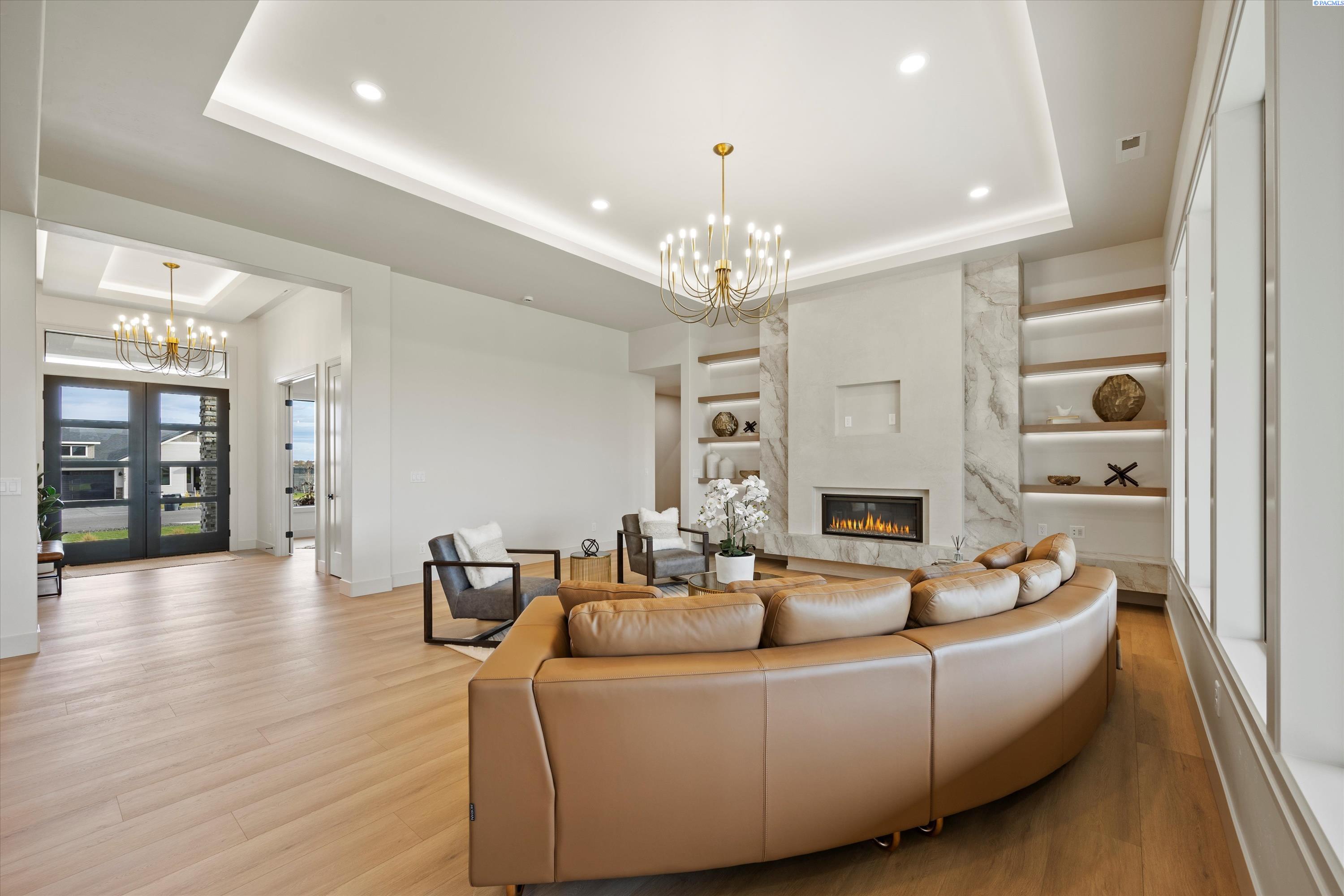 MLS# 288890 Introducing a Masterpiece of Modern Luxury by Signature Homes. Experience unmatched sophistication in this extraordinary 3,028 sq ft estate, perfectly positioned on a fully landscaped 1-acre lot. Thoughtfully designed and meticulously crafted, this 4-bedroom +office, 3.5-bath home sets a new standard for high-end living, blending architectural elegance with elevated comfort. Step inside and youâre met with scale, and refinement. The grand great room features 12-ft LED tray ceilings, a striking Venetian plaster and custom tile fireplace, and massive windows that flood the space with natural light. LED-underlit floating shelves flank the fireplace, creating a dramatic focal point for everyday living and entertaining. The chefâs kitchen is a true centerpiece, showcasing a waterfall-edge quartz island, matching quartz backsplash, top-tier appliances, a 5-ft commercial fridge, and a dedicated wine/coffee bar with wine cooler. Floor-to-ceiling cabinetry and a large pantry with built-ins complete this exceptional space. The luxury continues into the private quarters. The primary suite is a sanctuary with oversized windows, a slider to the covered patio, and its own Venetian-textured fireplace. The breathtaking ensuite features a massive wrap-around walk-through full tile shower, multiple showerheads, LED-backlit niches, a deep freestanding tub, dual sinks, a makeup vanity, and a beautifully designed walk-in closet. Down the hall, an LED-lit Venetian plaster accent wall adds a gallery-like touch. A junior suite with its own full bathroom offers ideal accommodations for guests or multigenerational living. Two additional bedrooms are generously sized and share access to the homeâs elevated finishes. The guest bathroom reflects European inspiration with a floating toilet, custom floating vanity with stone sink, tile wall, and LED-backlit mirror and niche. Outdoor living is equally impressive. The expansive covered patioâaccessible from both the primary suite and main living areaâextends your living space for year-round relaxation and entertaining. The oversized 3-car garage includes an extra-deep, extra-tall bay perfect for large vehicles, storage, or recreational equipment. Every fixture, material, and finish has been hand-selected for style and impact. Built with exceptional craftsmanship and attention to detail, this Signature Homes property is more than a luxury homeâitâs a statement. A rare opportunity to own one of the finest new construction homes