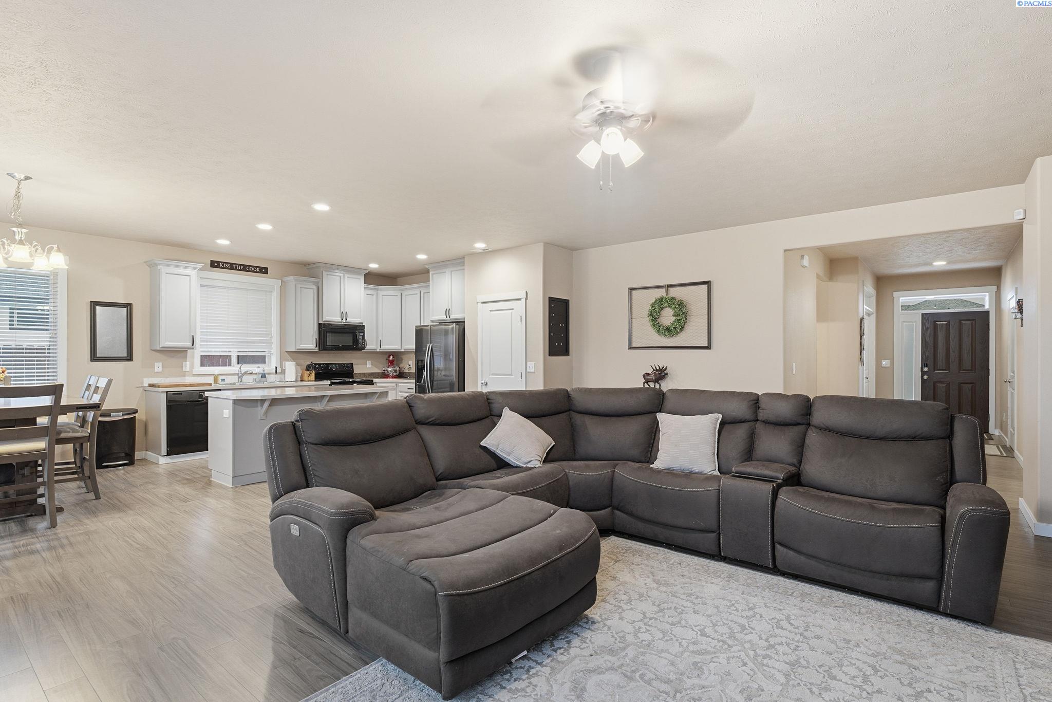 MLS# 288951 Welcome to this exceptional West Pasco property offering comfort, style, and convenience in one perfect package. Step inside to a large living room with a vaulted ceiling, seamlessly flowing into an open kitchen design ideal for entertaining. The home features 3 bedrooms plus a den, providing flexible space for an office, playroom, or guest area.Enjoy a spacious primary suite complete with a custom tile shower and generous closet space. The split-bedroom layout ensures privacy, while the dedicated laundry room adds everyday convenience.This home is thoughtfully upgraded with a tankless water heater, upgraded thermostat, and security system. The garage is climate controlled with a mini-split system and has additional storage areas throughout. Outside, relax on the covered patio or the additional backyard patio area, perfect for gatherings. The fully fenced backyard includes a storage shed, extended driveway, and an RV parking area with a 16-foot swinging gateâa rare find!With the exterior freshly painted within the last 4 years, this home is move-in ready and beautifully maintained. All of this sits in a prime location near a city park, right in the heart of West Pasco!Donât miss this opportunityâhomes like this donât come around often!