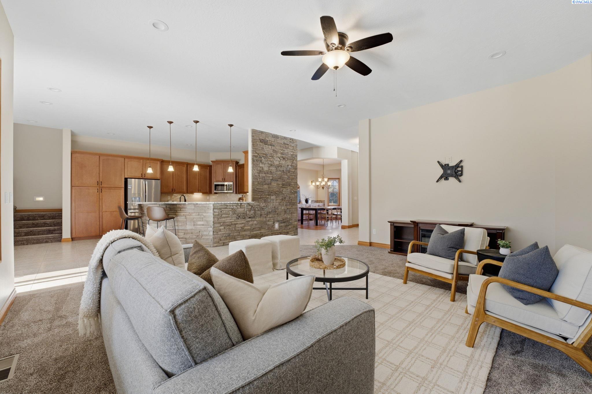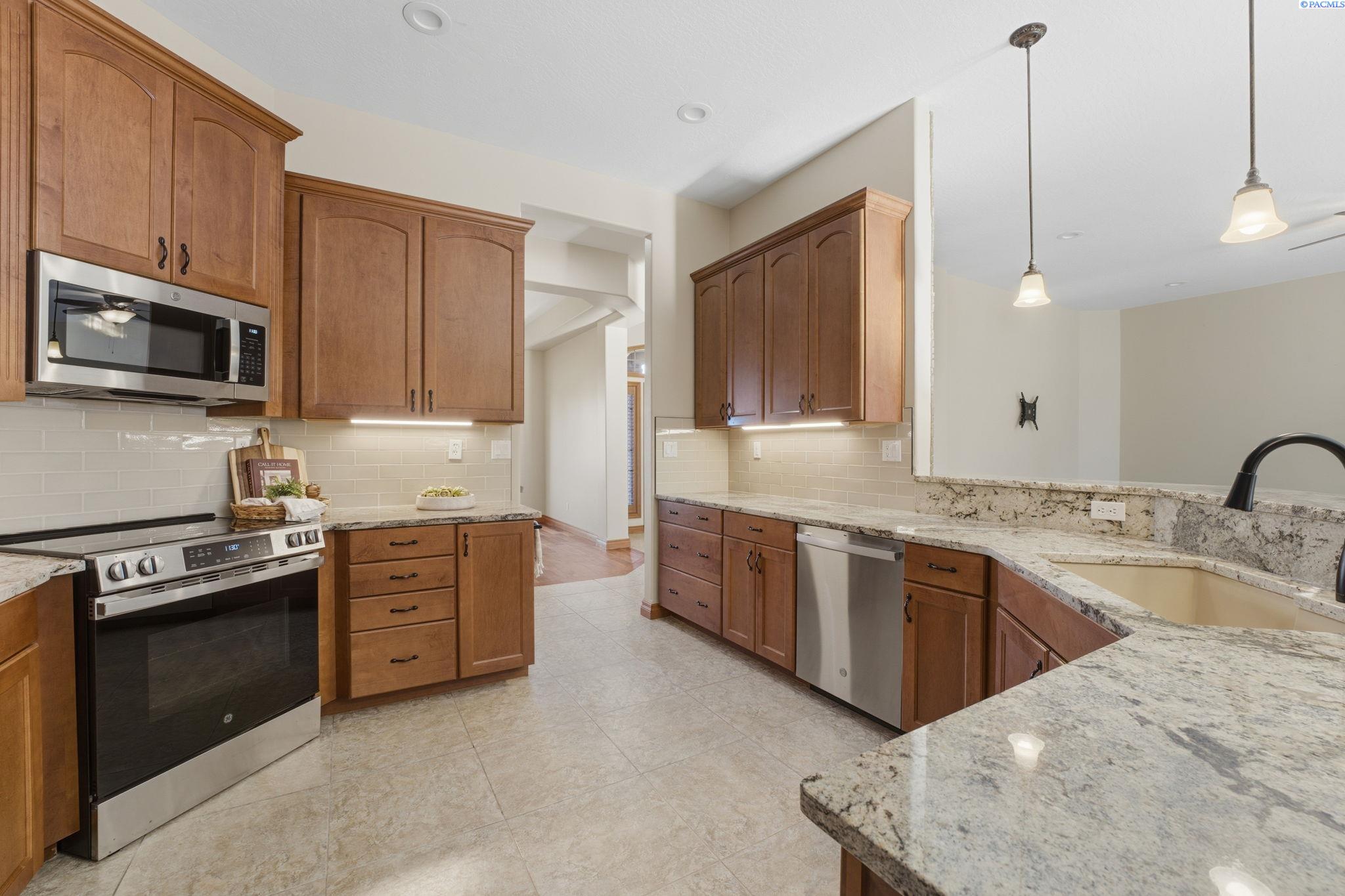 MLS# 288984 Welcome home to 9116 Tuscany Dr, an exquisite single-level residence with bonus space in the highly desired Tuscany Estates of West Pasco. Built in 2009 and offering approximately 3,105 sq ft, this home artfully blends sophisticated style, effortless flow, and outdoor livingâmaking it perfect for both daily comfort and grand entertaining. Spacious and inviting foyer opens up into a generous great room with new carpet throughout home and anchored by large windows and natural light, flowing seamlessly to the chefâs kitchen and eat-in dining area. The kitchen boasts thoughtful details: NEW appliances, soft-close drawers, under-cabinet lighting, a full tile backsplash, cabinet pull-outs, built-in desk, and a breakfast bar for casual dining with new granite counter tops throughout kitchen and dining room. The main-level primary suite is a true retreatâfeaturing abundant counter space, a walk-in closet (complete with built-in ironing board), and a spa-inspired bath. Two secondary bedrooms on the main level share a Jack-and-Jill full bath with dual vanities and separate tub/shower/toilet areasâideal for families or guests. A versatile bonus room is located upstairsâthink home theatre, guest suite, playroom or workout spaceâcomplete with its own HVAC zone for privacy and comfort. The oversized three-car garage is finished with epoxy floors, built-in storage, and a convenient half-bathâperfect for hobbyists, car enthusiasts or extra space to spread out. Positioned on nearly a half-acre (~0.47 ac) corner lot in a premium West Pasco neighborhood. The backyard is a private oasis with mature landscapin and a large covered patio wired for TV/surround sound with hot & cold water hook-upsâideal for outdoor gatherings or relaxing evenings. Double-gate access behind the fence allows room for additional parking, a boat, trailer or RV. All while being conveniently located to all that Tri-Cities has to offer! Call for a showing today.