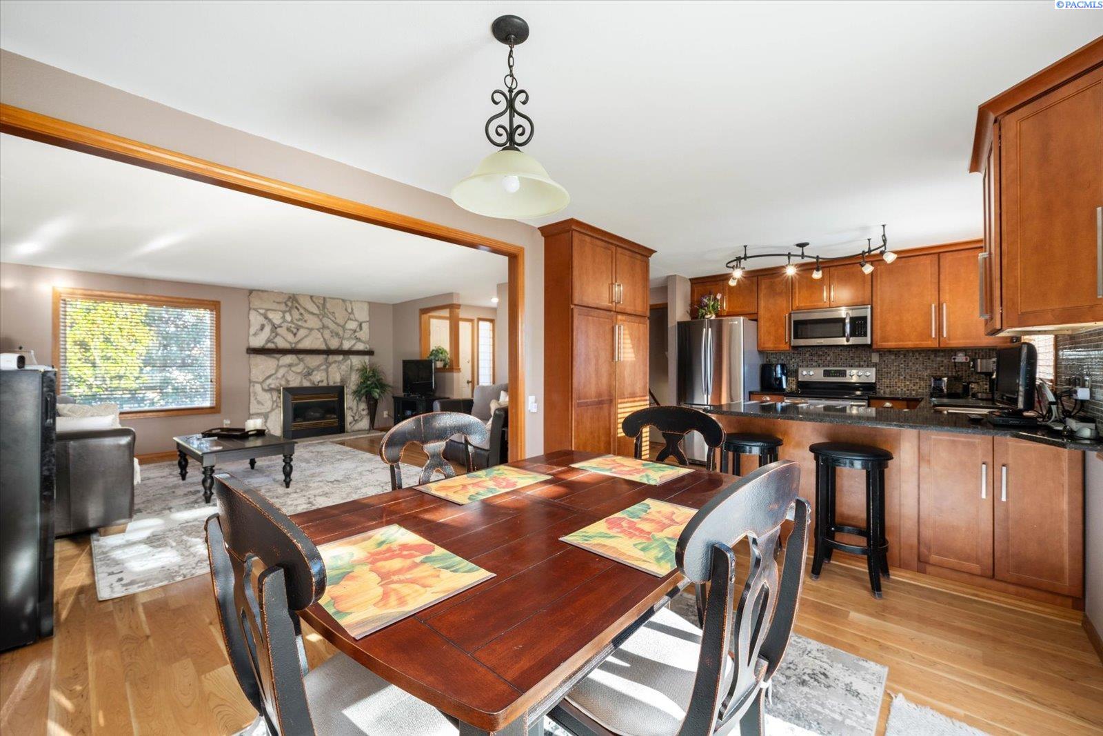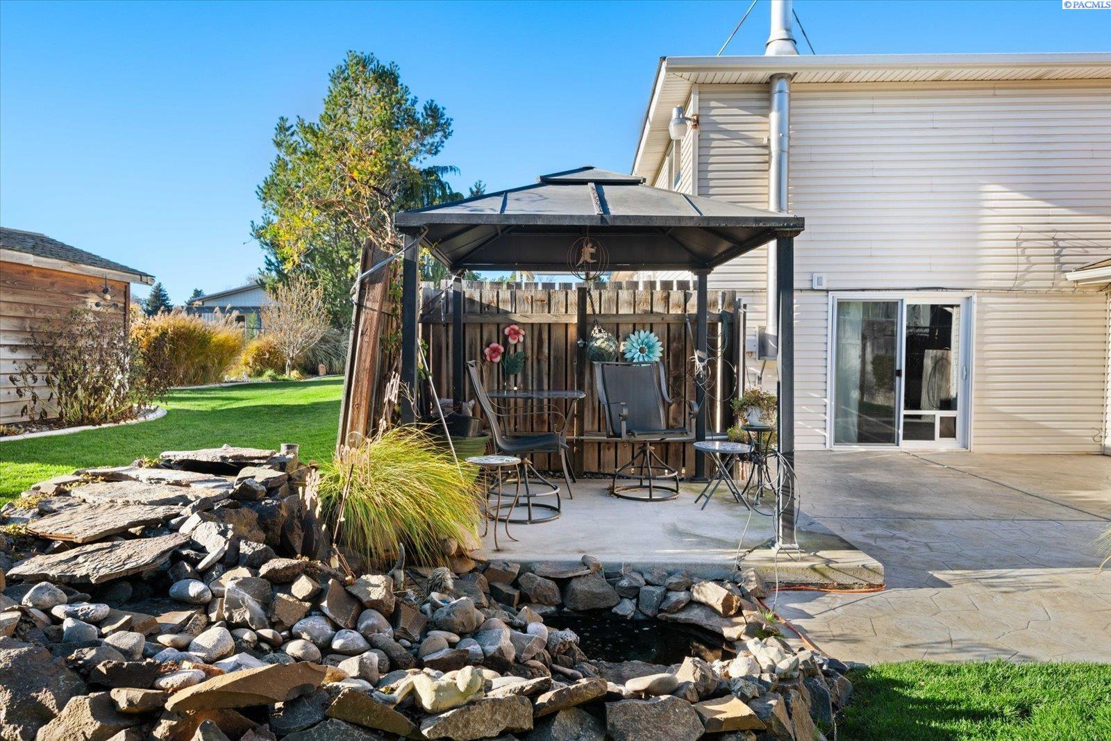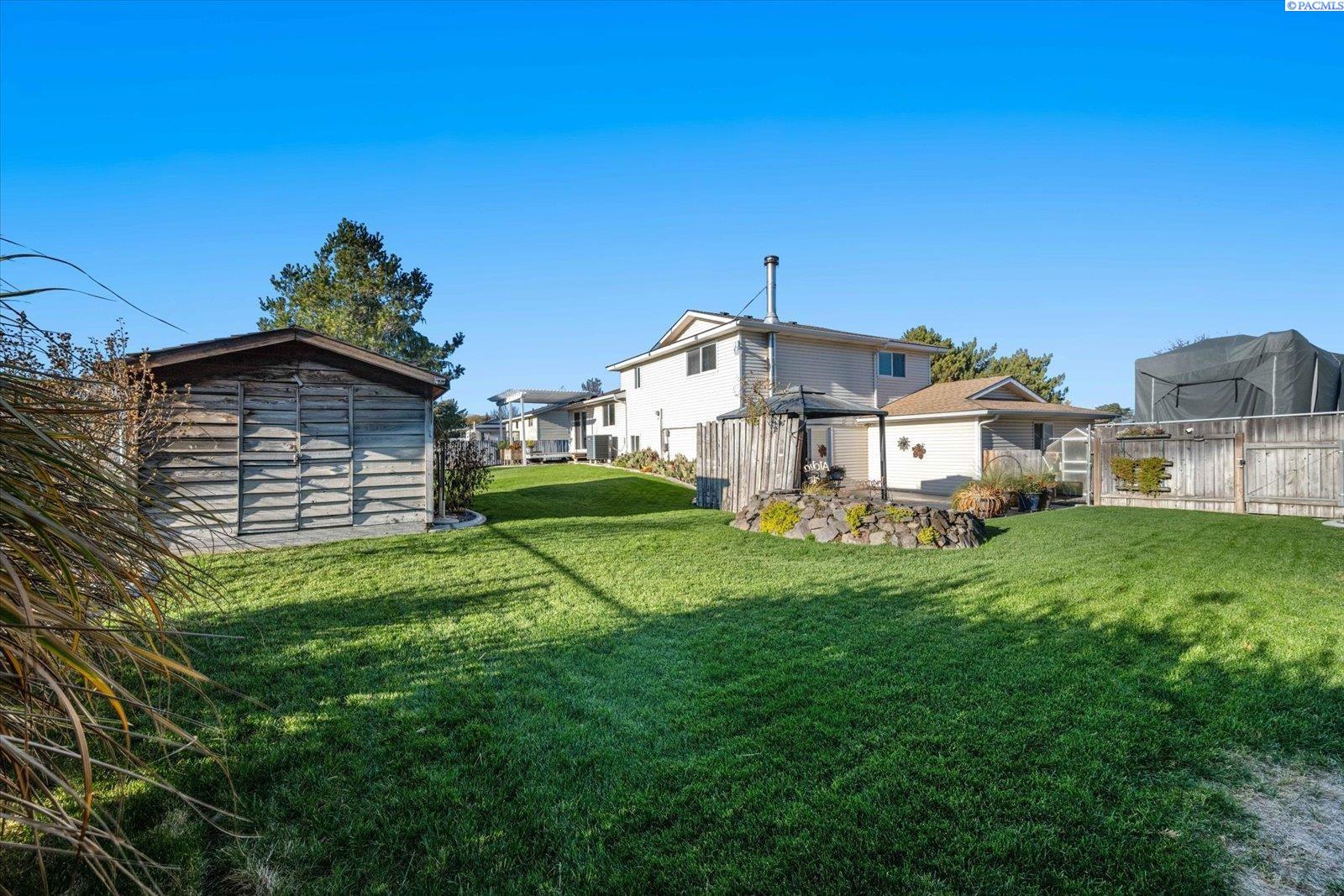 MLS# 289011 Nestled in a beautiful Kennewick neighborhood with a peaceful ambiance, this home presents an excellent opportunity for first time home buyers or investors looking for rental property. This spacious home design offers almost 2000 sq ft of living space, featuring 4 BR and 2 and 1/2 BA This home has had numerous upgrades over the years to enhance the appeal including new kitchen and Bathrooms. The roof was replaced in 2023, new hot water tank in 2021. New heat pump and furnace in 2017, Warranty expires in 2027. As you step inside you'll be welcomed by a warm living space, a cozy gas fireplace and large window bringing in so much light. Kitchen is well-appointed with a breakfast bar, granite counter tops and tile backsplash, new wood cabinets and wood floors with adjacent dining area. There is a slider leading to the back patio which has a nice view. Downstairs features a spacious living area with another slider leading to the lower concrete stamped patio. This patio features a small pond and beautiful waterfall feature. Exterior of the home has a fully fenced backyard and is accented with mature plants and trees including a Rose of Sharon, Hardy Hibiscus, pine, magnolia and bunch grasses. There's a greenhouse, a shed, dog run and RV Parking. You will be impressed with the seller's attention to detail making the backyard a place to enjoy entertaining or just relaxing in the serenity of your quiet location. Call your favorite Realtor today!!