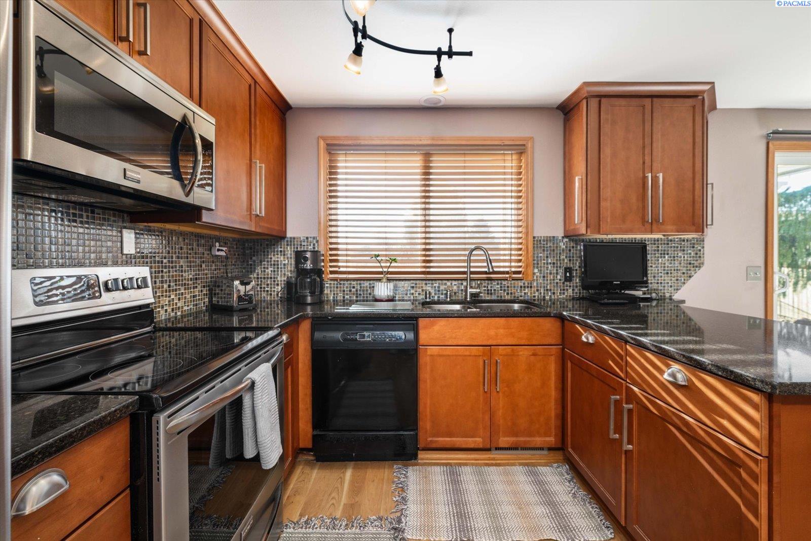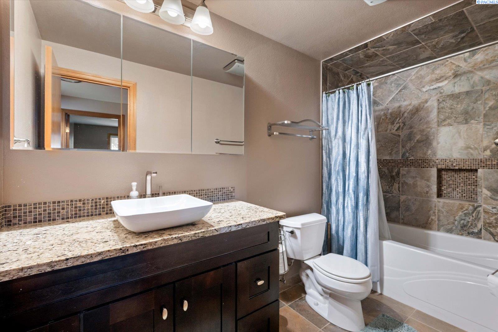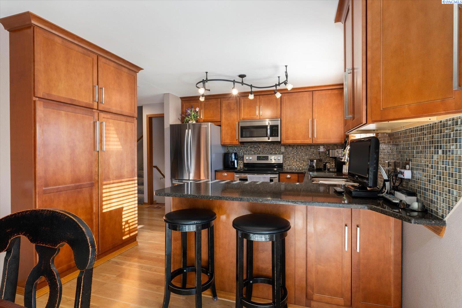 MLS# 289011 Nestled in a beautiful Kennewick neighborhood with a peaceful ambiance, this home presents an excellent opportunity for first time home buyers or investors looking for rental property. This spacious home design offers almost 2000 sq ft of living space, featuring 4 BR and 2 and 1/2 BA This home has had numerous upgrades over the years to enhance the appeal including new kitchen and Bathrooms. The roof was replaced in 2023, new hot water tank in 2021. New heat pump and furnace in 2017, Warranty expires in 2027. As you step inside you'll be welcomed by a warm living space, a cozy gas fireplace and large window bringing in so much light. Kitchen is well-appointed with a breakfast bar, granite counter tops and tile backsplash, new wood cabinets and wood floors with adjacent dining area. There is a slider leading to the back patio which has a nice view. Downstairs features a spacious living area with another slider leading to the lower concrete stamped patio. This patio features a small pond and beautiful waterfall feature. Exterior of the home has a fully fenced backyard and is accented with mature plants and trees including a Rose of Sharon, Hardy Hibiscus, pine, magnolia and bunch grasses. There's a greenhouse, a shed, dog run and RV Parking. You will be impressed with the seller's attention to detail making the backyard a place to enjoy entertaining or just relaxing in the serenity of your quiet location. Call your favorite Realtor today!!
