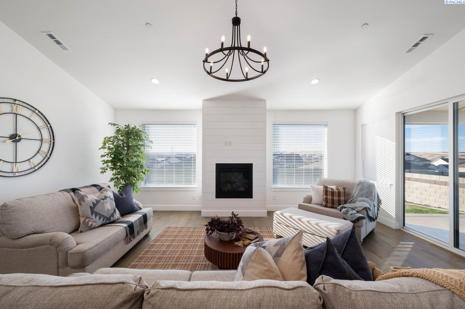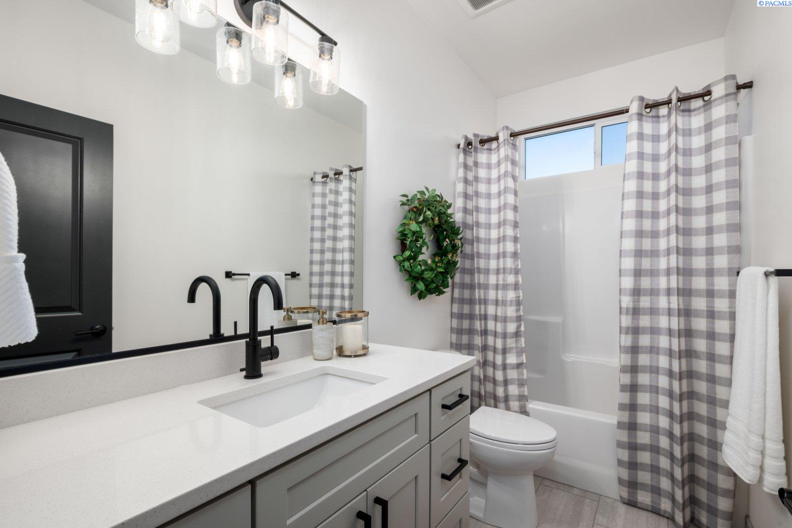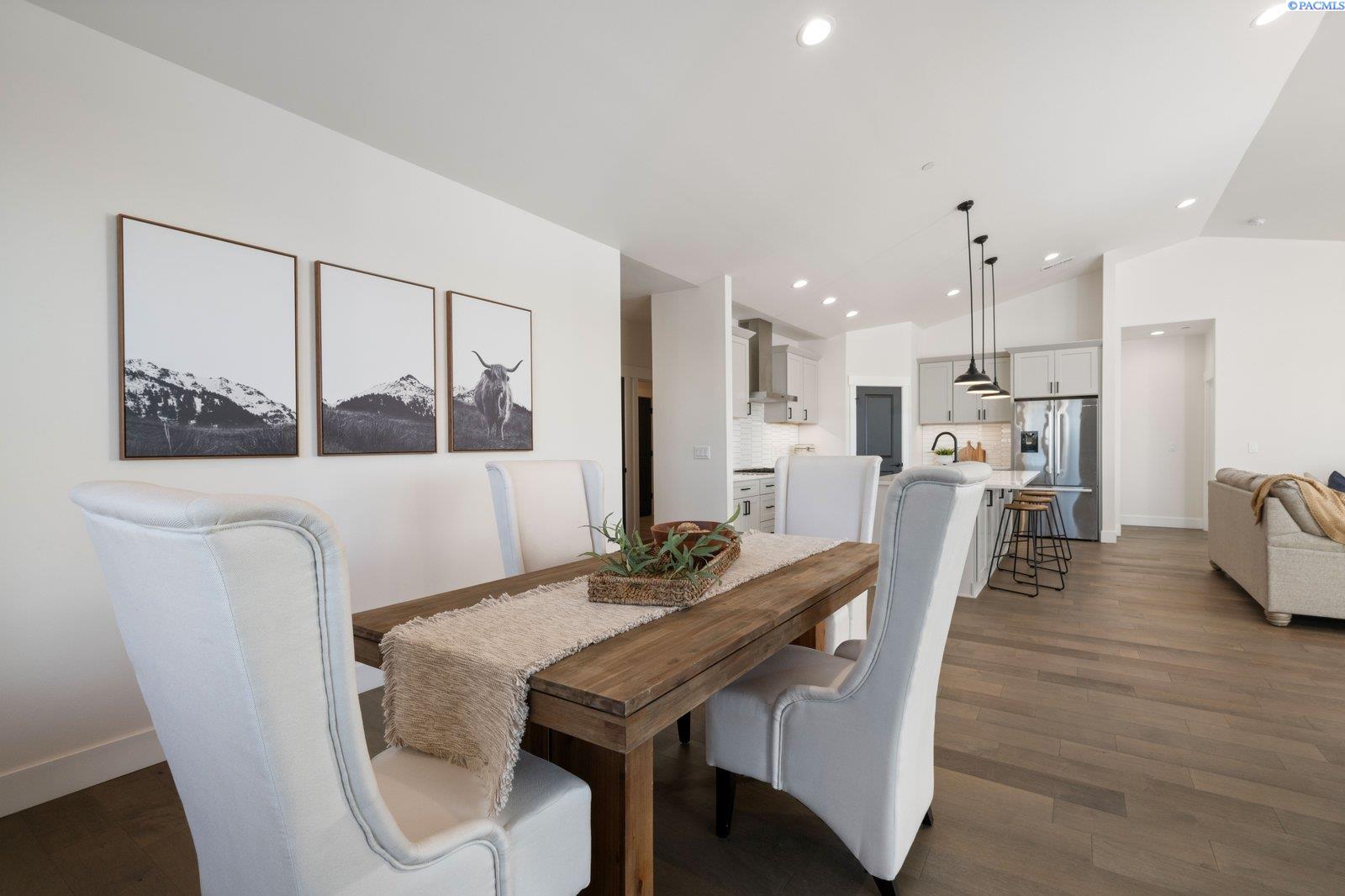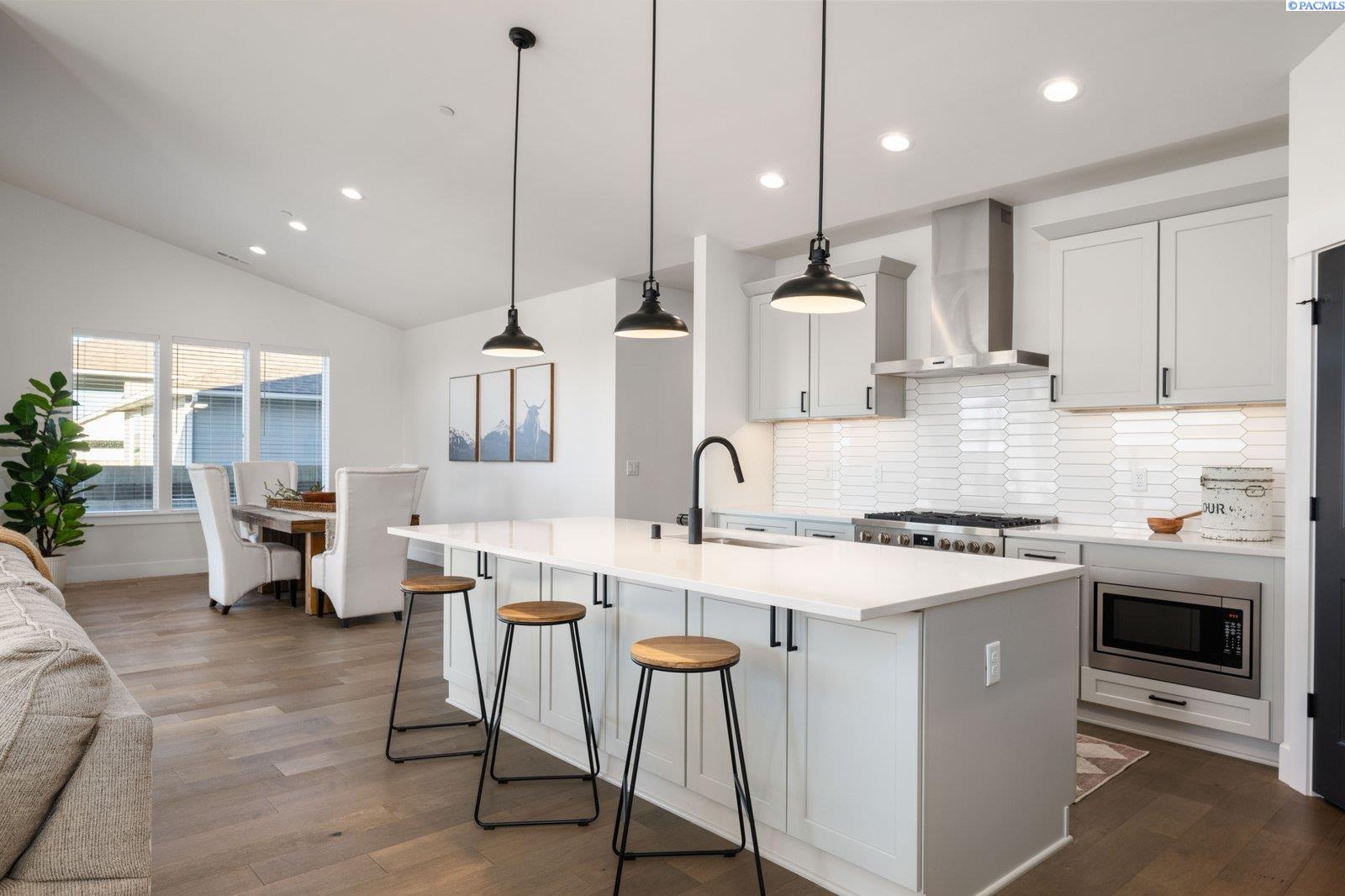MLS# 289126 Extraordinary 1-story home with a huge bonus room and full in-law suite with private entrance! Welcome to Goose Ridge Estates, Richlandâs newest premier neighborhood, where this stunning 3,272 sq ft residence (plus an additional 685 sq ft garage) offers exceptional design, unmatched versatility, and gorgeous natural light throughout. This thoughtfully crafted floorplan includes 4 spacious bedrooms, a large den with glass doors, 3 bathrooms, a formal dining room, a massive bonus room, and fully separate living quartersâperfect for multi-generational living, long-term guests, or a rental opportunity. Beautiful interior selections elevate every space, including vaulted ceilings, custom blinds, hardwood flooring in all main living areas, and plush Mohawk carpet in the bedrooms. The gourmet kitchen features an oversized island, quartz countertops, soft-close cabinetry, designer lighting, floating shelves, a stainless Elica hood, full-height tile backsplash, top-tier appliances, and a walk-in pantry with additional island storage. The great room is bright and welcoming with oversized windows and a gas fireplace with shiplap surround. Double doors lead to a luxurious primary suite filled with natural light. The spa-inspired bathroom offers a free-standing soaking tub next to a floor-to-ceiling tiled walk-in shower, dual vanities with quartz surfaces, soft-close cabinetry, and elegant finishes throughout. Additional design and construction upgrades include tile flooring, window aprons and sills, 3.5" door casings with headers, and a full fire-suppression system. The home is Energy Star certified, pre-wired for solar, and equipped with a hybrid hot water heater and a 95% efficiency furnace with 2-ton A/C. The gigantic bonus room offers endless possibilities and includes its own mini-kitchen with quartz counters, undermount sink, and microwaveâperfect for game nights, a home theater, or extended stays. The fully independent in-law suite features its own private entrance, stainless kitchen appliances, quartz countertops, wood flooring, stackable laundry, a comfortable bedroom, and a private bathroom, ideal for parents, guests, or potential rental income. The exterior features board and batten siding, black exterior windows, a designer front door, and a finished, insulated garage with keyless entry. The yard is fully landscaped and enclosed with masonry fencing. Enjoy peaceful patio views, quick access to the Country Mercantile and freeway, and award-winni