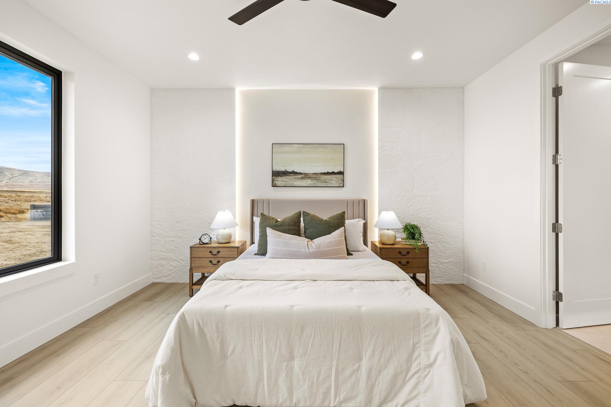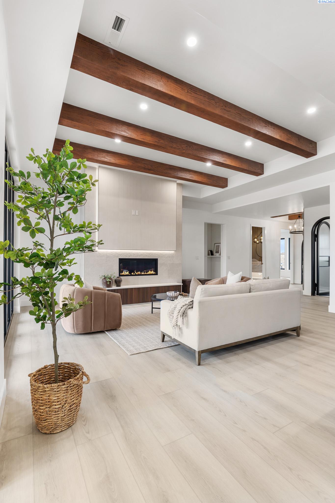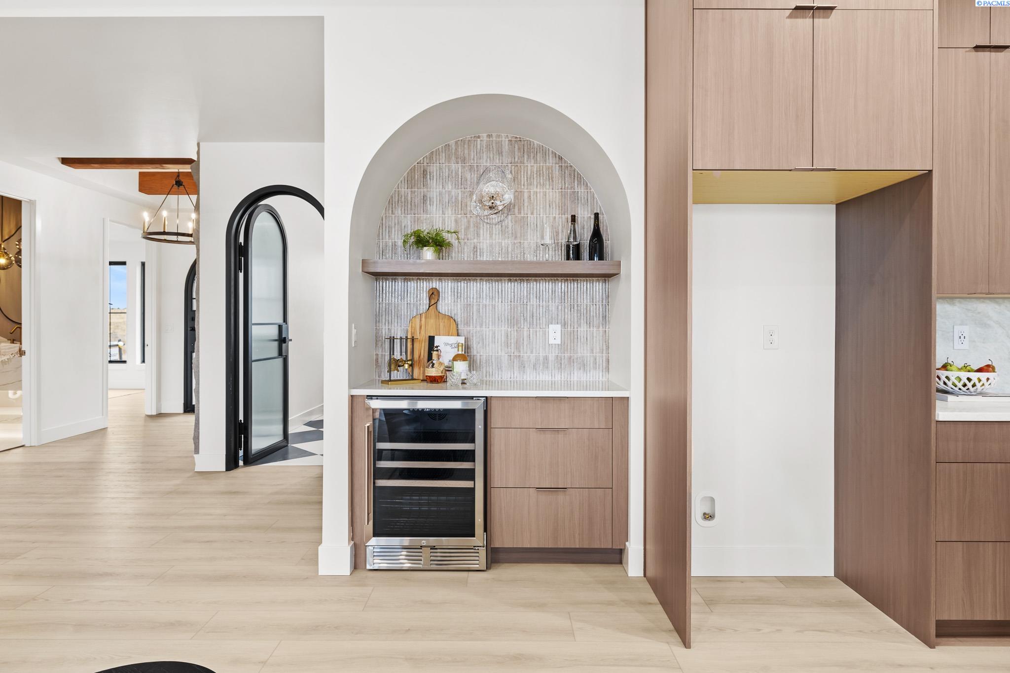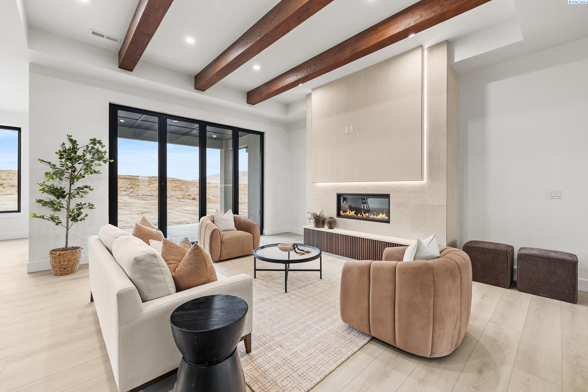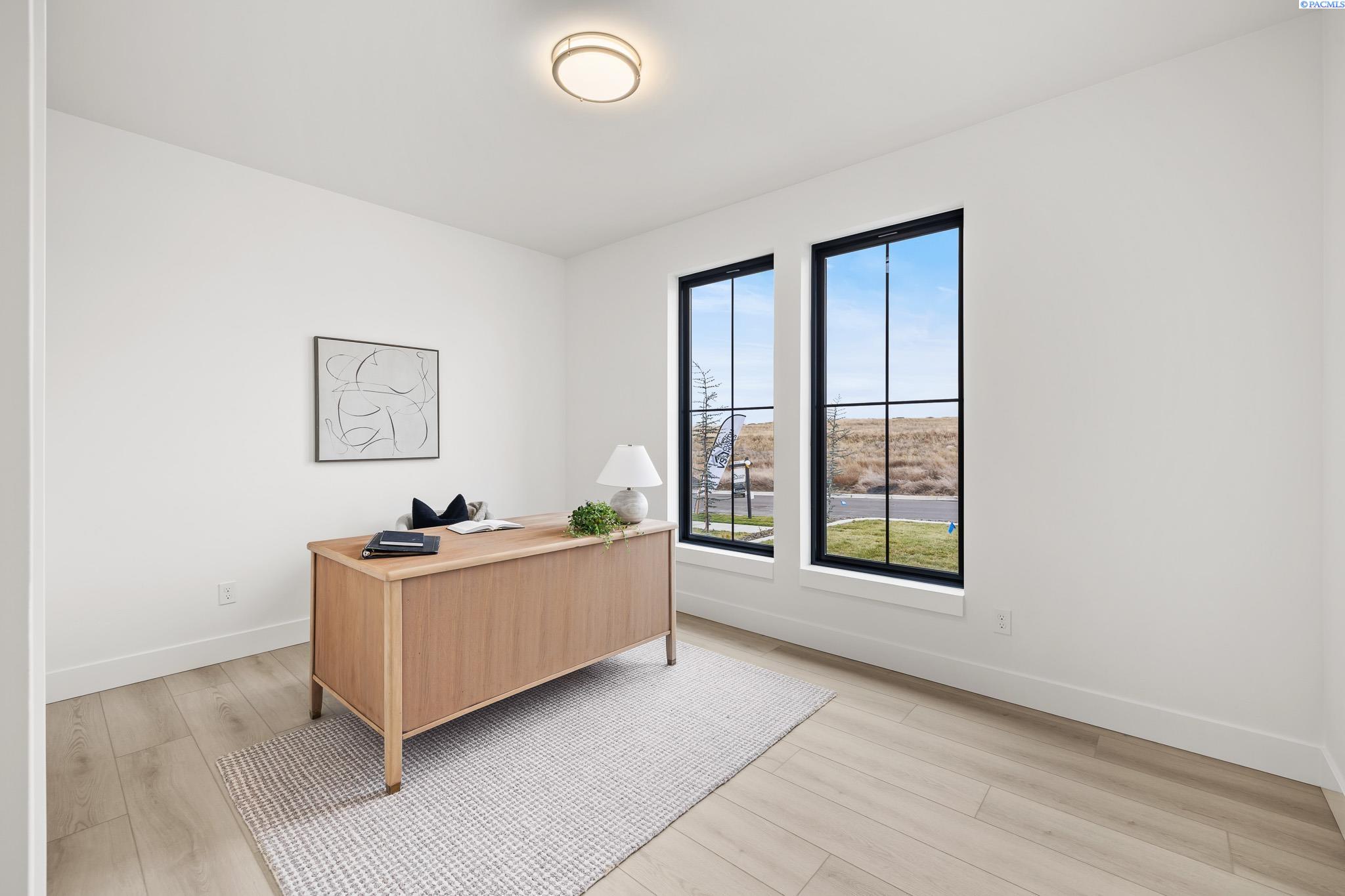 MLS# 289188 Designed with a modern organic style, this beautifully crafted 3-bedroom home with a dedicated office sits on a spacious 1/3-acre lot and offers just under 2,500 sq. ft. of thoughtfully designed living space. The office includes a large closet and can serve as a 4th bedroom, providing excellent flexibility. The home features 2.5 bathrooms, including a full en suite in the primary suite, a shared full bath for the guest bedrooms, and a half bath near the entry. Interior details include arched hallways and doors, rock accent walls, layered LED lighting, and black Andersen window frames. The living room offers exposed ceiling beams and black-framed accordion doors that connect the indoor and outdoor spaces. The kitchen includes modern soft-close cabinetry, a coffee bar with a wine fridge, tile backsplash, and an expansive chefâs pantry with built-in cabinetry, shelving, and countertop workspace. The laundry room provides additional built-in storage and a utility sink. The primary suite includes a fully tiled walk-in shower, freestanding soaking tub, and floor-to-ceiling tile. The guest bath also features full tile and upgraded finishes. The primary closet is equipped with custom shelving and built-ins. Additional features include clear-glass garage doors, a âCostco-styleâ pantry door for easy grocery access from the garage, exposed beams, designer accent walls, upgraded fixtures, and warm LED lighting throughout. This home showcases intentional design and quality craftsmanship throughout.