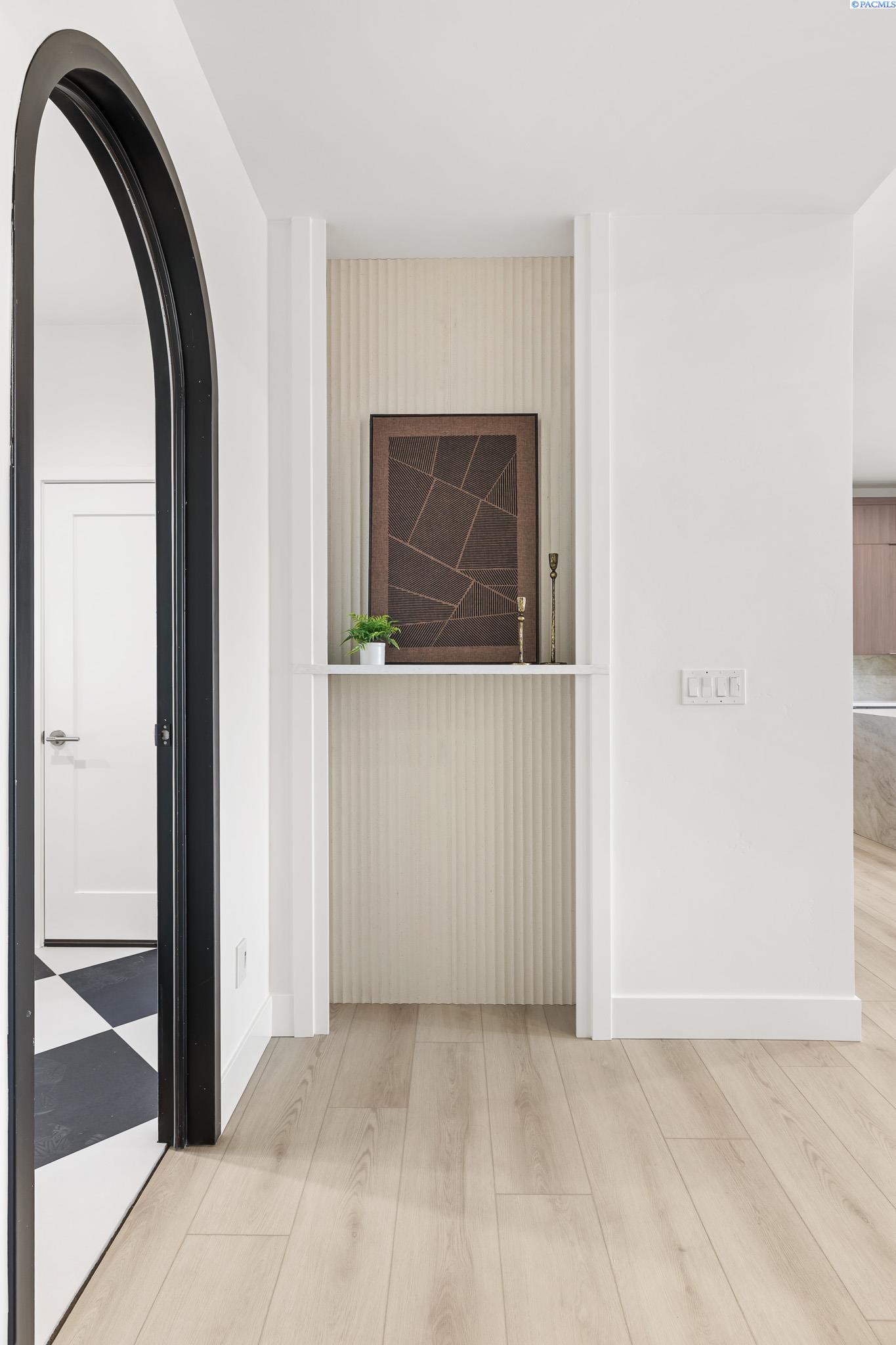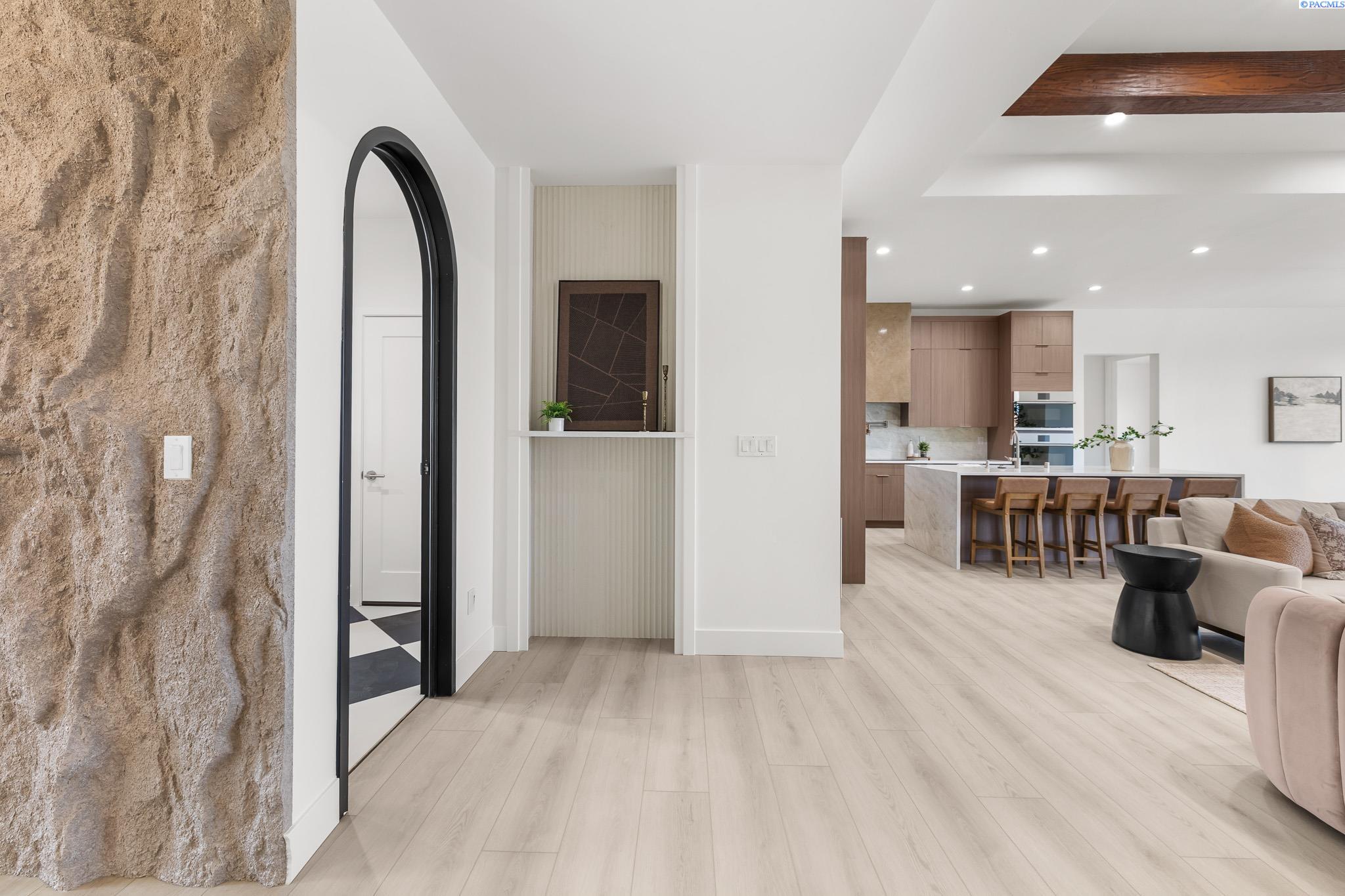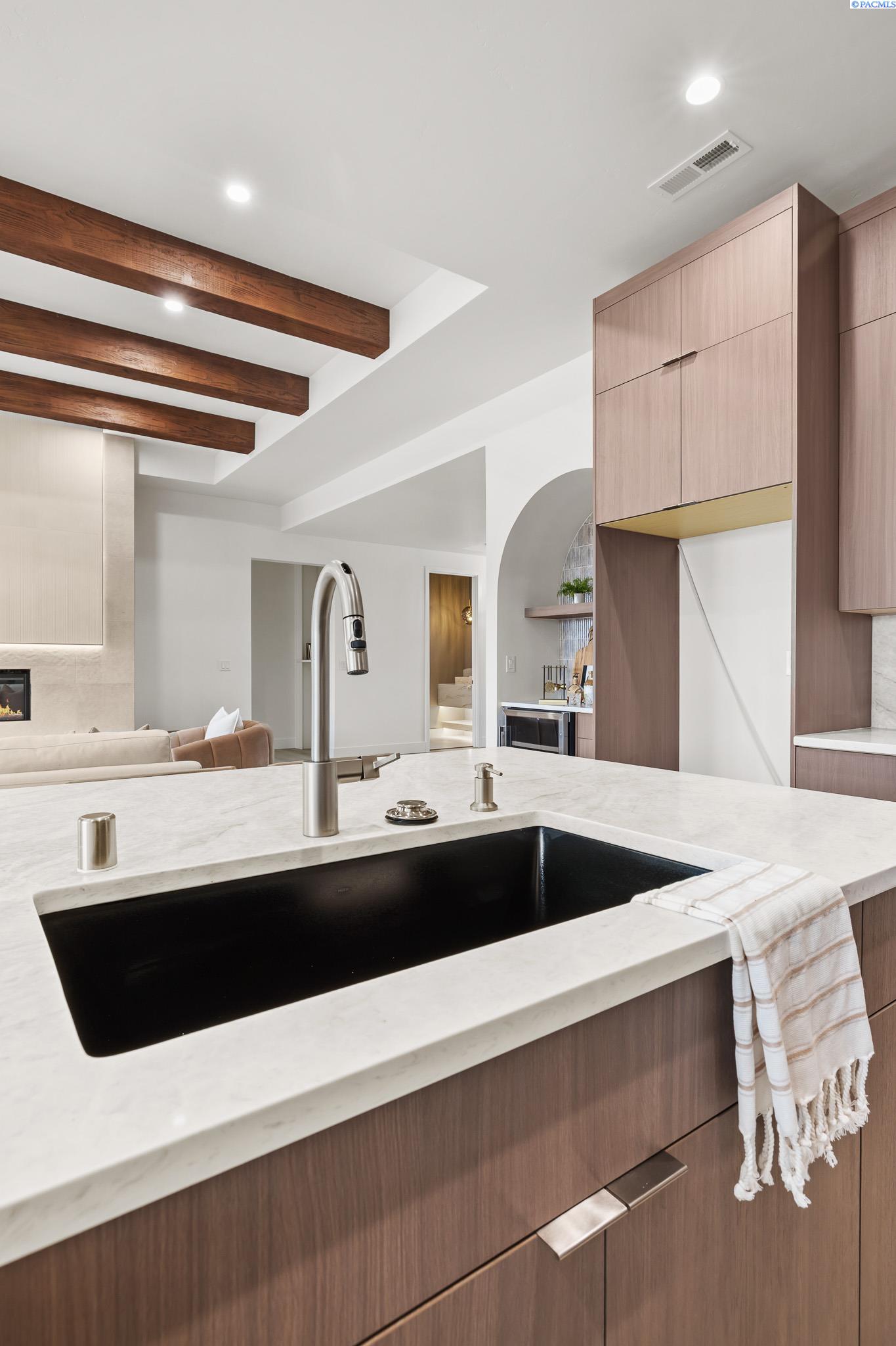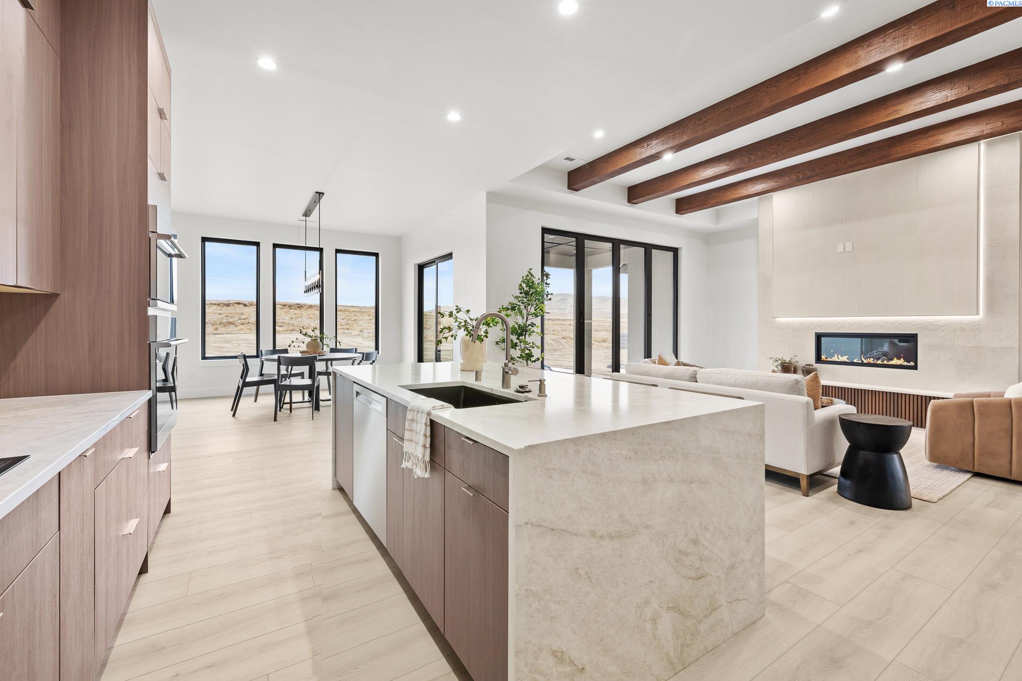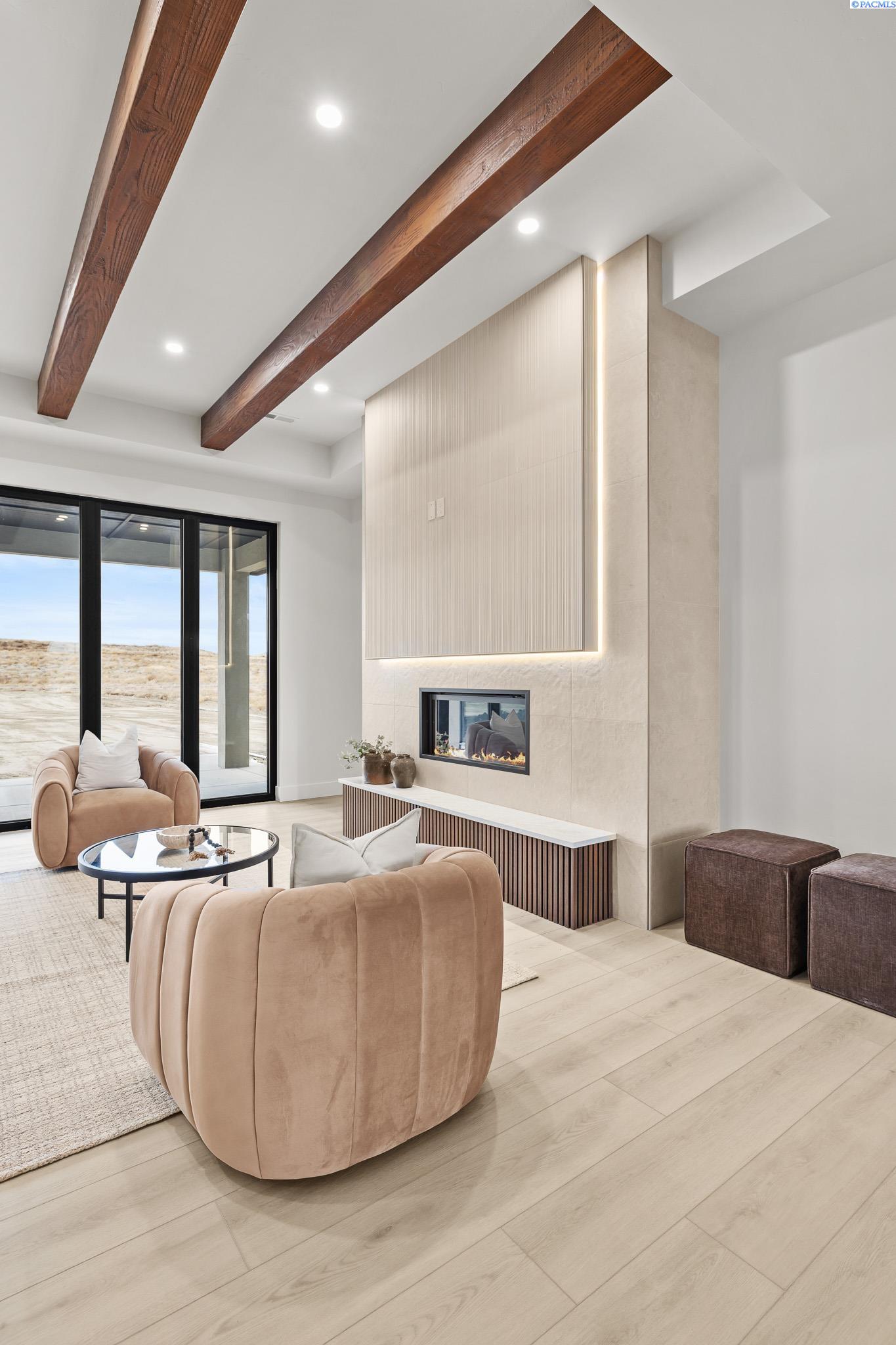 MLS# 289188 Designed with a modern organic style, this beautifully crafted 3-bedroom home with a dedicated office sits on a spacious 1/3-acre lot and offers just under 2,500 sq. ft. of thoughtfully designed living space. The office includes a large closet and can serve as a 4th bedroom, providing excellent flexibility. The home features 2.5 bathrooms, including a full en suite in the primary suite, a shared full bath for the guest bedrooms, and a half bath near the entry. Interior details include arched hallways and doors, rock accent walls, layered LED lighting, and black Andersen window frames. The living room offers exposed ceiling beams and black-framed accordion doors that connect the indoor and outdoor spaces. The kitchen includes modern soft-close cabinetry, a coffee bar with a wine fridge, tile backsplash, and an expansive chefâs pantry with built-in cabinetry, shelving, and countertop workspace. The laundry room provides additional built-in storage and a utility sink. The primary suite includes a fully tiled walk-in shower, freestanding soaking tub, and floor-to-ceiling tile. The guest bath also features full tile and upgraded finishes. The primary closet is equipped with custom shelving and built-ins. Additional features include clear-glass garage doors, a âCostco-styleâ pantry door for easy grocery access from the garage, exposed beams, designer accent walls, upgraded fixtures, and warm LED lighting throughout. This home showcases intentional design and quality craftsmanship throughout.