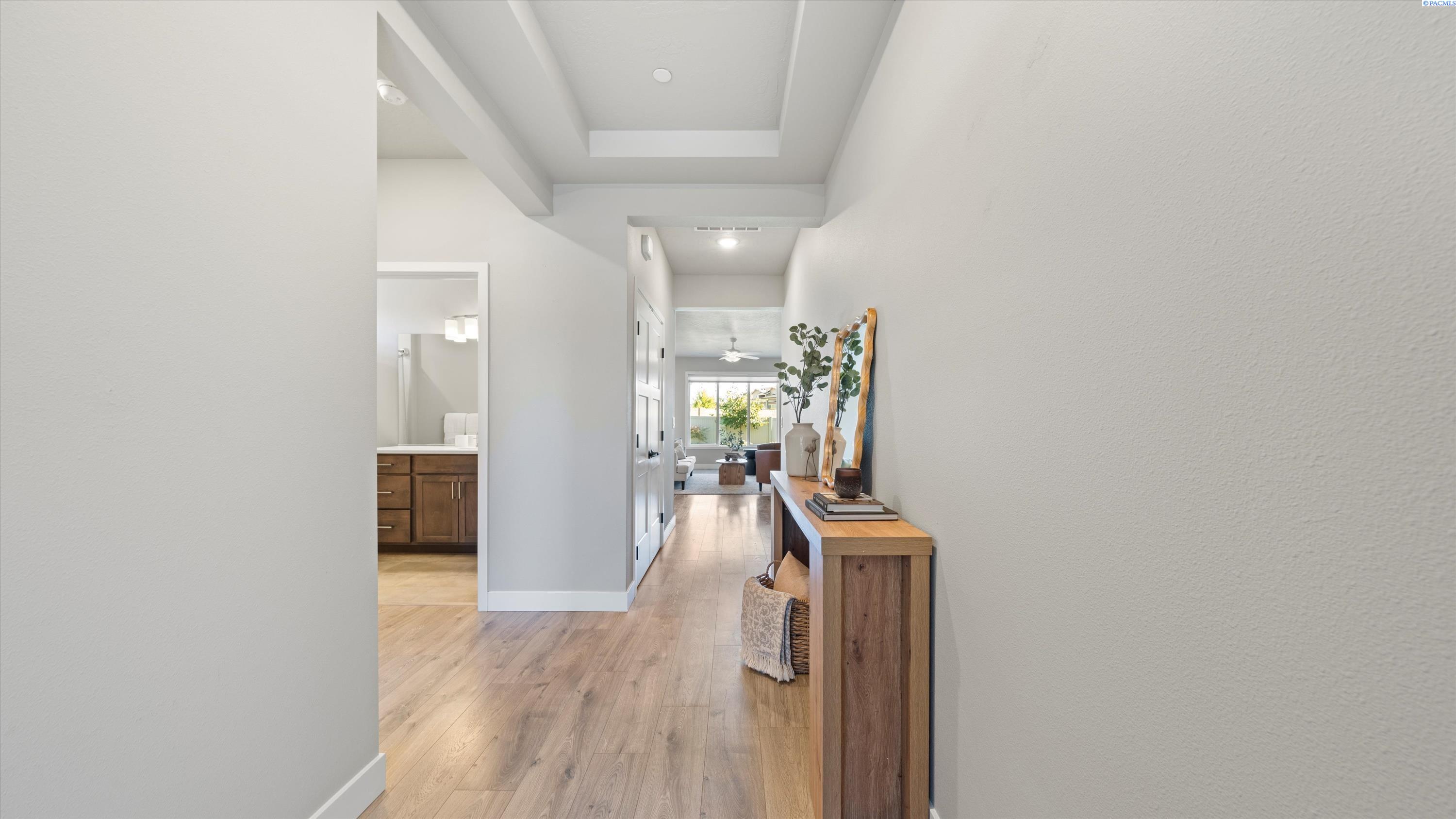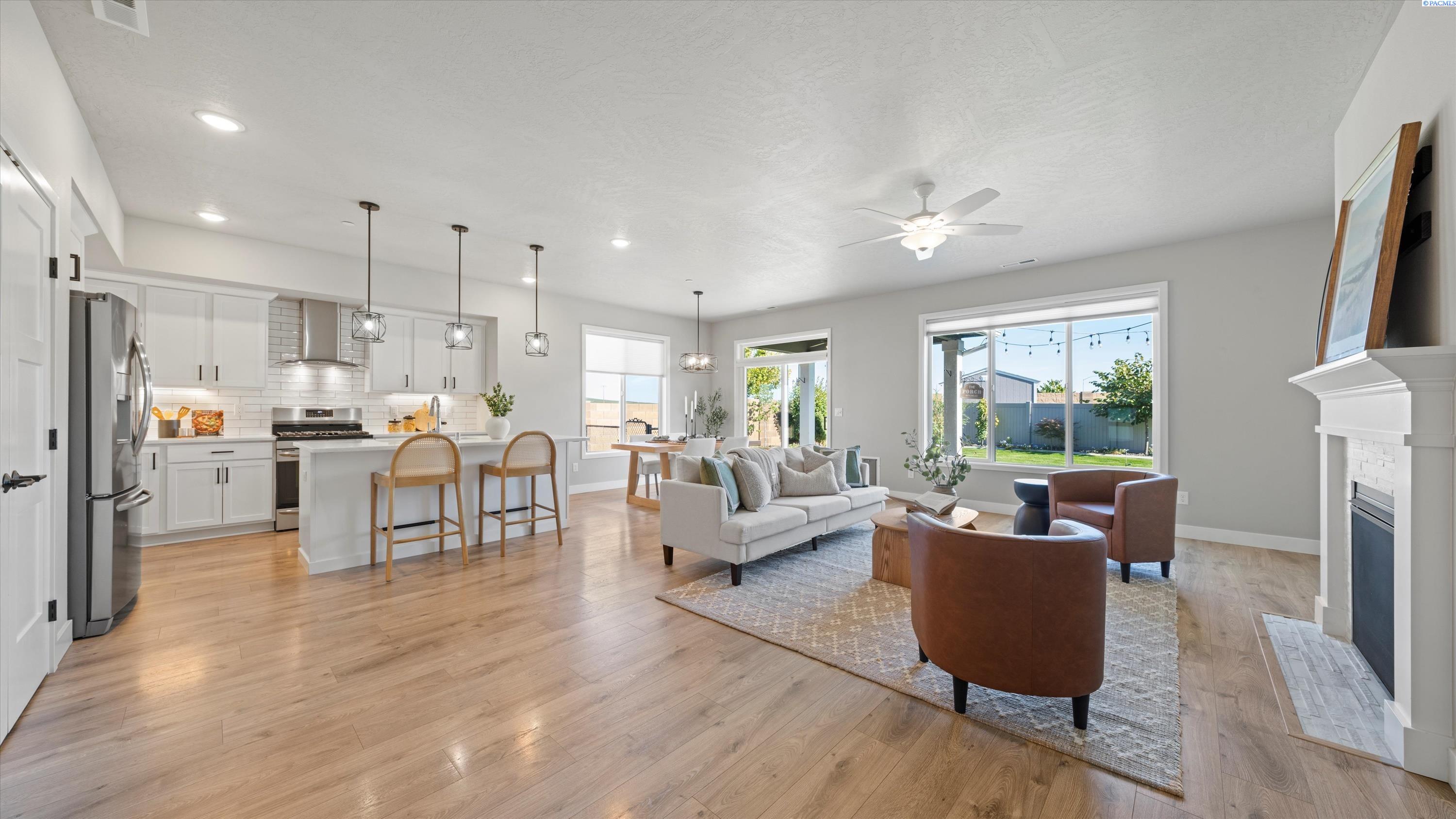 Welcome Home! This beautifully maintained, Tanninen-built 3-bedroom, 2-bath, 1687 sq ft home perfectly blends modern design with everyday comfort. Inside, youâll find quartz countertops, Huntwood cabinetry, LVP and tile flooring, and a cozy gas fireplace with tile surround and wood mantle. The primary suite offers a walk-in tile shower and a spacious closet, while the laundry room is thoughtfully designed with a folding counter and built-in space for baskets. A custom Murphy bed adds versatility to one of the bedroomsâideal for guests, hobbies, or a home office. Step outside to your budding oasis featuring a covered patio with extended concrete, vibrant Japanese maples, redbuds, and willows. The gated side yard offers a flex space or dog runâfenced, graveled, and perfectly placed for relaxing in the evening shade. Enjoy your evenings under the covered patio with gas BBQ hookup and LED lighting, or take advantage of the unbeatable locationâjust moments from the Country Mercantile, scenic walking paths, highway access, and nearby wineries with sweeping wine country views!