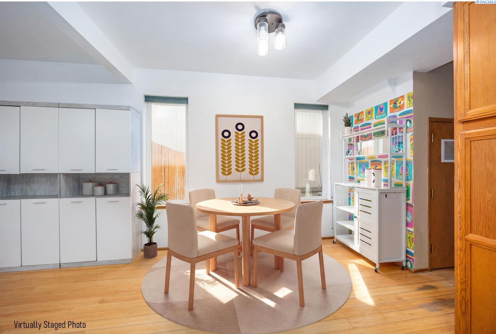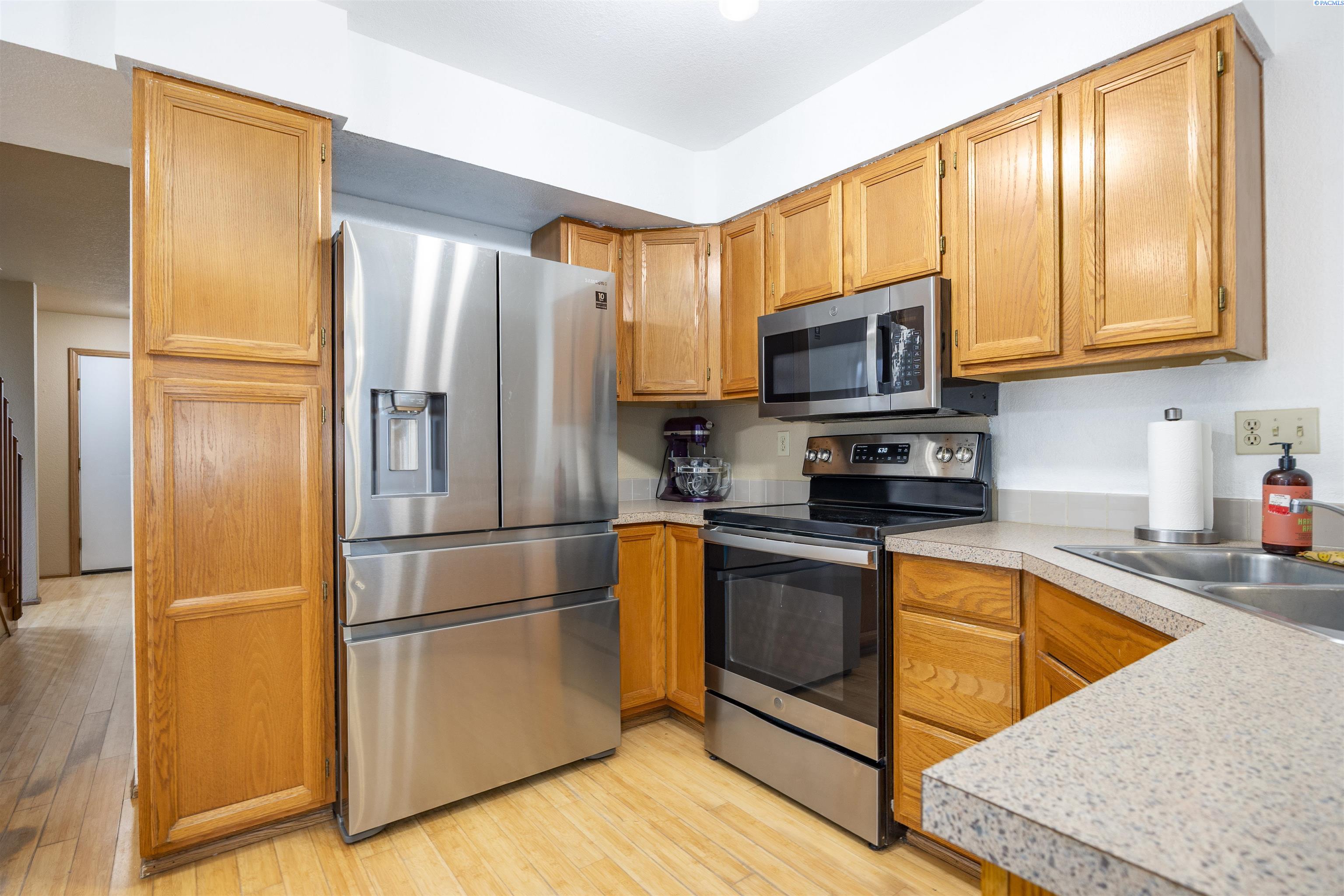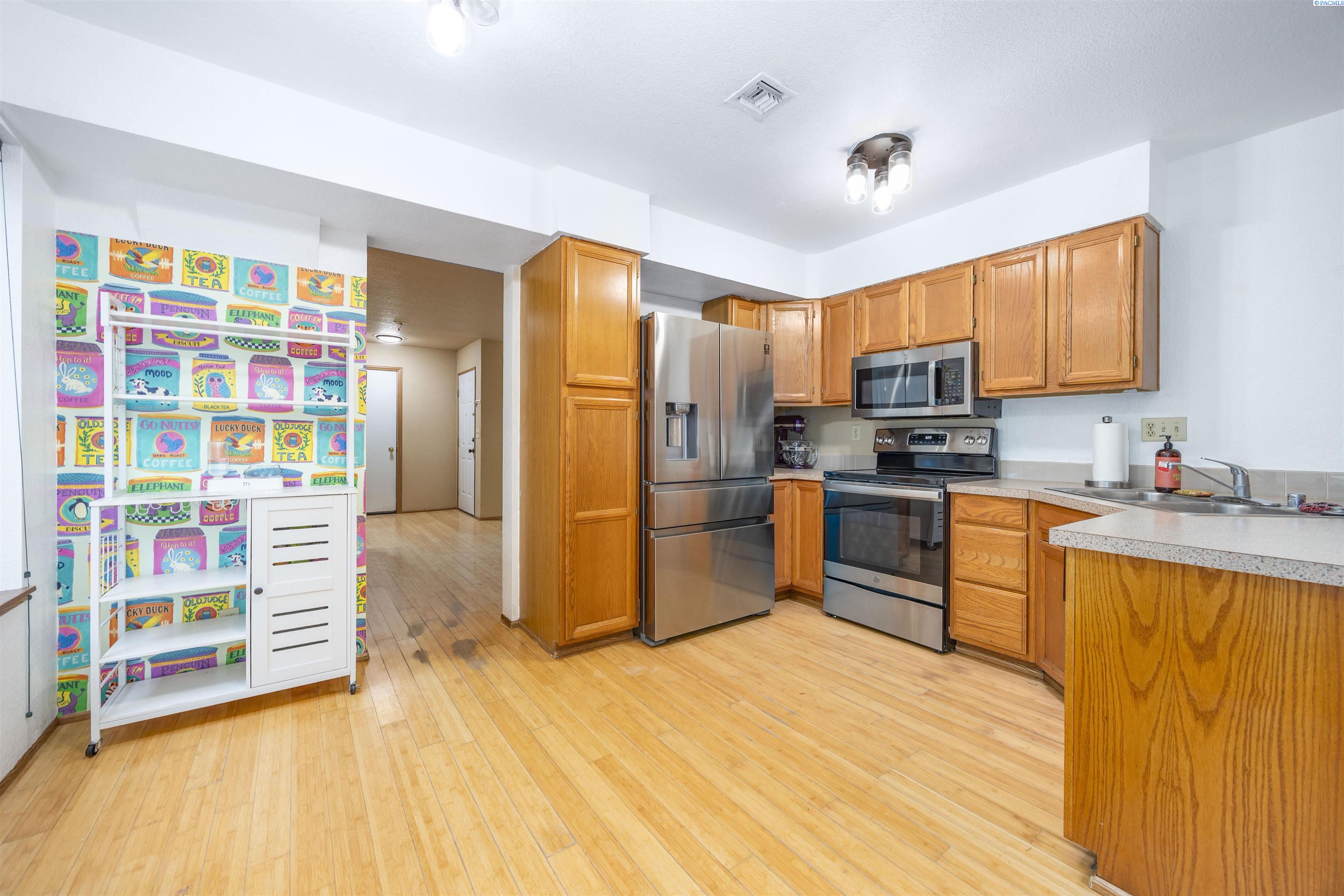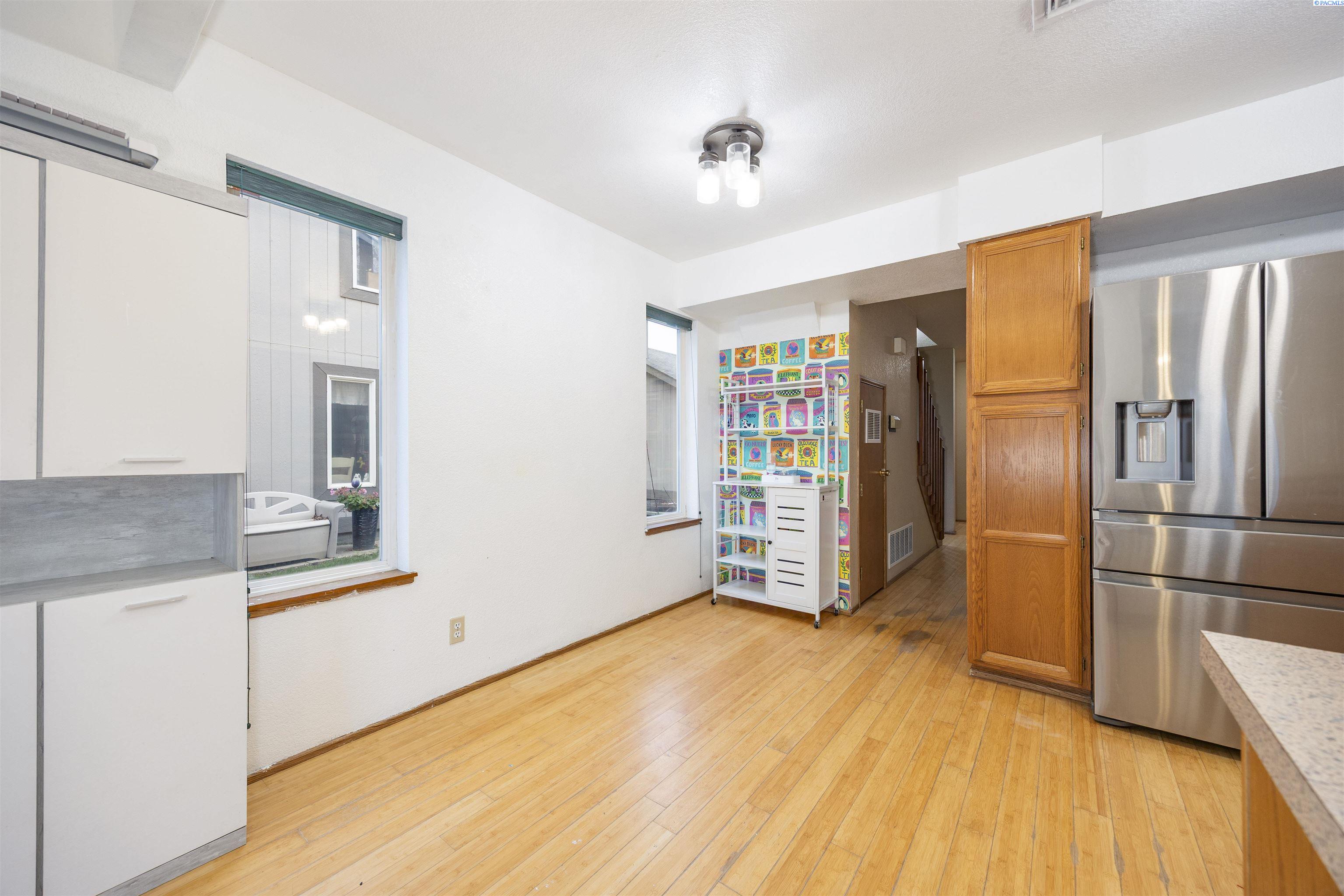 MLS# 289221 Discover affordable living in West Kennewick with this inviting 2-story homeâan ideal opportunity for first-time home buyers or investors seeking a wonderful rental property. The home includes 1,520 sq ft of comfortable living space, including 3 bedrooms and 2 full bathrooms. Step inside to a bright, welcoming interior featuring bamboo flooring throughout the main living areas. The kitchen offers wood cabinetry, ample prep space, and a pantry for all your storage needs, with an adjacent dining area that keeps mealtime convenient. The family room features a pass-through to the kitchen, a ceiling fan, and sliding doors that lead to the patioâperfect for seamless indoor-to-outdoor living and entertaining. The spacious primary suite includes a large closet and a private full bathroom. Outside, the fenced backyard provides plenty of room to relax, garden, or enjoy outdoor activities. Located in the heart of West Kennewick, this home is close to schools, shopping, and a variety of amenities, making it an excellent option for both comfort and convenience.