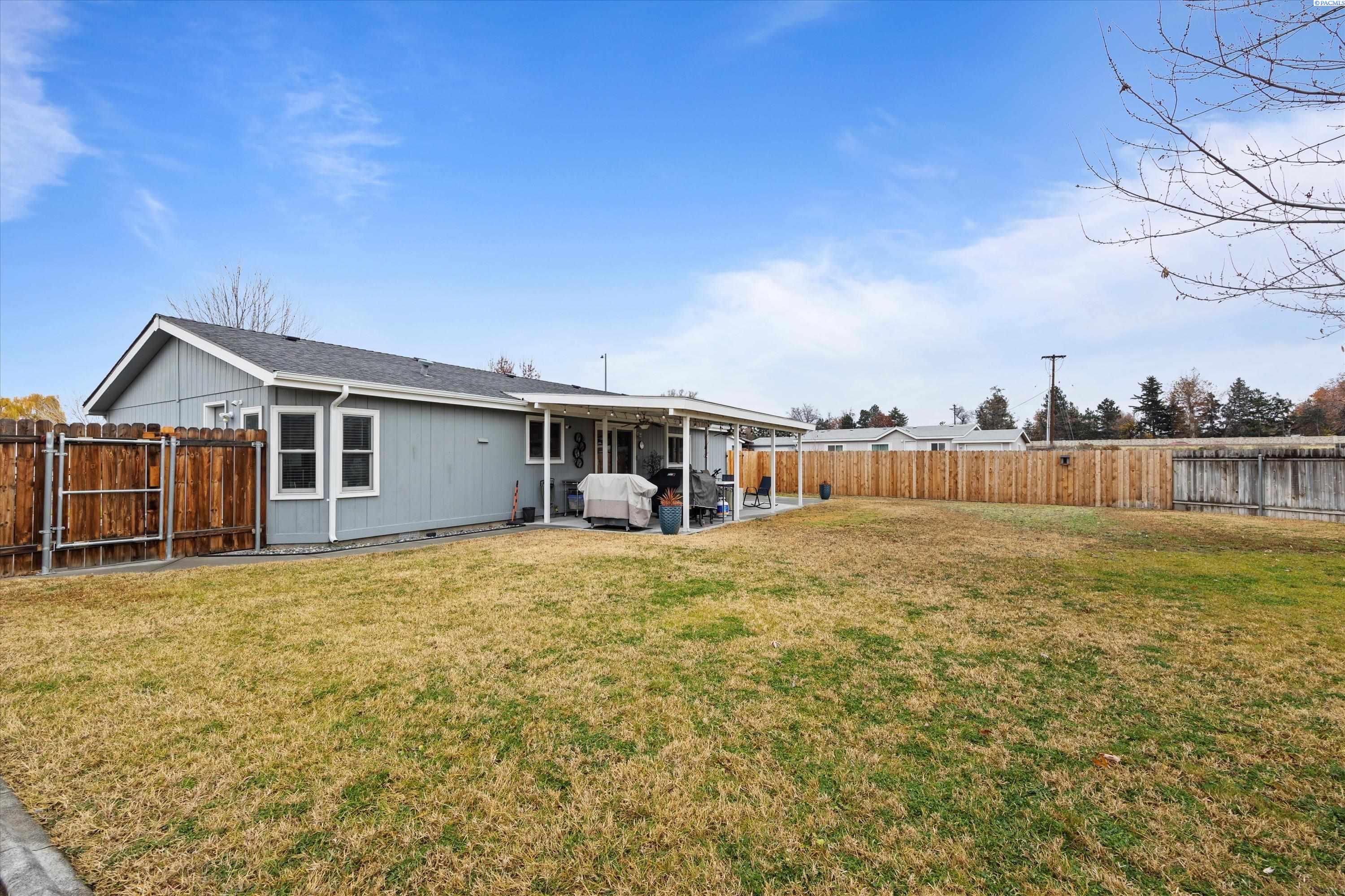 This beautiful house is ready for you to call it home! Nestled on a corner lot, this home boasts 3 generous bedrooms, 2 full bath, open concept, vaulted ceiling, split bedroom design. Primary bedroom offers a huge closet. Soak your worries away in the oversized corner tub. Newer interior and exterior paint, windows 4 years old, roof 2 years old. Fully fenced. If relaxing on the covered back patio is your style, this home has it! A perfect back yard for relaxing, gardening or entertaining. Centrally located to shopping, freeway access and entertainment. The owner has meticulously taken care of this home and done the major improvements so you dont have to! Buyer to verify school district and lot size.