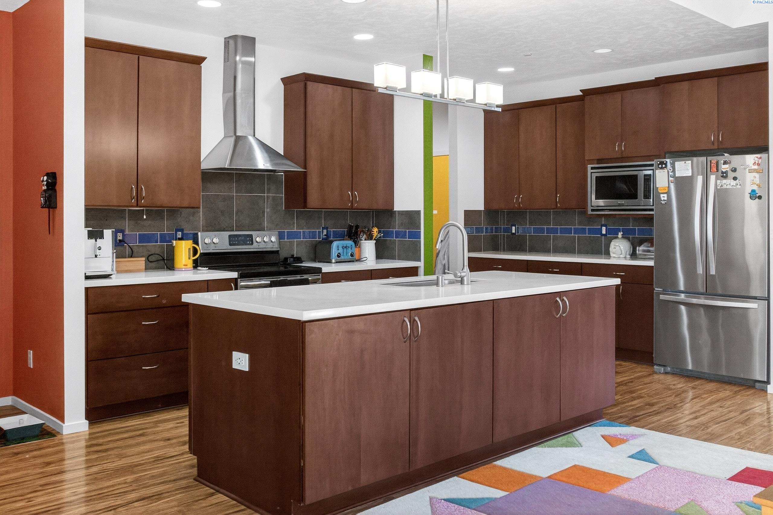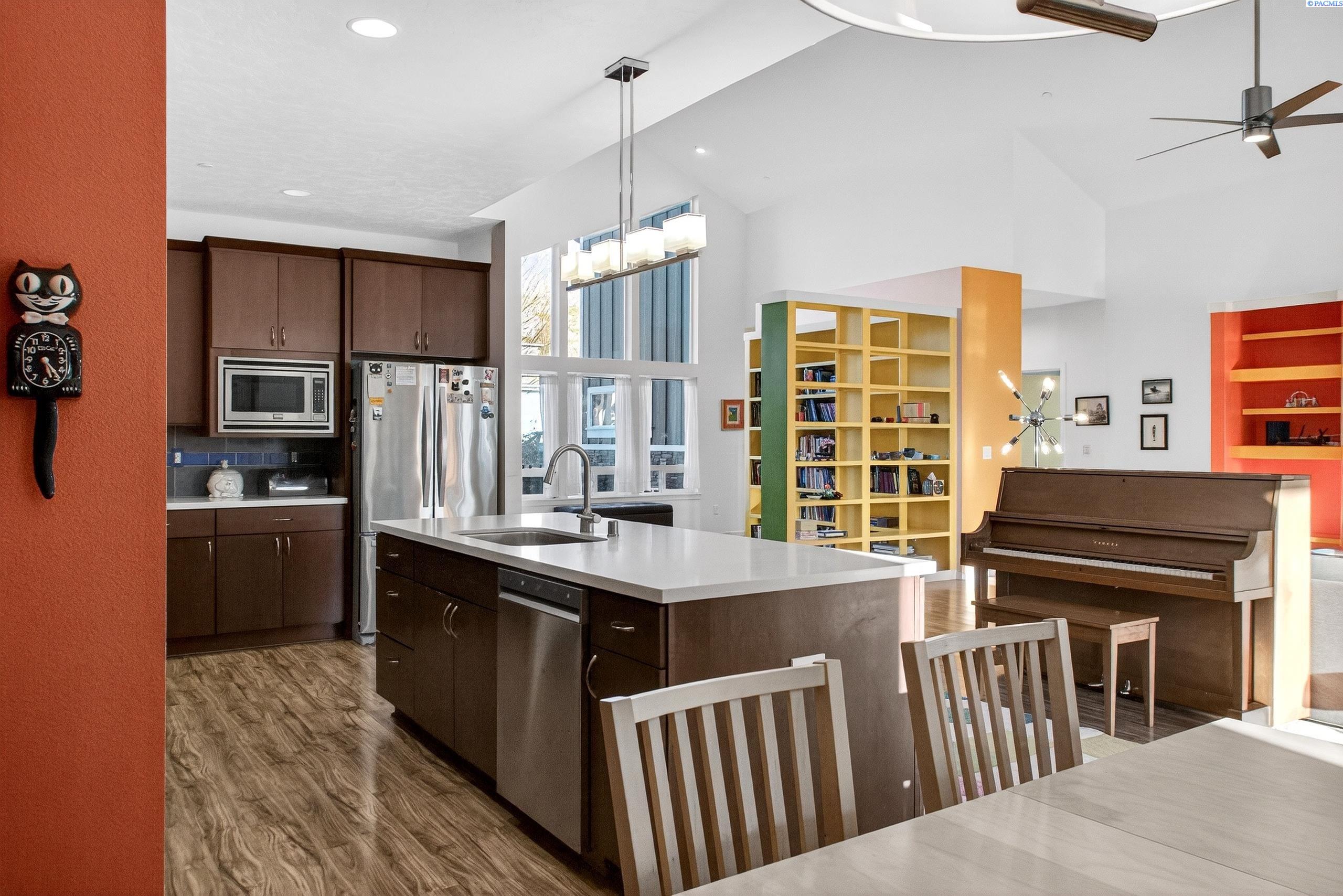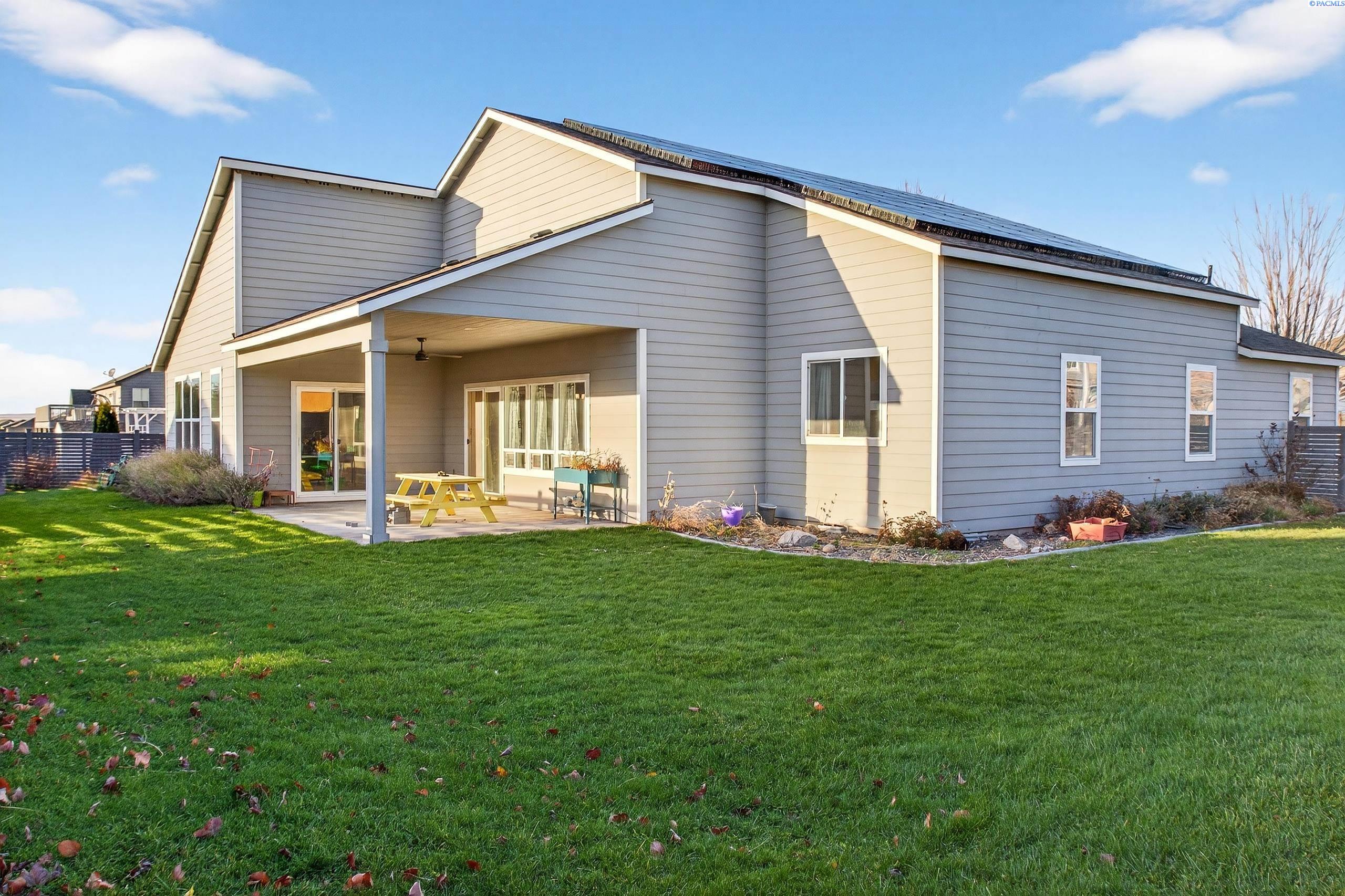 MLS# 289290 Welcome to a rare gem in West Vineyard Estatesâwhere artistic charm meets everyday convenience. This single-story home offers 3 bedrooms, 2 full bathrooms, and sits on just under a quarter-acre lot, surrounded by natural light and sweeping views of Badger Mountain. Step inside and instantly feel uplifted by the homeâs vibrant, eclectic design. Sunlight pours in from all sides, illuminating built-in bookshelves that create the perfect reading nookâan inviting space to unwind while soaking in hillside views. The thoughtful floor plan connects spacious living areas with an open kitchen and dining space, making daily life both functional and beautiful. All appliances are electric (and convey), supported by a full solar system that can make monthly utilities virtually a wash. Gas is also available, giving you flexibility for future upgrades. Outside, enjoy ample room to garden, entertain, or simply relax. The quiet neighborhood setting gives you a sense of privacy and retreat, yet youâre just minutes from everything you loveâQueensgate shopping, the Country Mercantile, freeway access, and local dining. Adventure awaits beyond your front door, with walking trails throughout the community and the beloved 2-acre Celebration Park just a few blocks away. Whether you love long walks, playground time, or weekend picnics, this neighborhood makes staying active and connected easy.