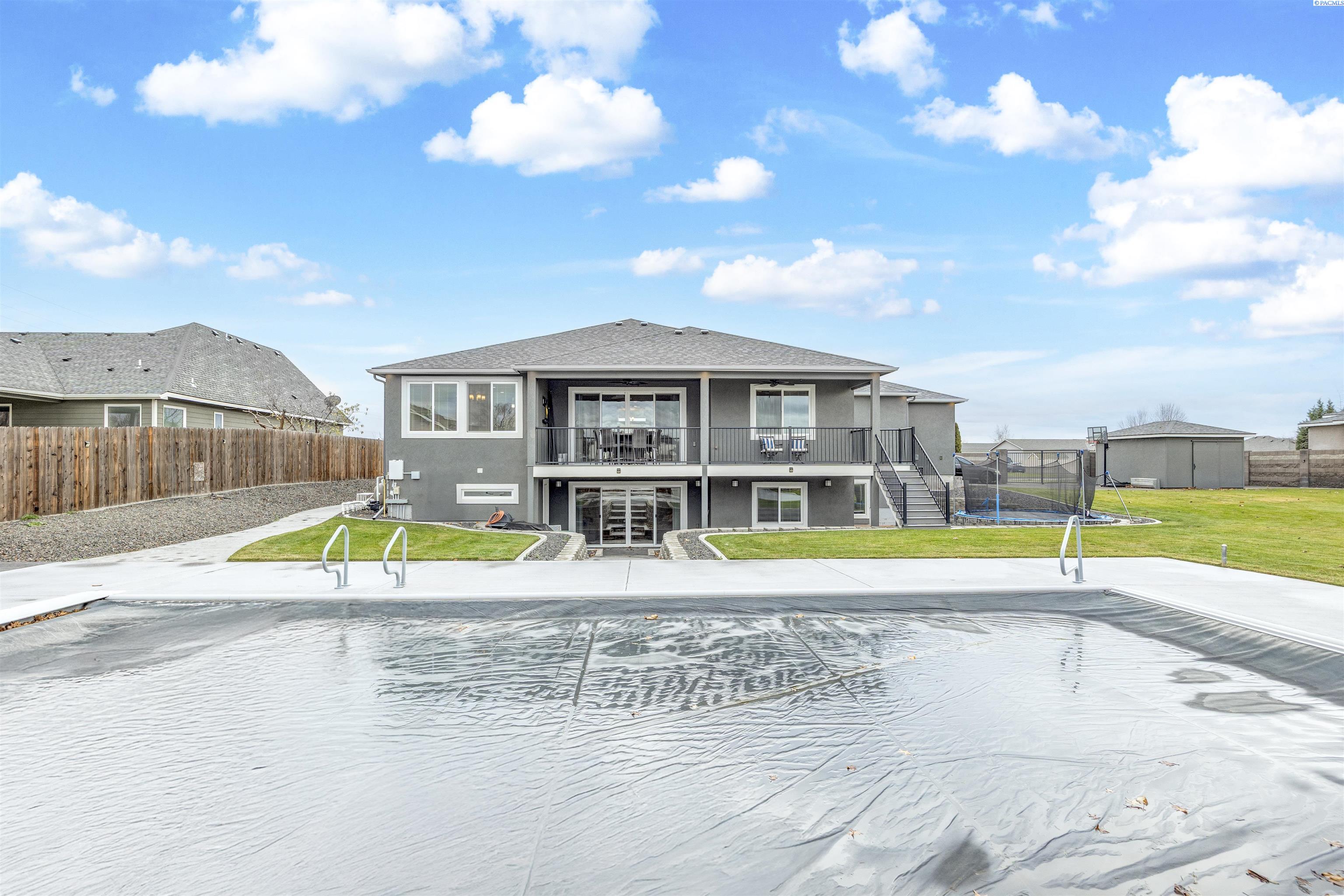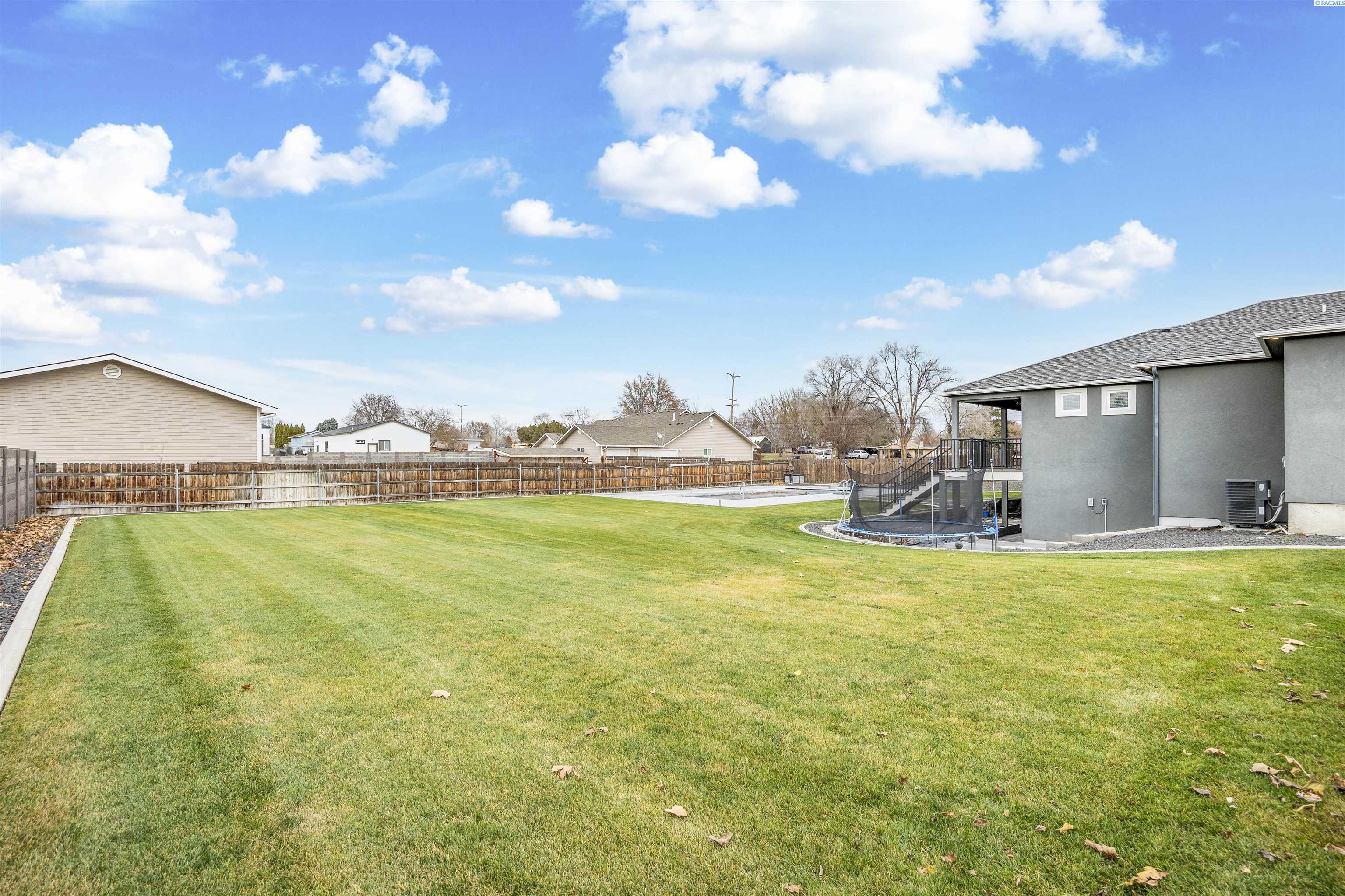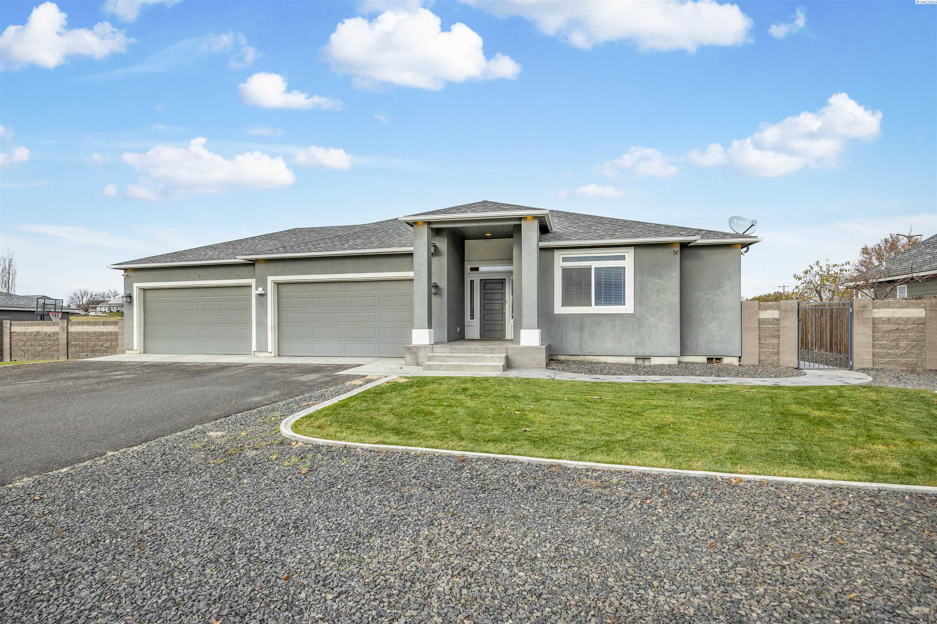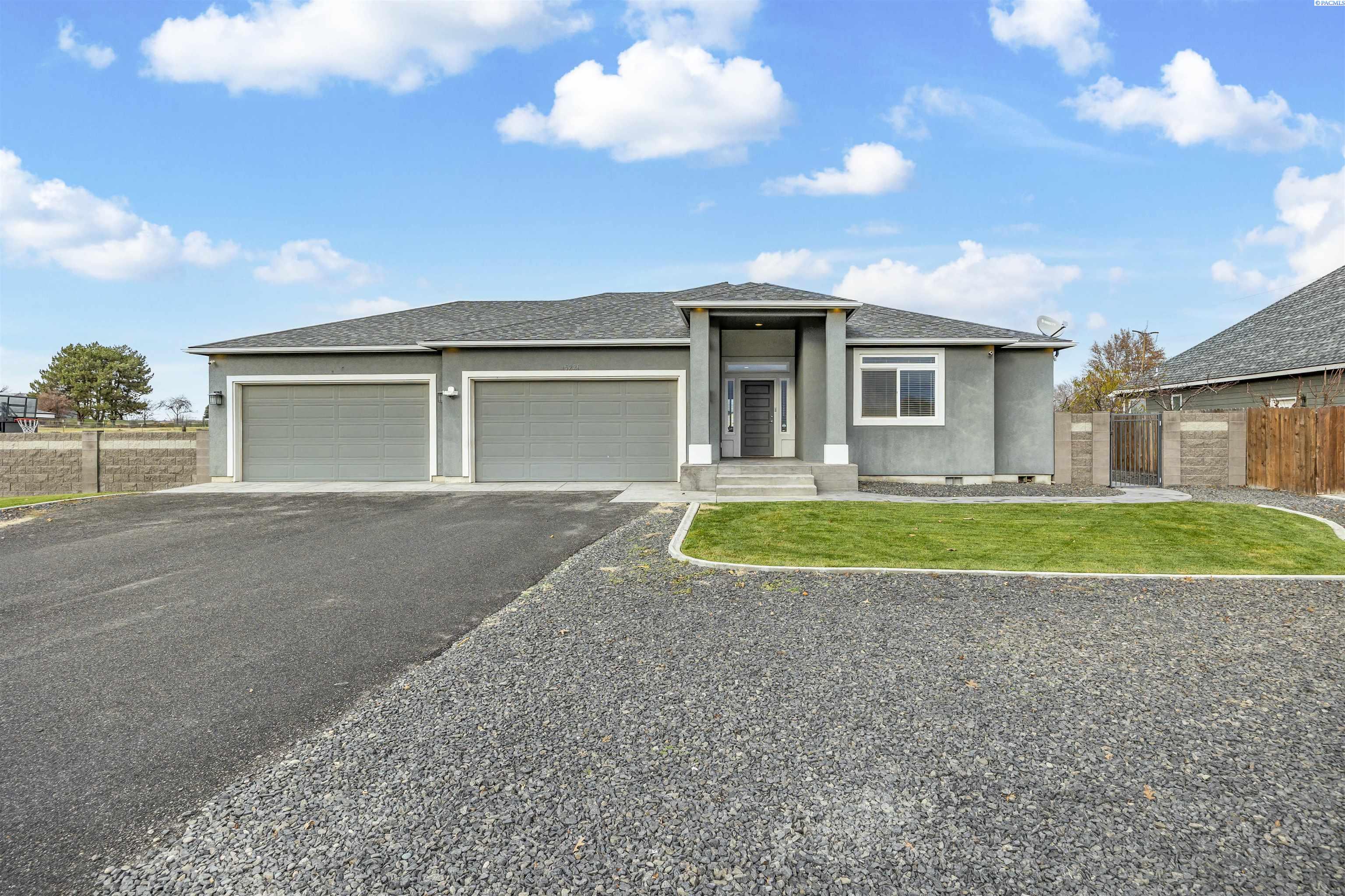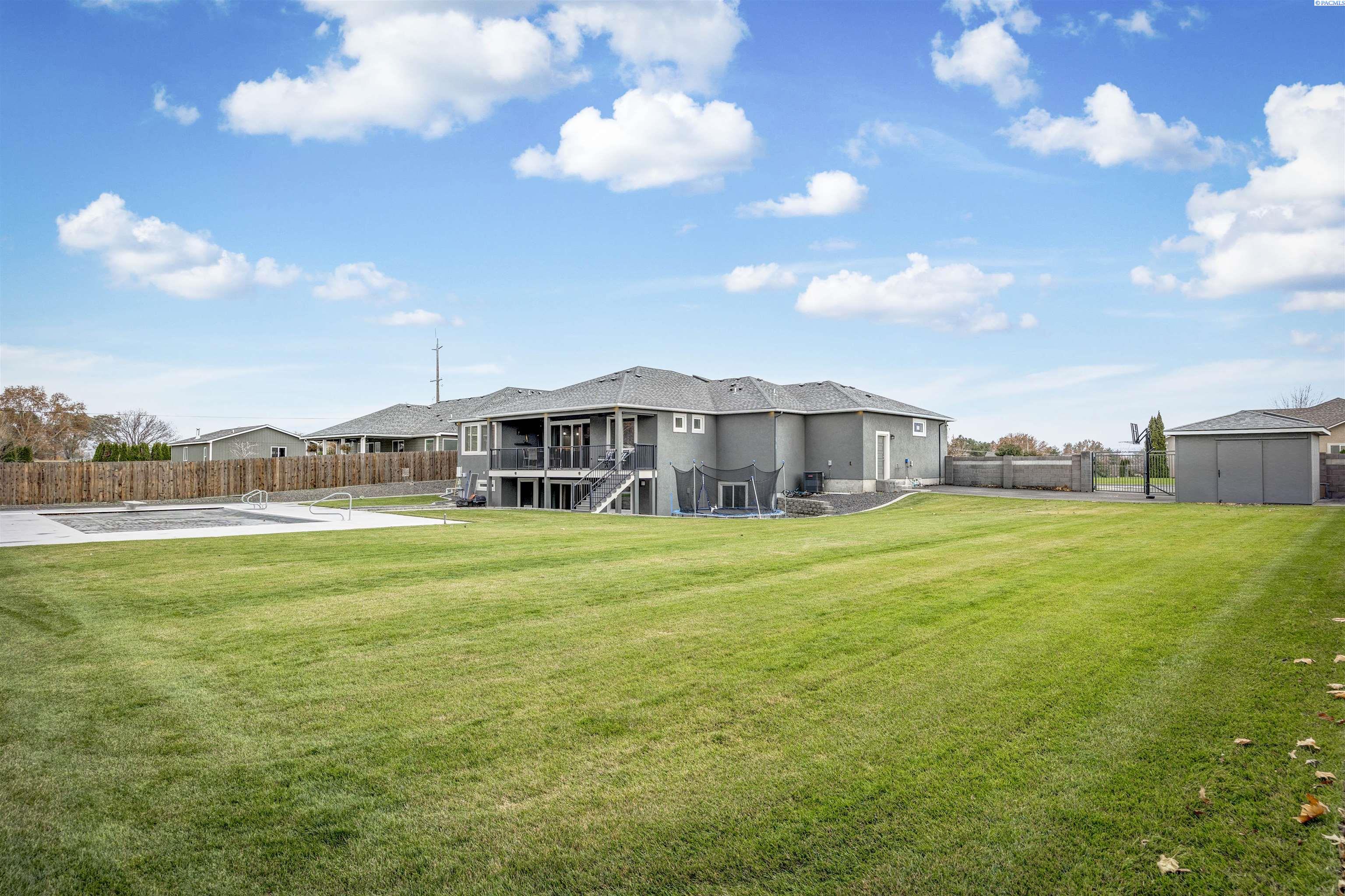 MLS# 289322 Nestled on a peaceful ½-acre lot in Pasco, this stunning property offers exceptional space, comfort, and outdoor livingâincluding a 4-car garage and a sparkling inground pool! Built in 2018, the home features 3,614 sq. ft. of beautifully designed living space in a well-planned 1-level with daylight basement layout, offering 6 bedrooms and 3 bathrooms. The inviting great room showcases a cozy fireplace with built-in shelving, a bright interior with large windows & slider access to the deck, and tile flooring that runs throughout the main level living areas. The chefâs kitchen is equipped with white cabinetry, quartz countertops, a full tile backsplash, island with breakfast bar and beverage fridge, stainless steel appliances, and a generous pantry with a glass door. Enjoy both casual meals and special occasions in the spacious dining area. The main-level primary suite includes a recessed ceiling with ceiling fan, a spacious custom closet, and a private spa-inspired ensuite featuring a dual-sink vanity, jetted tub, and massive tiled shower. The laundry room adds convenience with cabinetry, a utility sink, and a built-in bench for extra storage. The daylight basement expands your living space with the 6th bedroom that is large enough to be a bonus/theater room, and a large family room with laminate flooring, a wet bar, and direct access to the backyardâperfect for entertaining or multi-generational living. Step outside to a fully fenced backyard that feels like a retreat: gate access for boat or RV parking, covered patio and deck areas for year-round enjoyment, a spectacular 20x40 in-ground pool with a brand-new liner (2024), and an electric automatic pool cover for safe and easy maintenance. A generous lawn area and matching storage shed complete the outdoor space. With an attached 4-car garage, plenty of off-street parking, and a serene setting just minutes from premier West Pasco amenities, this rare property offers the perfect blend of country-like tranquility and modern convenience.