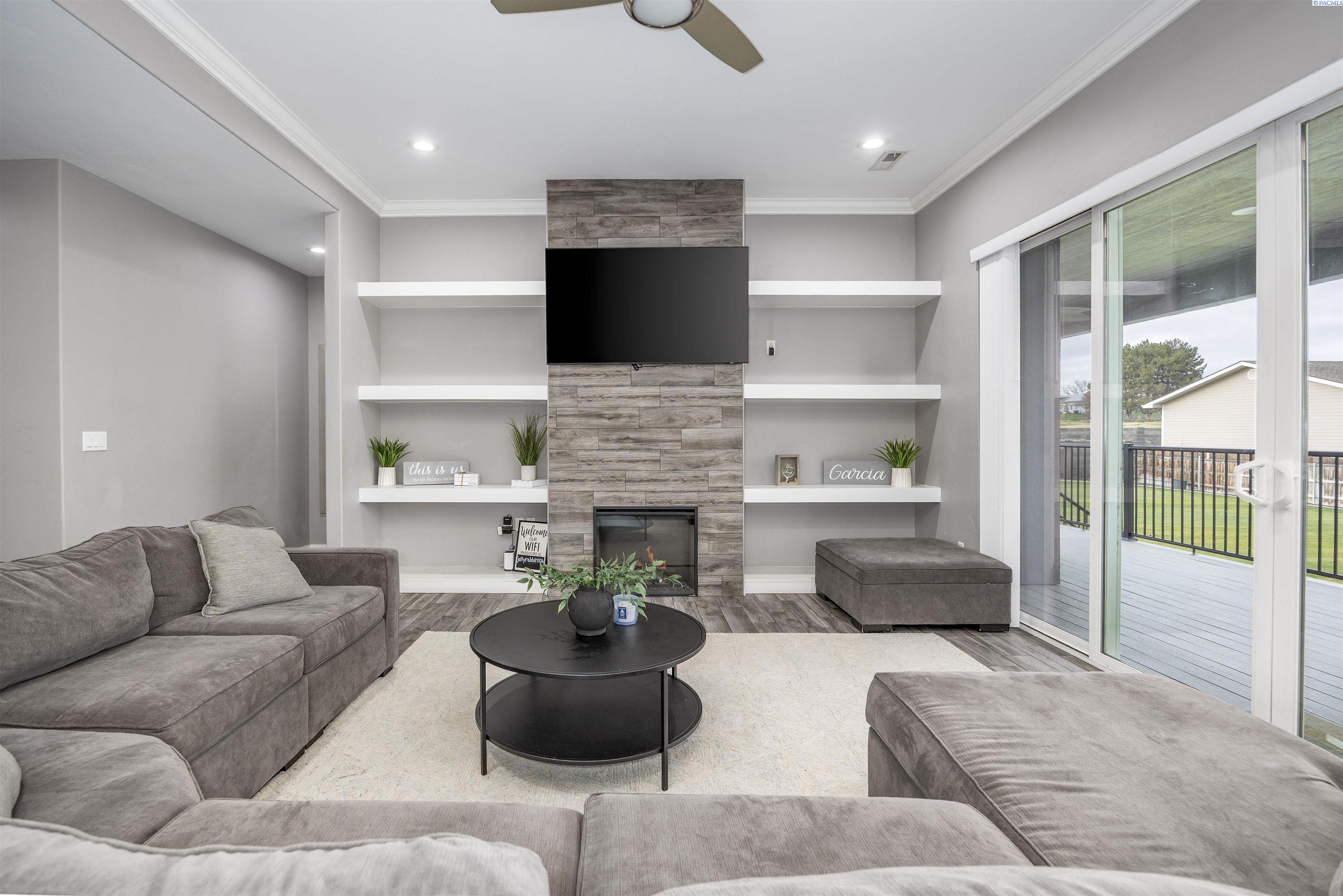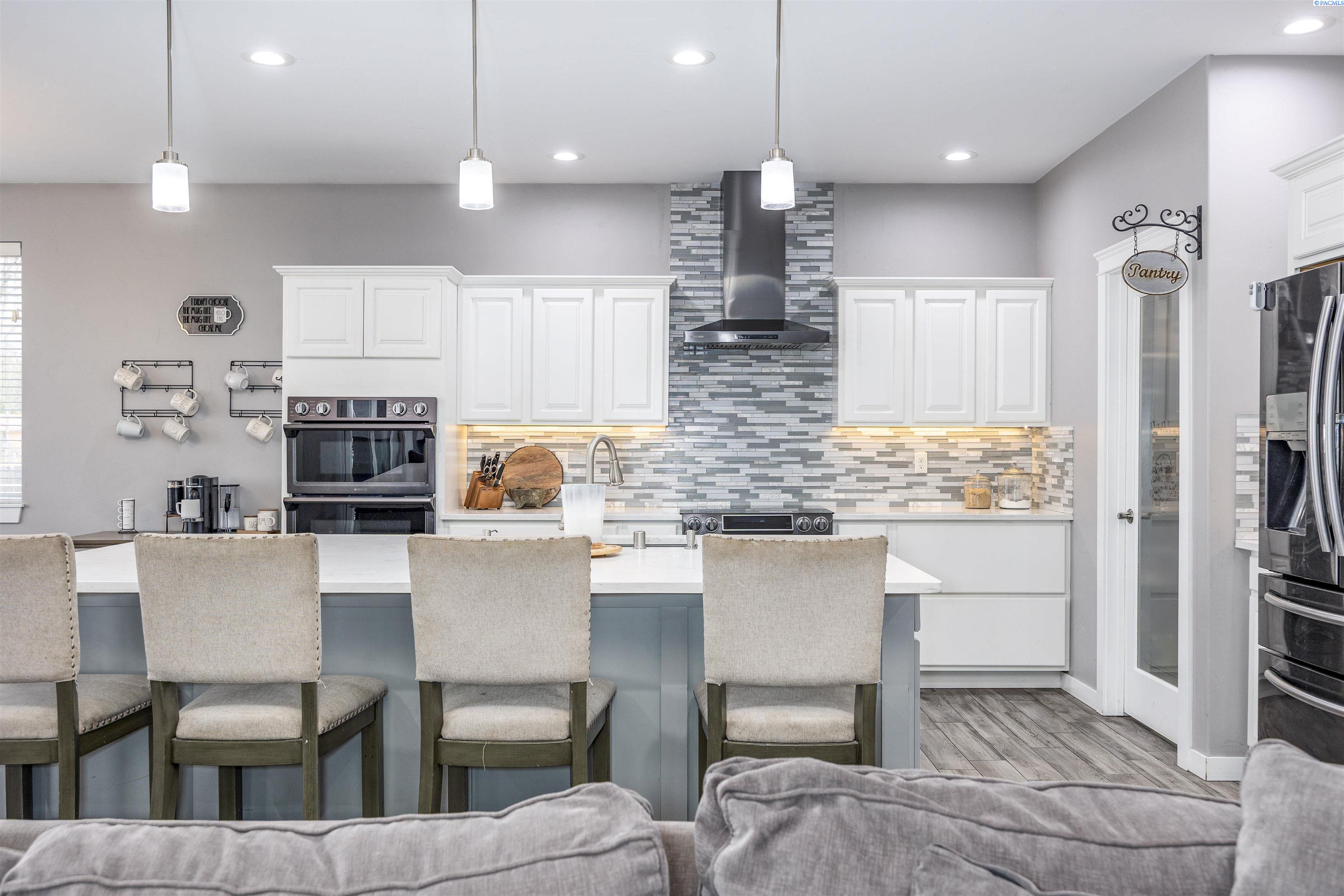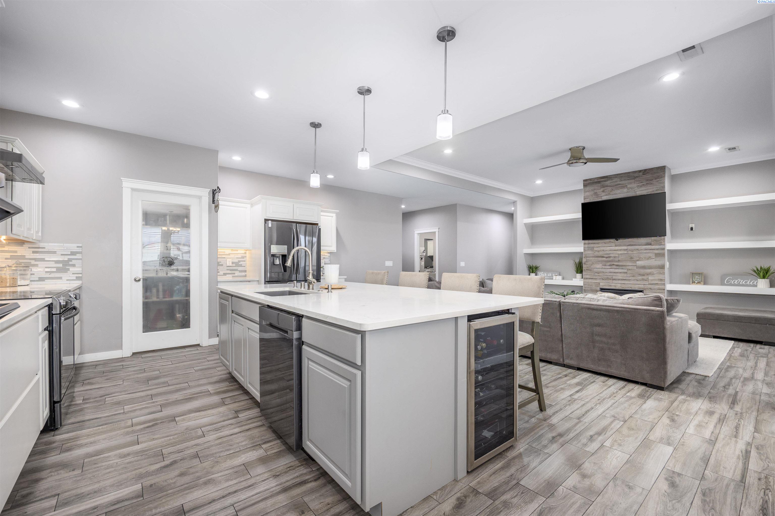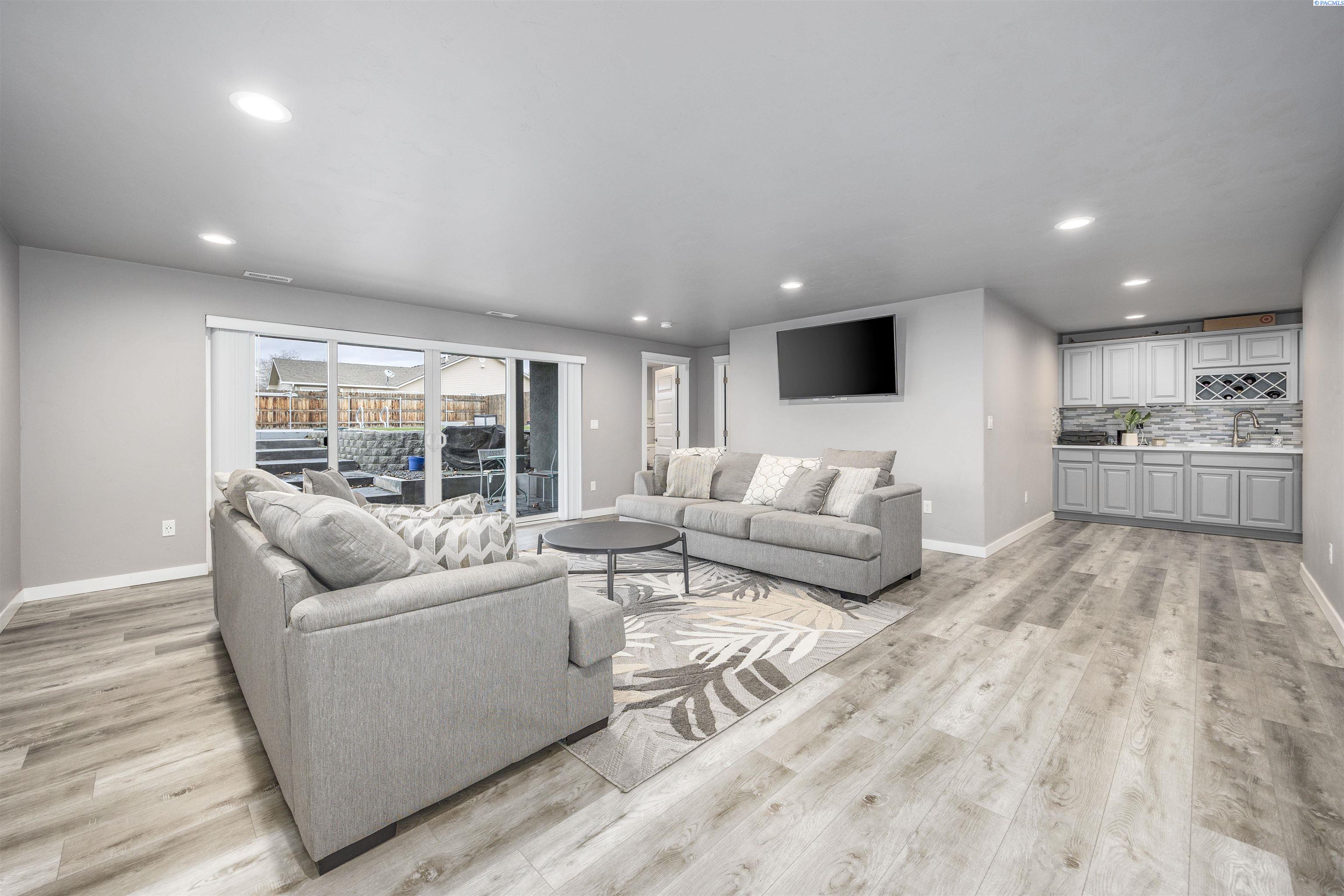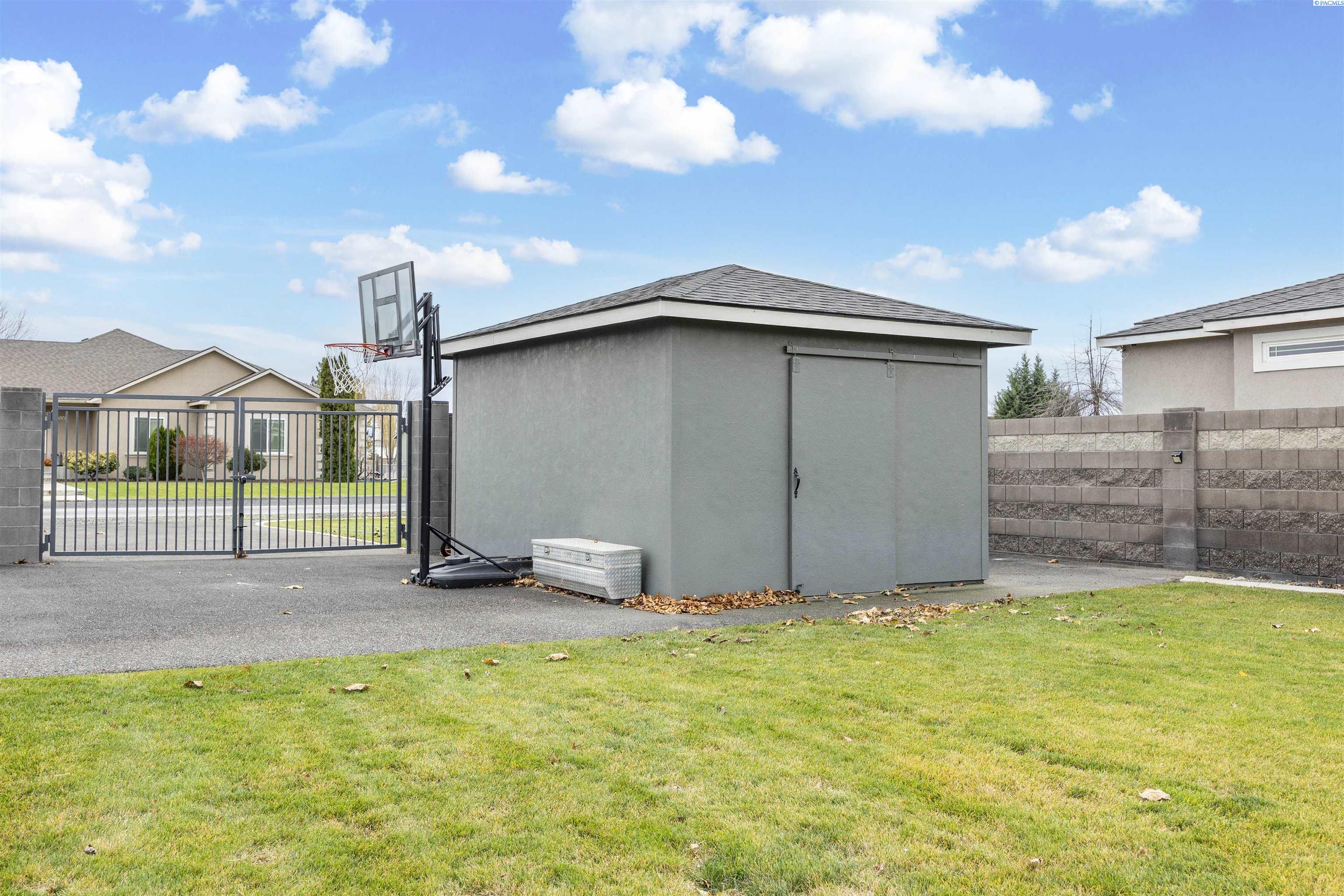 MLS# 289322 Nestled on a peaceful ½-acre lot in Pasco, this stunning property offers exceptional space, comfort, and outdoor livingâincluding a 4-car garage and a sparkling inground pool! Built in 2018, the home features 3,614 sq. ft. of beautifully designed living space in a well-planned 1-level with daylight basement layout, offering 6 bedrooms and 3 bathrooms. The inviting great room showcases a cozy fireplace with built-in shelving, a bright interior with large windows & slider access to the deck, and tile flooring that runs throughout the main level living areas. The chefâs kitchen is equipped with white cabinetry, quartz countertops, a full tile backsplash, island with breakfast bar and beverage fridge, stainless steel appliances, and a generous pantry with a glass door. Enjoy both casual meals and special occasions in the spacious dining area. The main-level primary suite includes a recessed ceiling with ceiling fan, a spacious custom closet, and a private spa-inspired ensuite featuring a dual-sink vanity, jetted tub, and massive tiled shower. The laundry room adds convenience with cabinetry, a utility sink, and a built-in bench for extra storage. The daylight basement expands your living space with the 6th bedroom that is large enough to be a bonus/theater room, and a large family room with laminate flooring, a wet bar, and direct access to the backyardâperfect for entertaining or multi-generational living. Step outside to a fully fenced backyard that feels like a retreat: gate access for boat or RV parking, covered patio and deck areas for year-round enjoyment, a spectacular 20x40 in-ground pool with a brand-new liner (2024), and an electric automatic pool cover for safe and easy maintenance. A generous lawn area and matching storage shed complete the outdoor space. With an attached 4-car garage, plenty of off-street parking, and a serene setting just minutes from premier West Pasco amenities, this rare property offers the perfect blend of country-like tranquility and modern convenience.