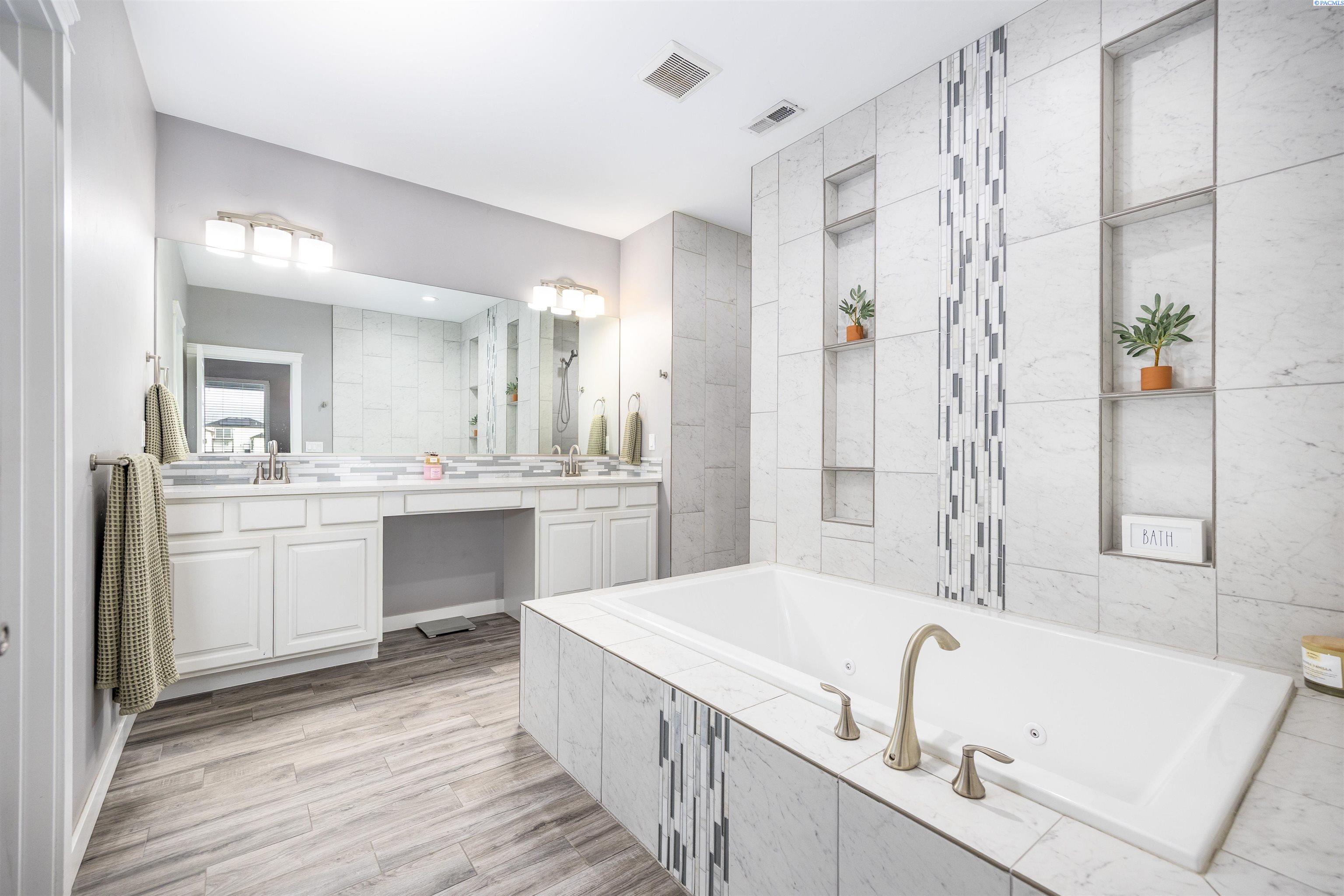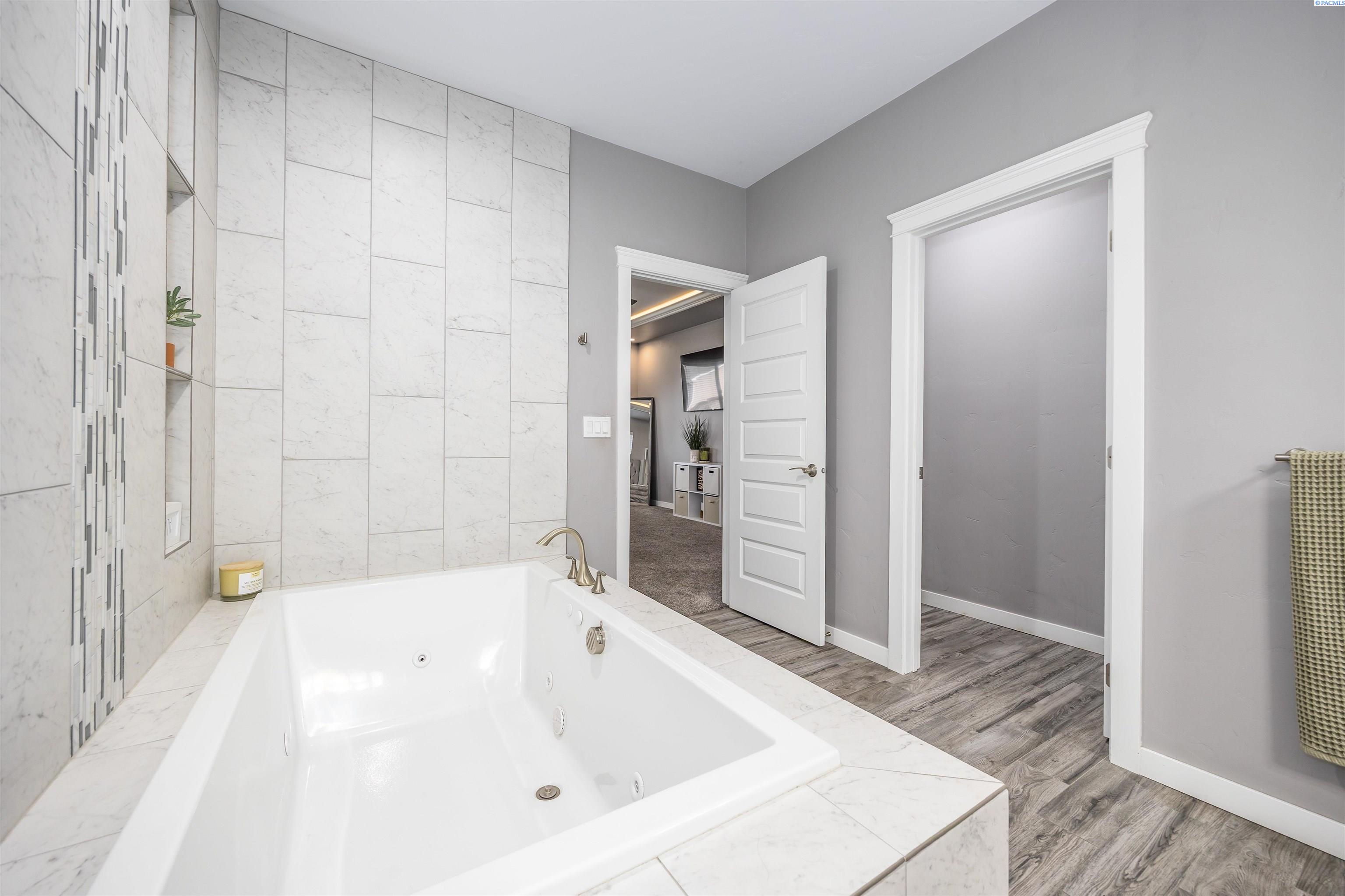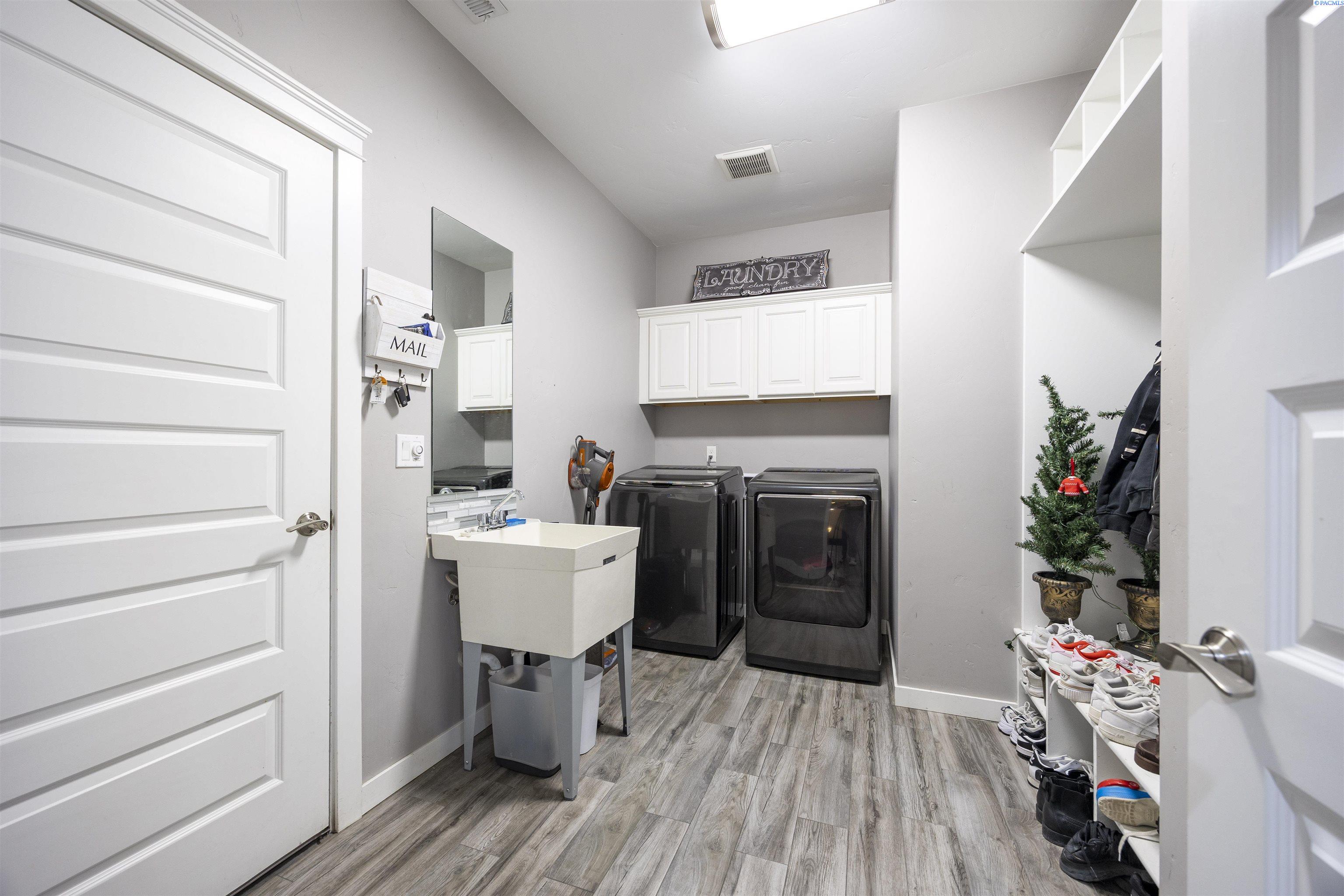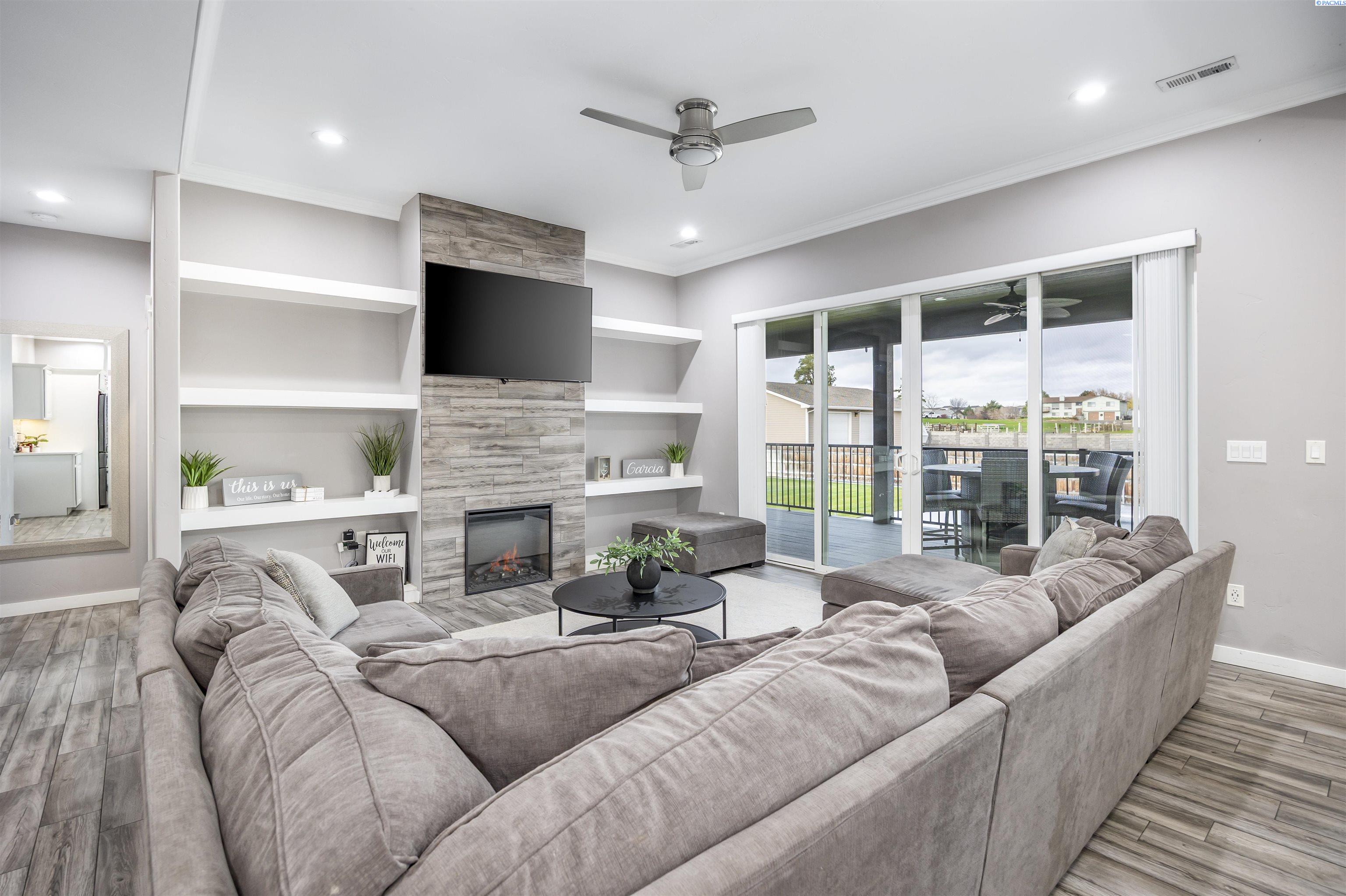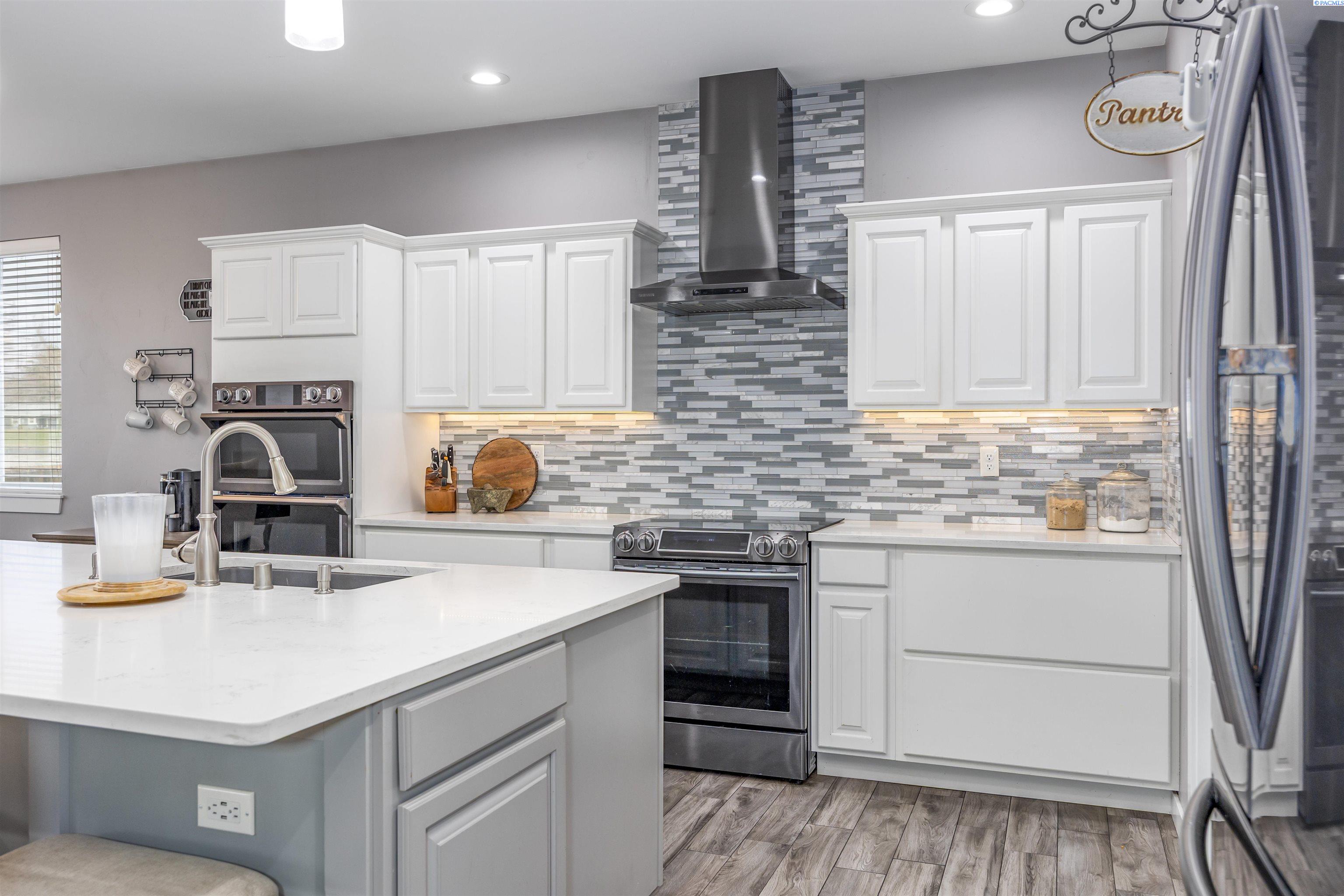 MLS# 289322 Nestled on a peaceful ½-acre lot in Pasco, this stunning property offers exceptional space, comfort, and outdoor livingâincluding a 4-car garage and a sparkling inground pool! Built in 2018, the home features 3,614 sq. ft. of beautifully designed living space in a well-planned 1-level with daylight basement layout, offering 6 bedrooms and 3 bathrooms. The inviting great room showcases a cozy fireplace with built-in shelving, a bright interior with large windows & slider access to the deck, and tile flooring that runs throughout the main level living areas. The chefâs kitchen is equipped with white cabinetry, quartz countertops, a full tile backsplash, island with breakfast bar and beverage fridge, stainless steel appliances, and a generous pantry with a glass door. Enjoy both casual meals and special occasions in the spacious dining area. The main-level primary suite includes a recessed ceiling with ceiling fan, a spacious custom closet, and a private spa-inspired ensuite featuring a dual-sink vanity, jetted tub, and massive tiled shower. The laundry room adds convenience with cabinetry, a utility sink, and a built-in bench for extra storage. The daylight basement expands your living space with the 6th bedroom that is large enough to be a bonus/theater room, and a large family room with laminate flooring, a wet bar, and direct access to the backyardâperfect for entertaining or multi-generational living. Step outside to a fully fenced backyard that feels like a retreat: gate access for boat or RV parking, covered patio and deck areas for year-round enjoyment, a spectacular 20x40 in-ground pool with a brand-new liner (2024), and an electric automatic pool cover for safe and easy maintenance. A generous lawn area and matching storage shed complete the outdoor space. With an attached 4-car garage, plenty of off-street parking, and a serene setting just minutes from premier West Pasco amenities, this rare property offers the perfect blend of country-like tranquility and modern convenience.