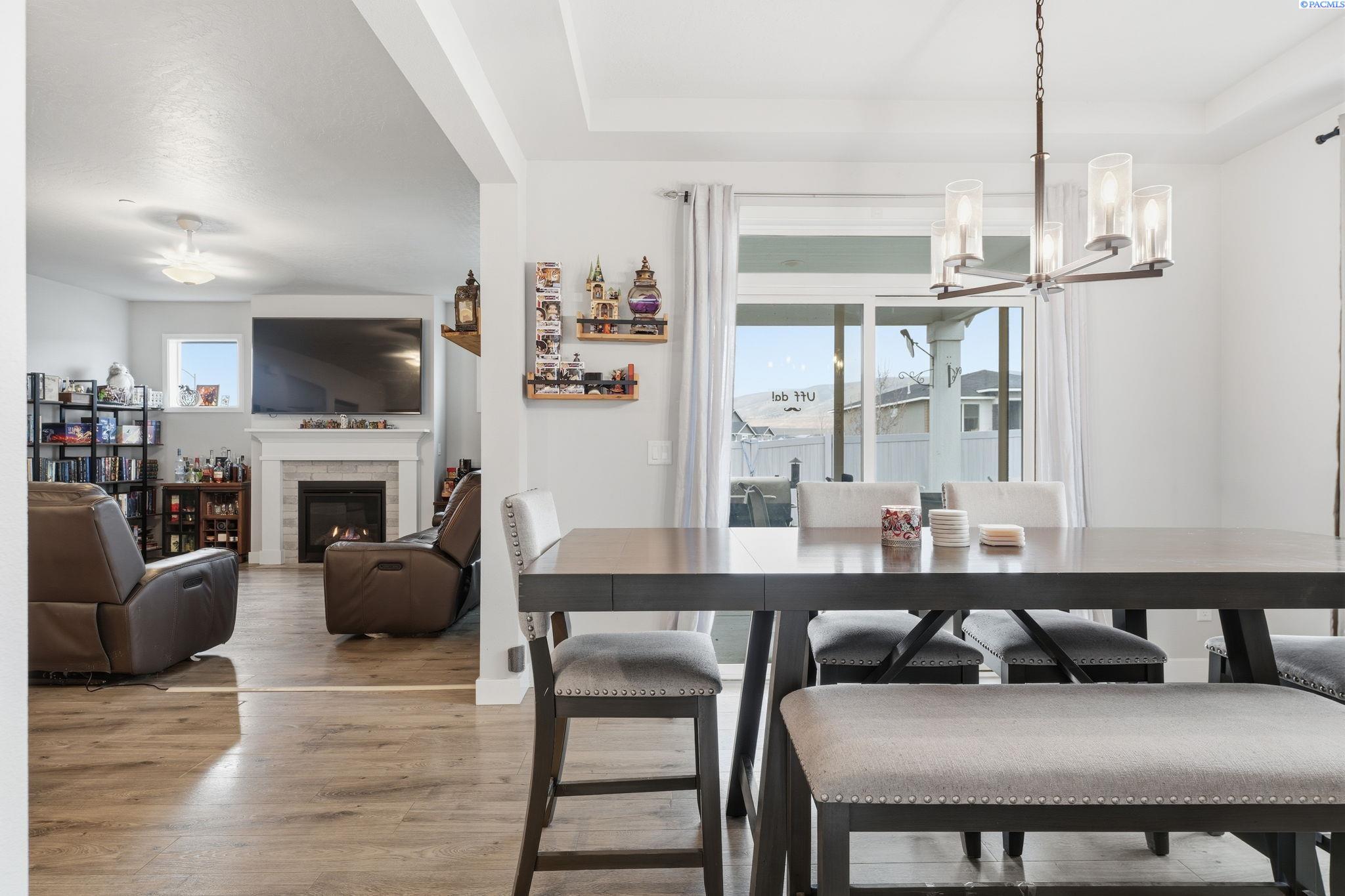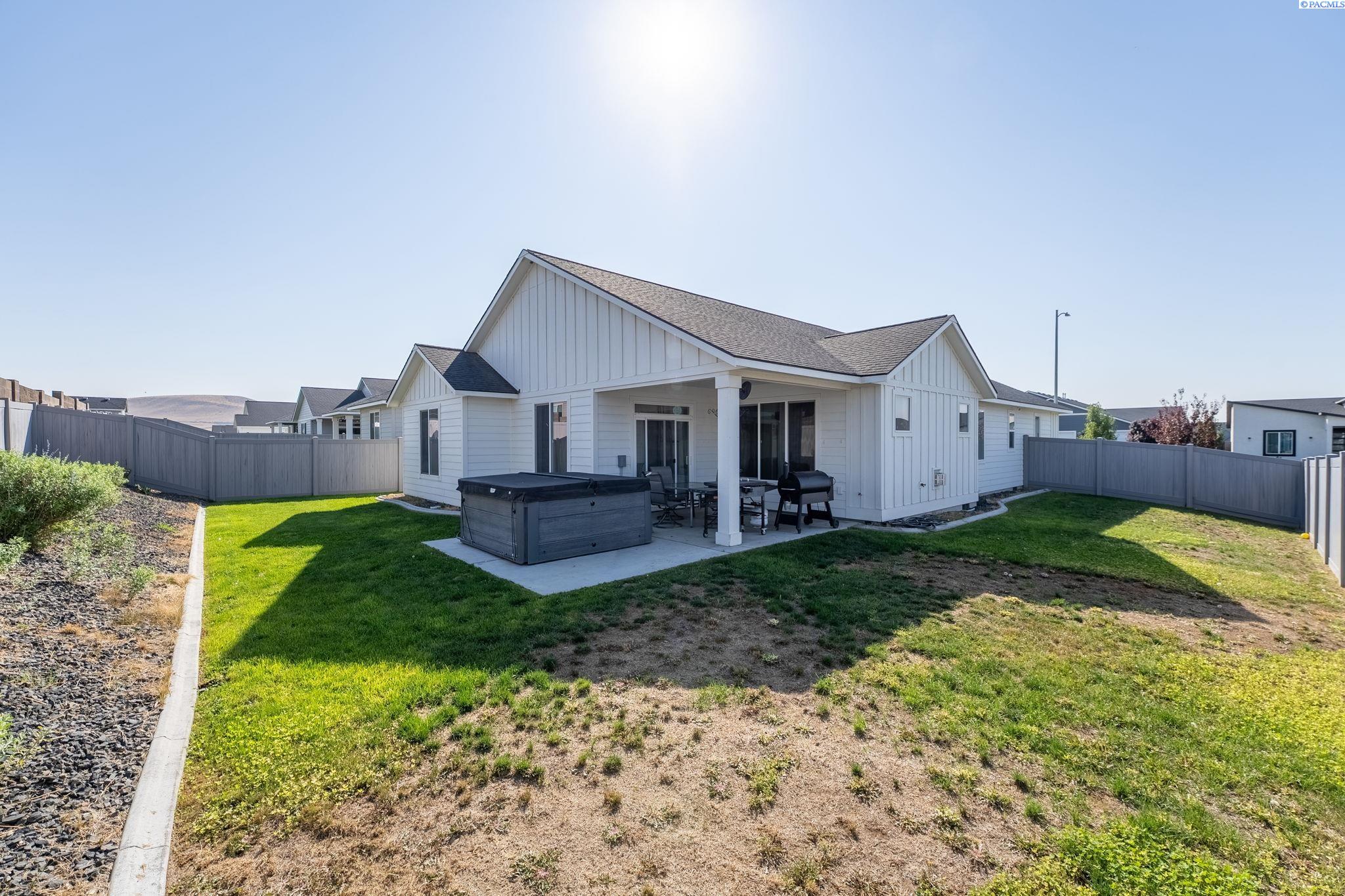 MLS# 289349 Welcome to 2572 Clark Ridge, a beautifully maintained home that feels fresh, modern, and move-in ready. Inside you'll find no carpet, just beautiful laminate flooring throughout. The great room features a gas fireplace, transom windows, and open flow into the island kitchen and dining area with access to the covered patio. The extra-large covered patio includes a gas hookup for easy barbecues, and the fully fenced backyard offers privacy vinyl fencing with two gates, including one 10 feet wide. The primary suite provides a quiet retreat with double sinks, soaking tub, tiled shower, and walk-in closet. Two additional bedrooms share a full bath near the entry, perfect for guests or a home office. Located in a newer neighborhood near the Country Mercantile, this home offers comfort, style, and thoughtful design throughout.