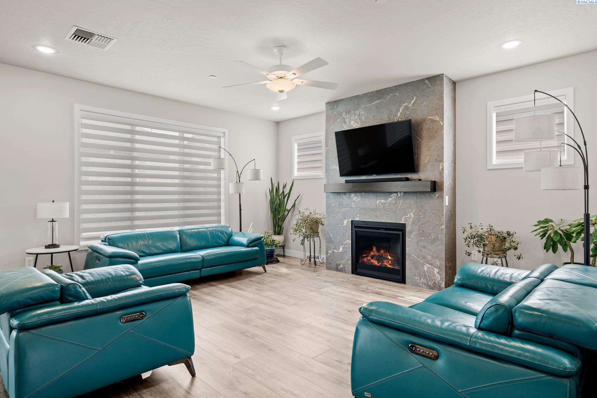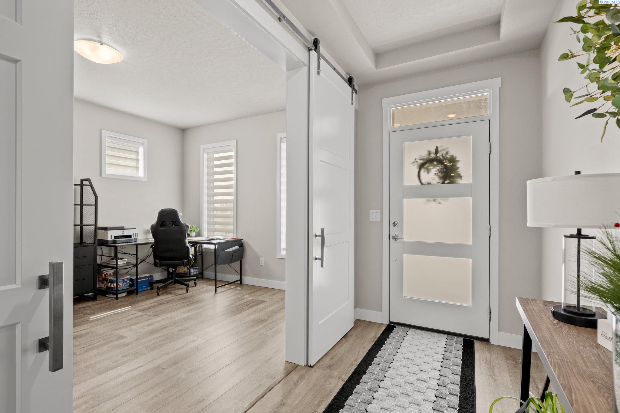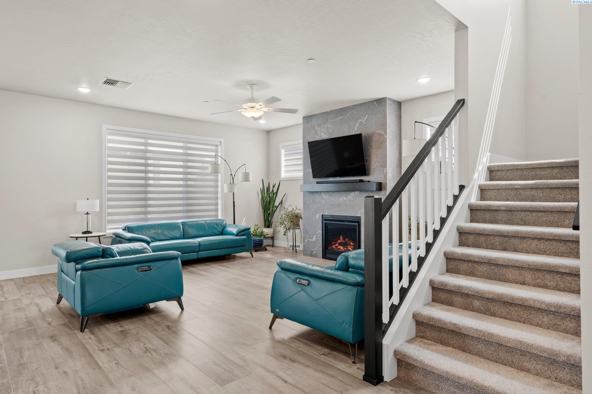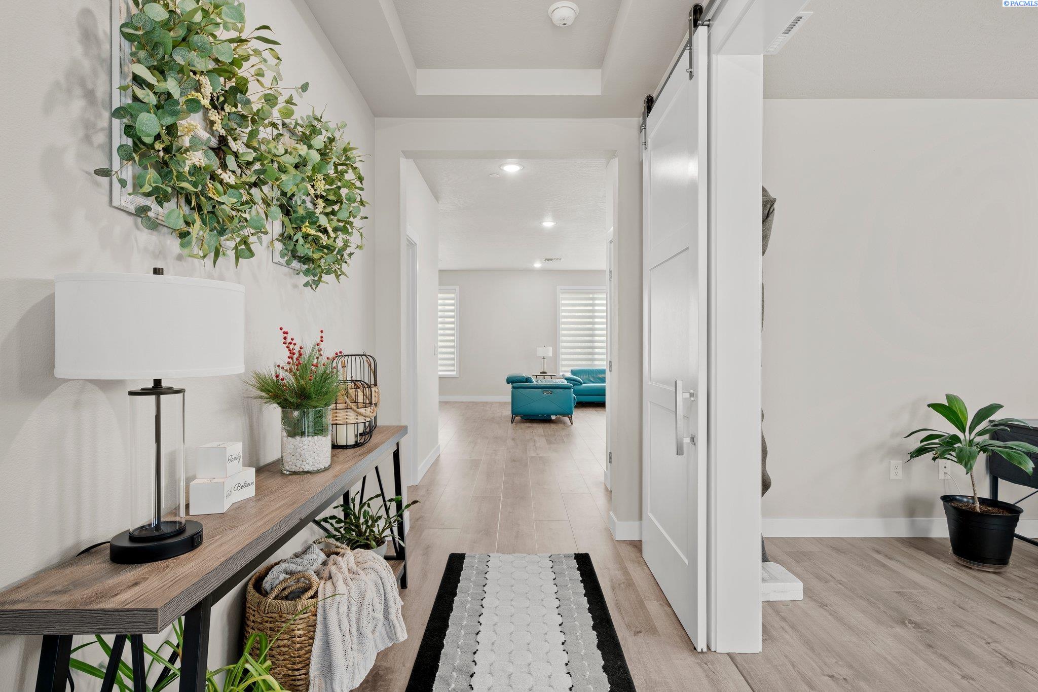 MLS# 289379 LIKE NEW!! A spacious 4-bedroom, 2.5-bathroom home spanning 2825 square feet, featuring a home office, an open floor plan, and additional living space on the second floor. The main level has an upgraded custom tile fireplace that spans from floor to ceiling. The primary bedroom has grand barn doors leading into the massive en-suite.The property boasts a large 3-car garage ideal for a home gym, mature landscaping with underground sprinklers on irrigation, and a concrete fence for added privacy and RV parking concrete slab. Situated near the charming Country Mercantile, the neighborhood offers scenic walking paths and convenient access to major freeways.