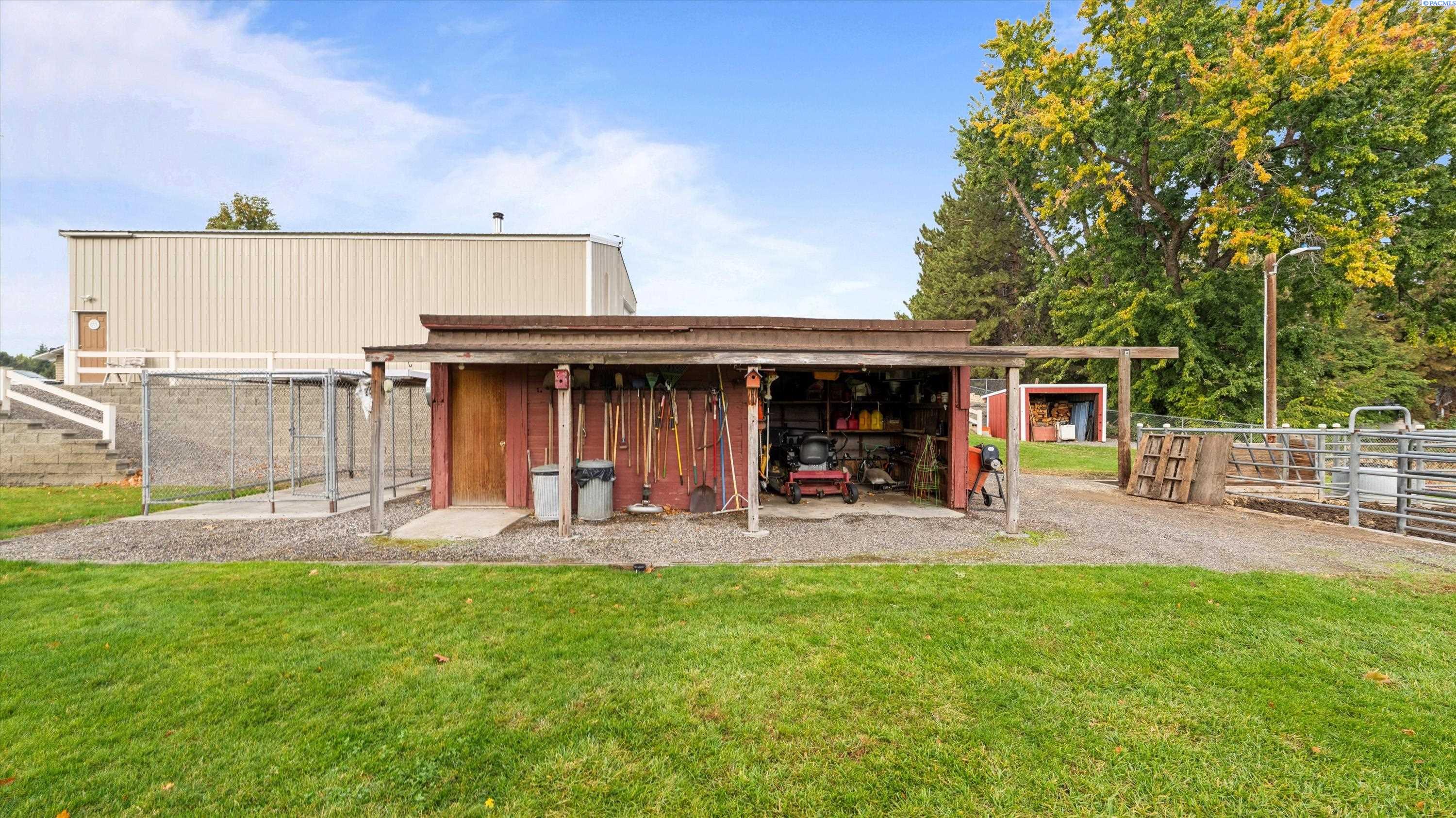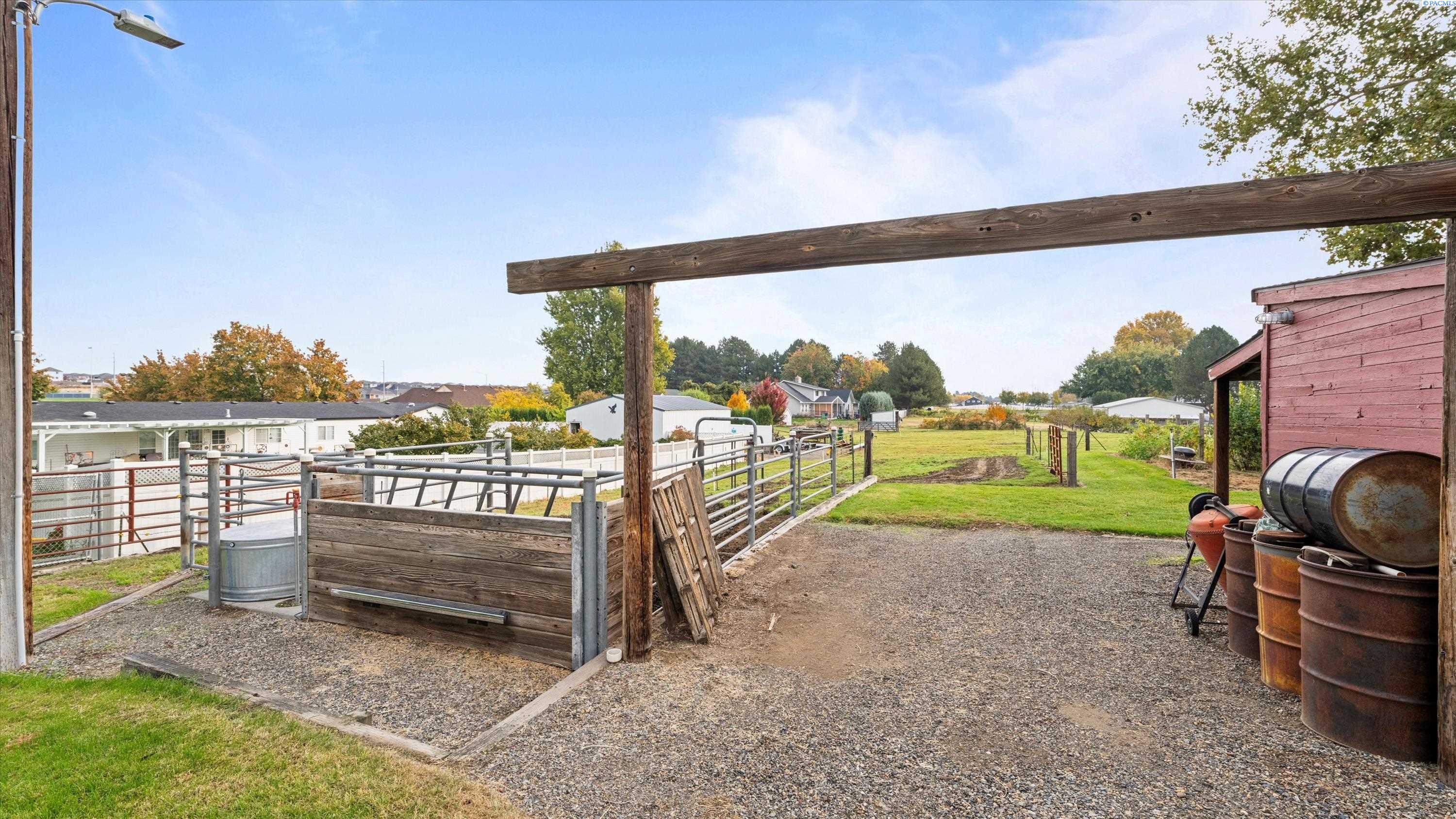 Welcome to this beautifully updated Rambler with a full basement, offering over 2,400 sq ft of living space on a picturesque 1-acre lot along the highly desired Dradie Street. Built in 1950, this timeless home has had only one owner besides the original and has been lovingly maintained and modernized over the years. Enjoy the charm of original, stunning hardwood floors and two cozy wood-burning fireplaces. The main level features two spacious bedrooms and a fully updated bathroom with tile floors and granite countertops. The beautifully remodeled kitchen boasts custom cherrywood cabinets with soft-close drawers and pullouts, granite counters, laminate flooring, and updated appliances. Downstairs, you'll find a large rec room, laundry room with chute, two additional bedrooms, a 3/4 bath, and plenty of storage. Step outside to take in the serene views of your private acre - complete with a 30x48 shop/man cave with its own heat pump, a tack shed, stall, small pasture, and garden area. This property also includes two RV hookups and its own private well. Homes like this - Rich in character and quality - are rare to find!