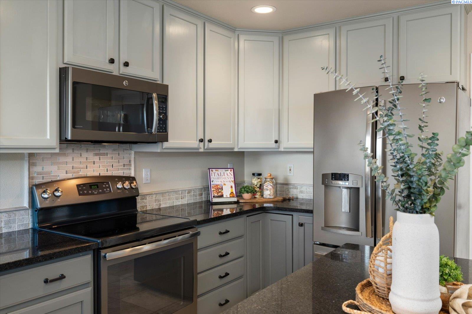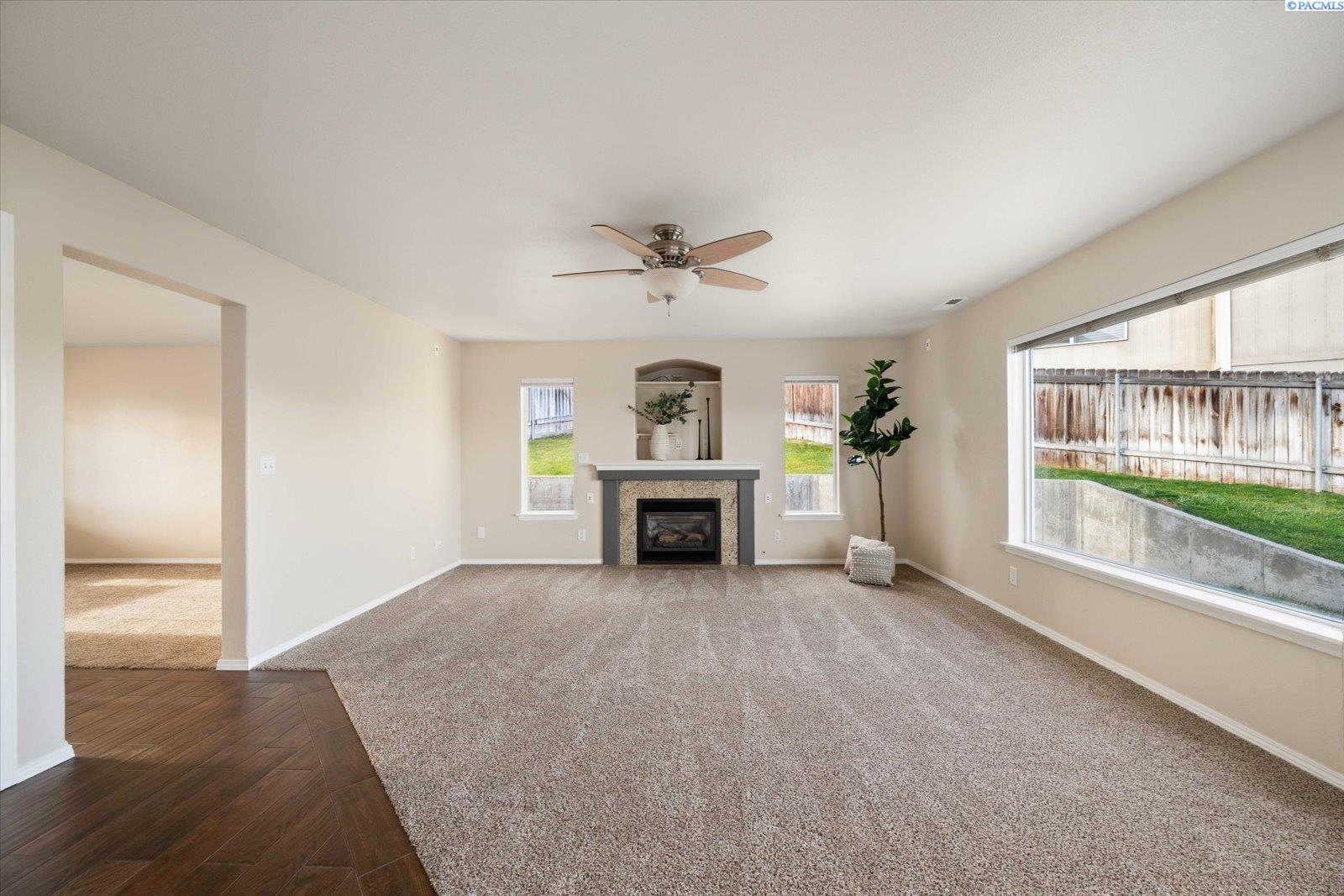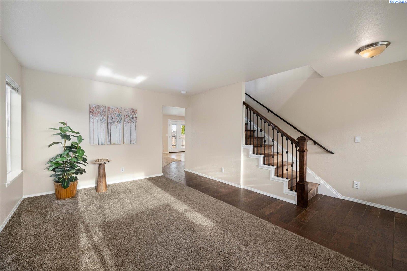 Welcome to this stunning 5-bedroom, 2,218 square foot home in the highly sought-after Shadow Run community of SW Kennewick. This move-in ready residence features both a living room and family room, plus a spacious kitchen with granite countertops and an island. Freshly painted with brand-new carpet throughout, the thoughtful floor plan places all bedrooms upstairs, including an expansive owner's suite with a walk-in closet and walk-in shower. The outdoor space is equally impressive, featuring a large patio with pergola, hot tub, and storage shed. Additional highlights include RV parking and an oversized 3-car garage with storage shelving. Shadow Run's prime location offers quick access to shopping, top-rated schools, and interstate highways, making this the perfect blend of comfort and convenience. Don't miss this opportunity to own in one of Kennewick's most desirable neighborhoods!