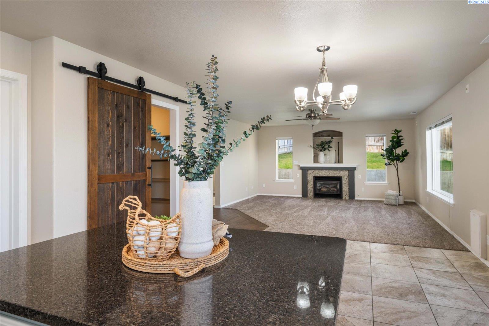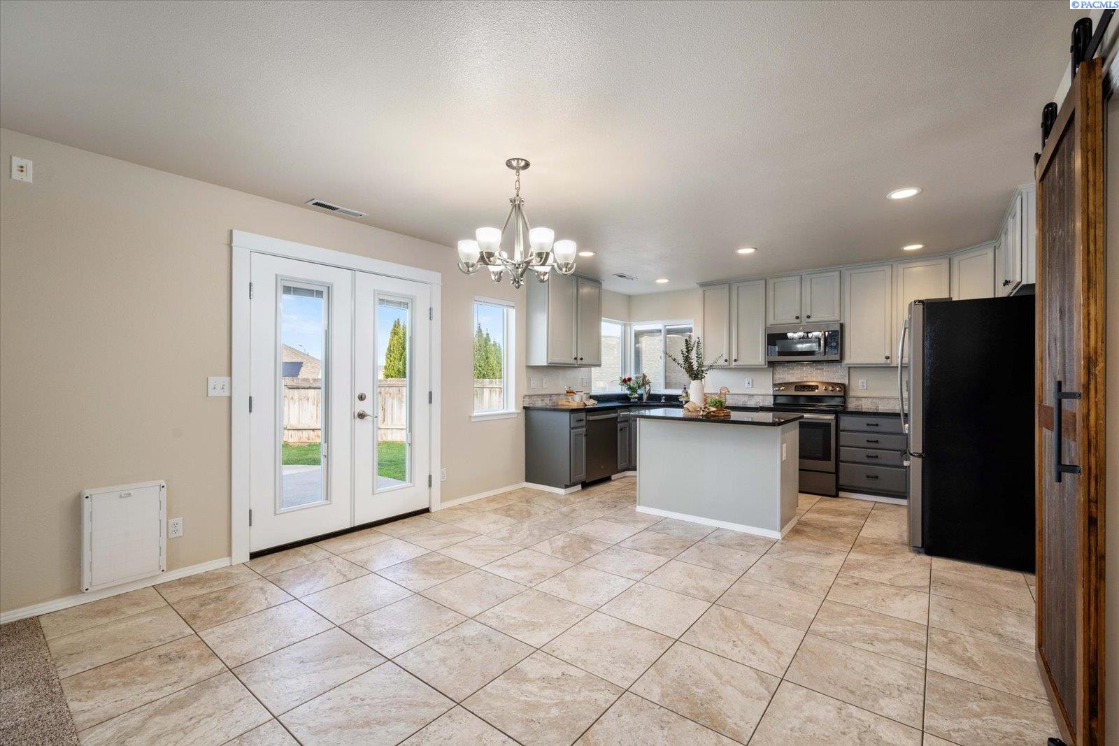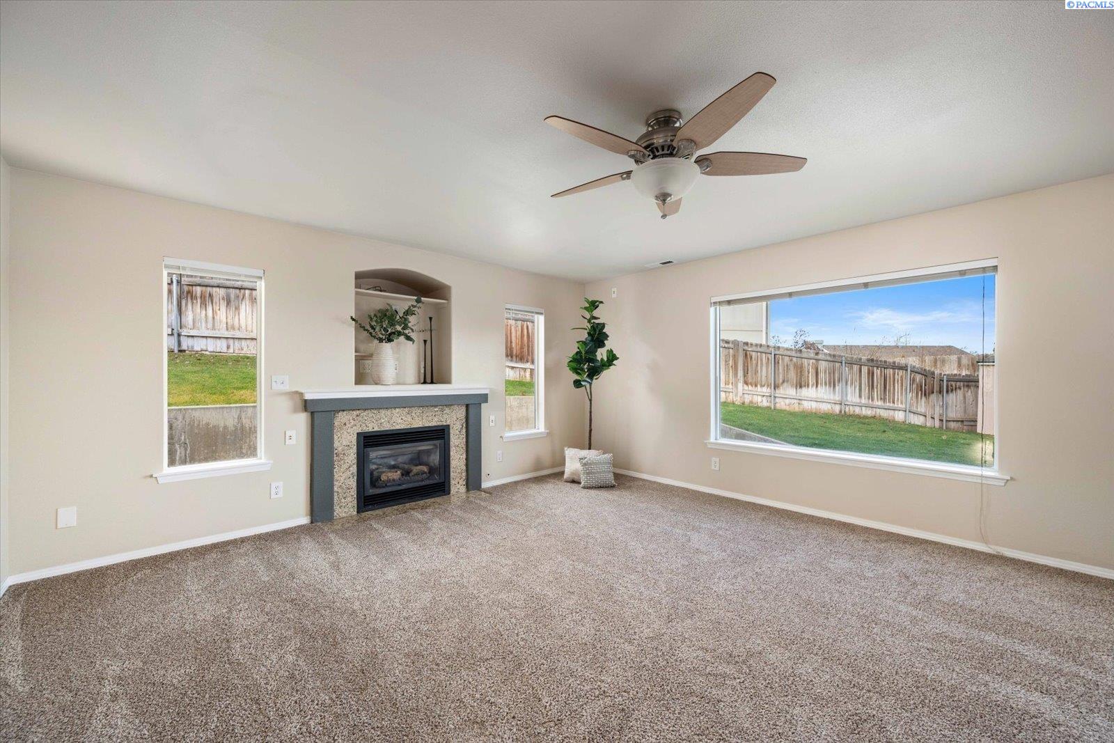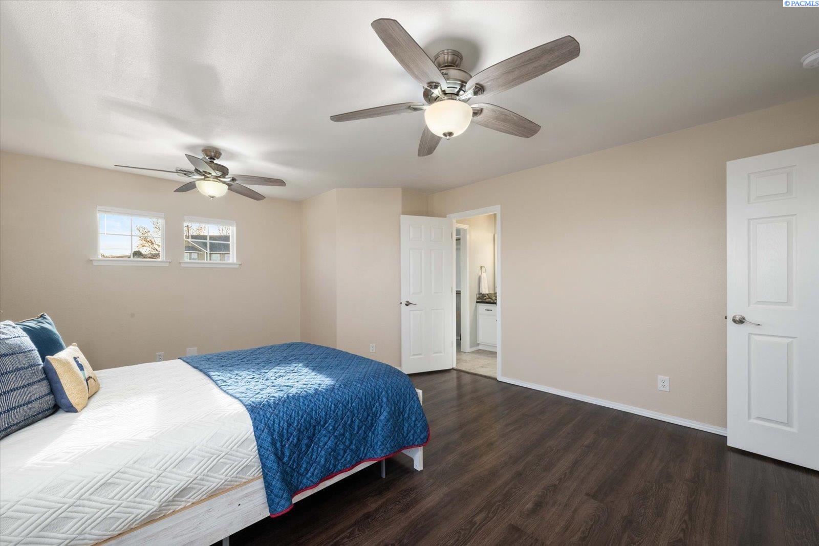 Welcome to this stunning 5-bedroom, 2,218 square foot home in the highly sought-after Shadow Run community of SW Kennewick. This move-in ready residence features both a living room and family room, plus a spacious kitchen with granite countertops and an island. Freshly painted with brand-new carpet throughout, the thoughtful floor plan places all bedrooms upstairs, including an expansive owner's suite with a walk-in closet and walk-in shower. The outdoor space is equally impressive, featuring a large patio with pergola, hot tub, and storage shed. Additional highlights include RV parking and an oversized 3-car garage with storage shelving. Shadow Run's prime location offers quick access to shopping, top-rated schools, and interstate highways, making this the perfect blend of comfort and convenience. Don't miss this opportunity to own in one of Kennewick's most desirable neighborhoods!