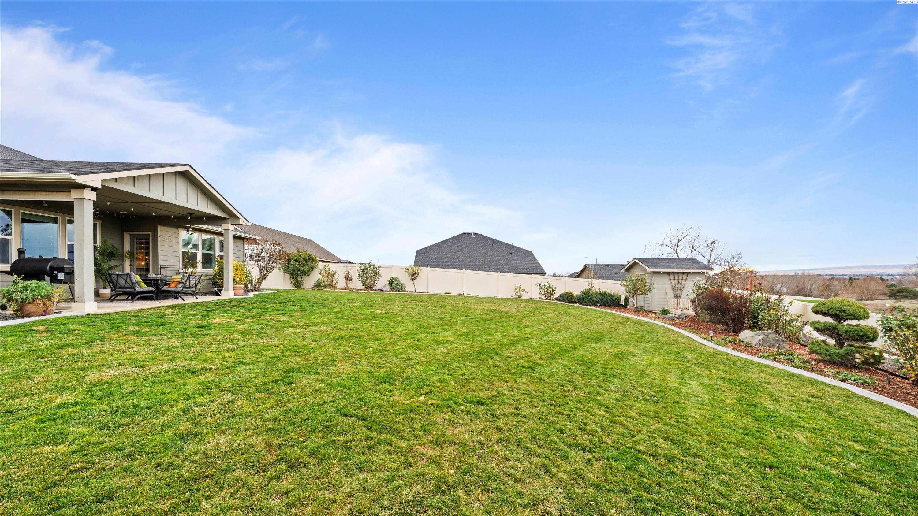 MLS# 289455 Welcome to this charming 4-bedroom, 2-bathroom single-family home nestled on a spacious .33 acre lot with unobstructed back yard views! This former builder model home with over 2000 square feet and fully finished 3 car garage offers the perfect blend of comfort, style, and convenience for modern living. Step inside to an open-concept layout with raised ceilings and abundant natural light. The inviting living room provides cozy comfort with a lovely tile front gas fireplace. Views into the dining and breakfast bar keep everyone connected. The kitchen features quality granite countertops, stainless steel appliances, and is centered in the hub of the home. The dining area is roomy enough for a full-size table and chairs without being crowded. Real wood floors throughout the main living spaces provide beauty and lasting durability. Split bedroom design lends to the private tranquility of the primary bedroom suite with peaceful backyard views and a direct door to the back yard. Roomy walk in closet, dual vanity bathroom with soaking tub and separate shower provide everything you would expect in your retreat suite. Three additional bedrooms provide ample space for guests or a home office. Outside, enjoy a fully fenced backyard with a covered patio, mature professional landscaping, easy care flowers and shrubs with 4 season interest, and separate garden beds to plant and grow your own favorites! Store away all of your supplies in the super cute storage shed. Need a quick commute? 3-minute drive to the main highway is something you can appreciate. Make an appointment to see this house today and it could be your next great place!