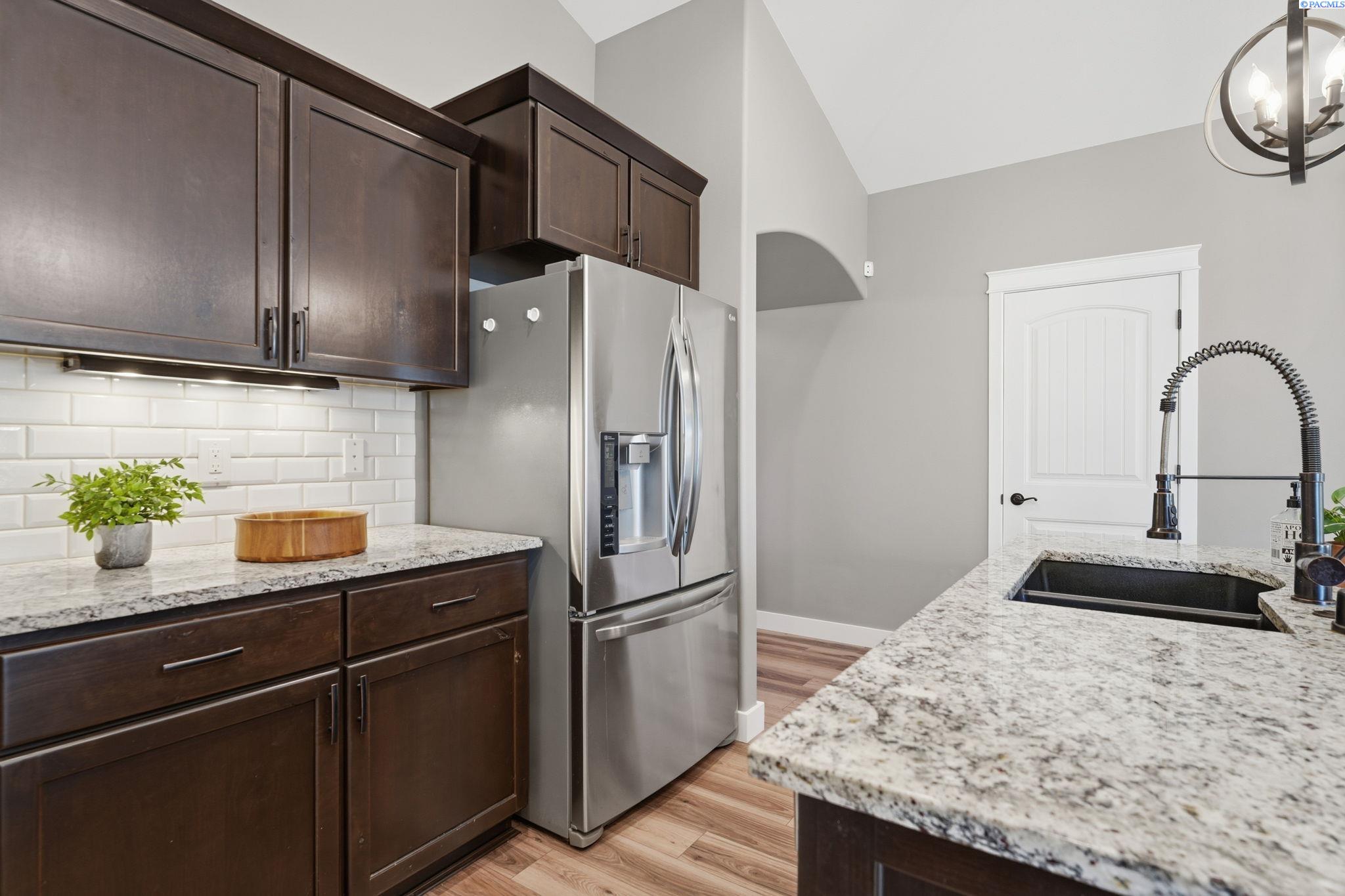 This beautifully refreshed, custom-built single-level home by Titan Homes LLC sits on a quiet street in the highly desirable Horn Rapids community and is truly move-in ready. Recent updates totaling $18,000+ include brand-new luxury vinyl plank flooring, upgraded carpet, trim boards, freshly painted baseboards, and interior touch-ups, delivering a clean, modern feel from the moment you step inside. Designed for quality and comfort, the home offers three spacious bedrooms and two full bathrooms, including a luxurious primary suite with a large walk-in closet, dual sinks, a modern tiled bath, and a rainfall showerhead. The kitchen features granite countertops, an extended island with a breakfast bar, a pantry, under-cabinet LED lighting, gas appliances, and modern custom touches, opening seamlessly to the inviting living room with a custom gas fireplace and built-ins. A pre-listing home inspection has been completed, with items addressed for buyer peace of mind. Fully landscaped front and back yards include underground sprinklers, while the backyard offers an extended patio, stamped concrete, and mature plantingsâperfect for relaxing or entertaining. Enjoy outstanding community amenities including walking trails, an 18-hole golf course, clubhouse, two community pools, tennis & pickleball courts, RV/boat storage, an on-site restaurant, Rewsterâs Craft Bar & Grill, plus nearby dining, popular local breweries, a gas station, RV park, and quick highway access. Quality craftsmanship, thoughtful updates, and an exceptional lifestyleâthis home truly checks every box.