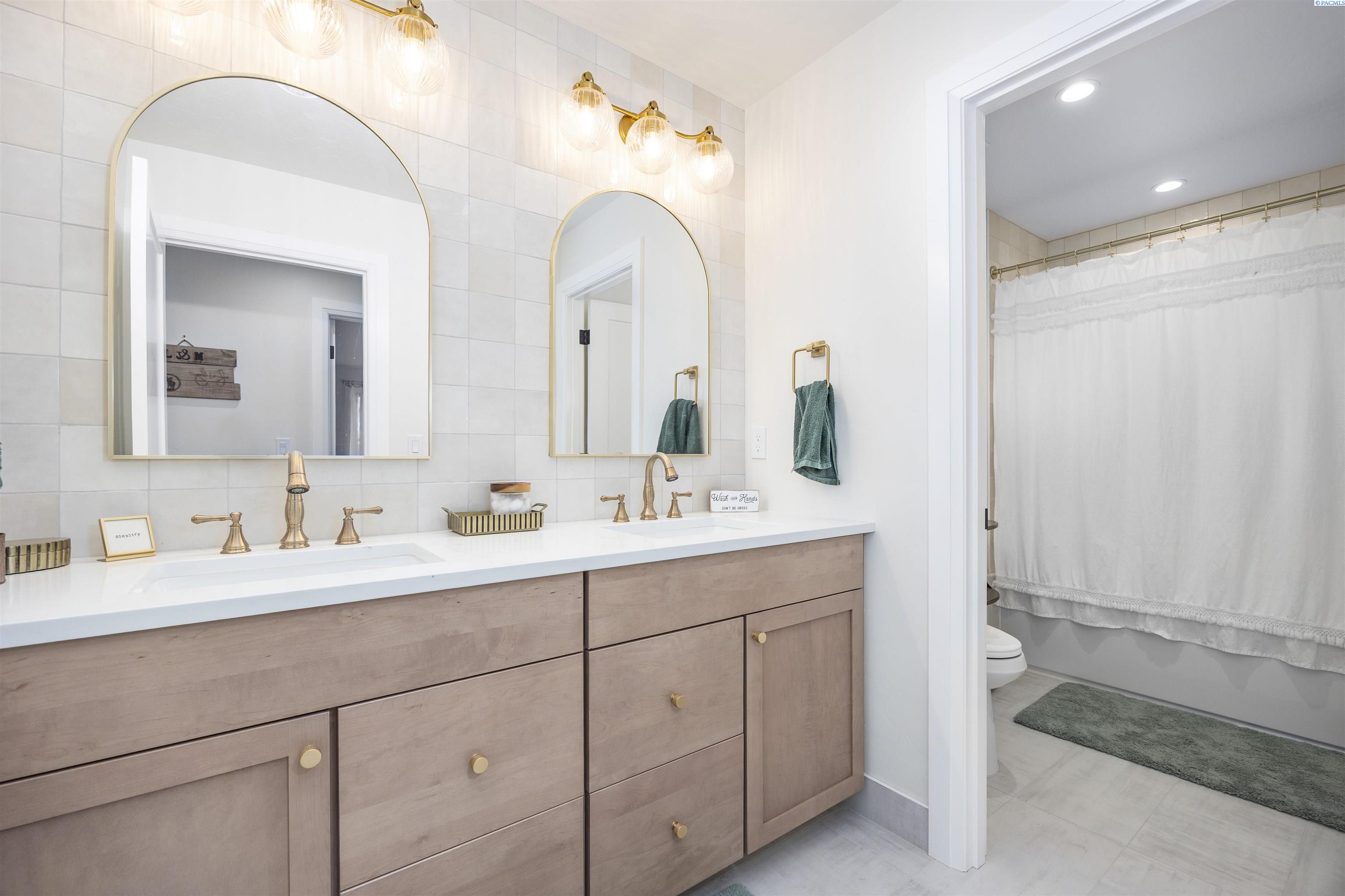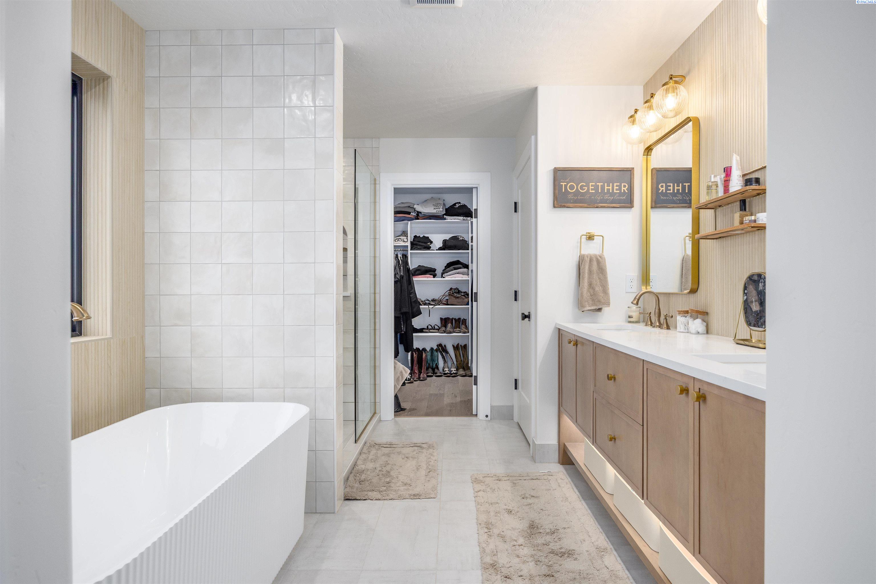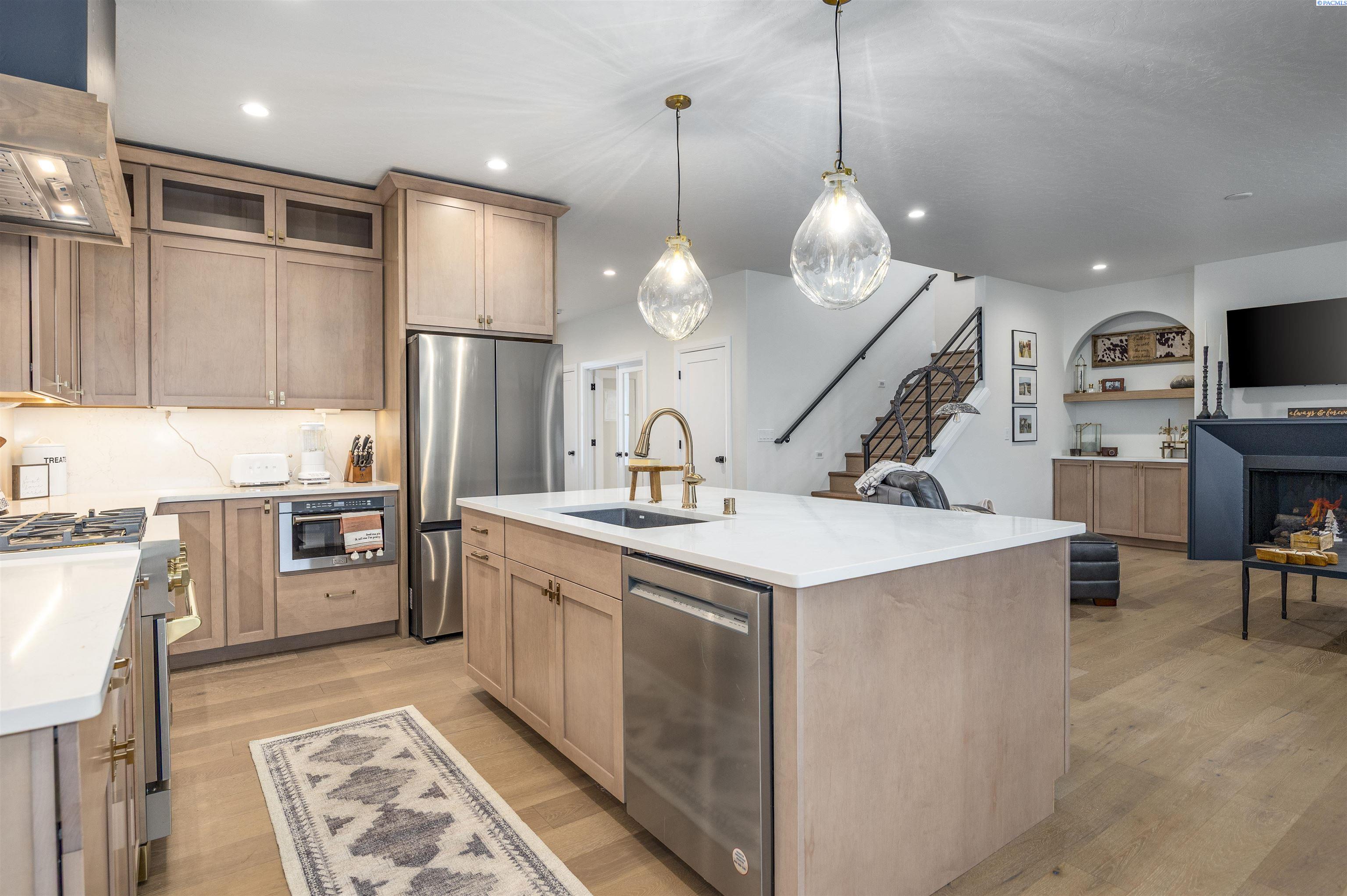 MLS# 289525 Welcome to this stunning 2024 resale built by 47 North Custom Homes, showcasing exceptional craftsmanship and thoughtful design throughout.Spanning 2,716 square feet, this beautiful two-story home features 4 spacious bedrooms, a dedicated office, a bonus room, and 2.5 bathrooms, perfectly designed for modern living. The heart of the home is the open-concept kitchen, featuring a large center island, elegant quartz countertops, a stylish tile backsplash, and a generous walk-in pantry. The kitchen flows seamlessly into the living and dining areas, creating an ideal space for entertaining or everyday comfort. Upstairs, the primary suite offers a peaceful retreat, while the full bathrooms are thoughtfully designed with dual-vanity sinks, tile accent walls, and walk-in tiled showers, delivering both style and functionality. Three additional bedrooms and a versatile bonus room complete the upper level. Step outside to the expansive, fully landscaped backyard featuring sod, underground sprinklers, curbing, rock accents, and a block-wall fence with gated access perfect for gatherings, play, and outdoor enjoyment. The detached shop includes its own fully fenced yard with gates and low-maintenance turf, creating a secure and private space ideal for pets. The attached 3-car tandem garage is fully insulated, offers 1200 square feet, and includes an installed water softener system. Completing the property is an impressive 30x40 detached shop featuring 10-foot walls, 50-amp electrical service, and water connections, ideal for storage, hobbies, or business use. Located near the river in the highly sought-after Spencer Estates community of Pasco, this home perfectly blends luxury, functionality, and modern convenience.